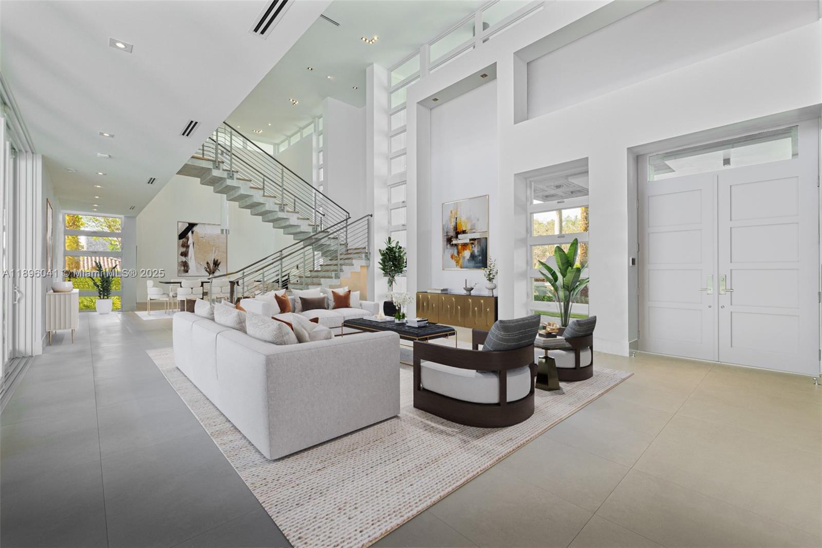 Nestled on nearly an acre in Northeast Pinecrest, this exceptional custom-built estate showcases meticulous craftsmanship and modern elegance. Soaring ceilings and dramatic floor-to-ceiling windows fill the home with natural light, highlighting an open layout ideal for entertaining. The chef’s kitchen features Viking and Sub-Zero appliances, and all ensuite bedrooms are thoughtfully designed. A private elevator, Crestron smart home system, whole-house generator, and three-car garage enhance daily living. Expansive terraces, manicured landscaping, and a resort-style pool create a serene backdrop, all within walking distance of top schools.