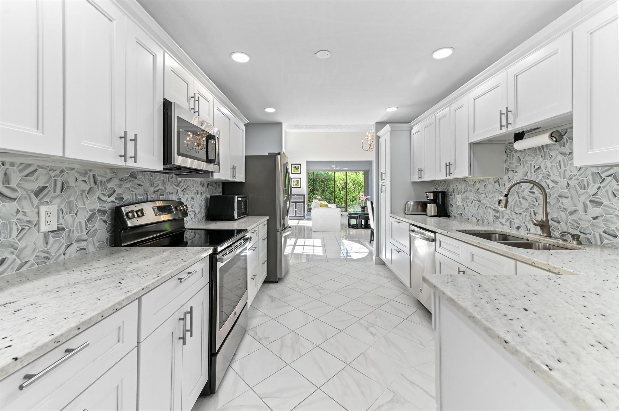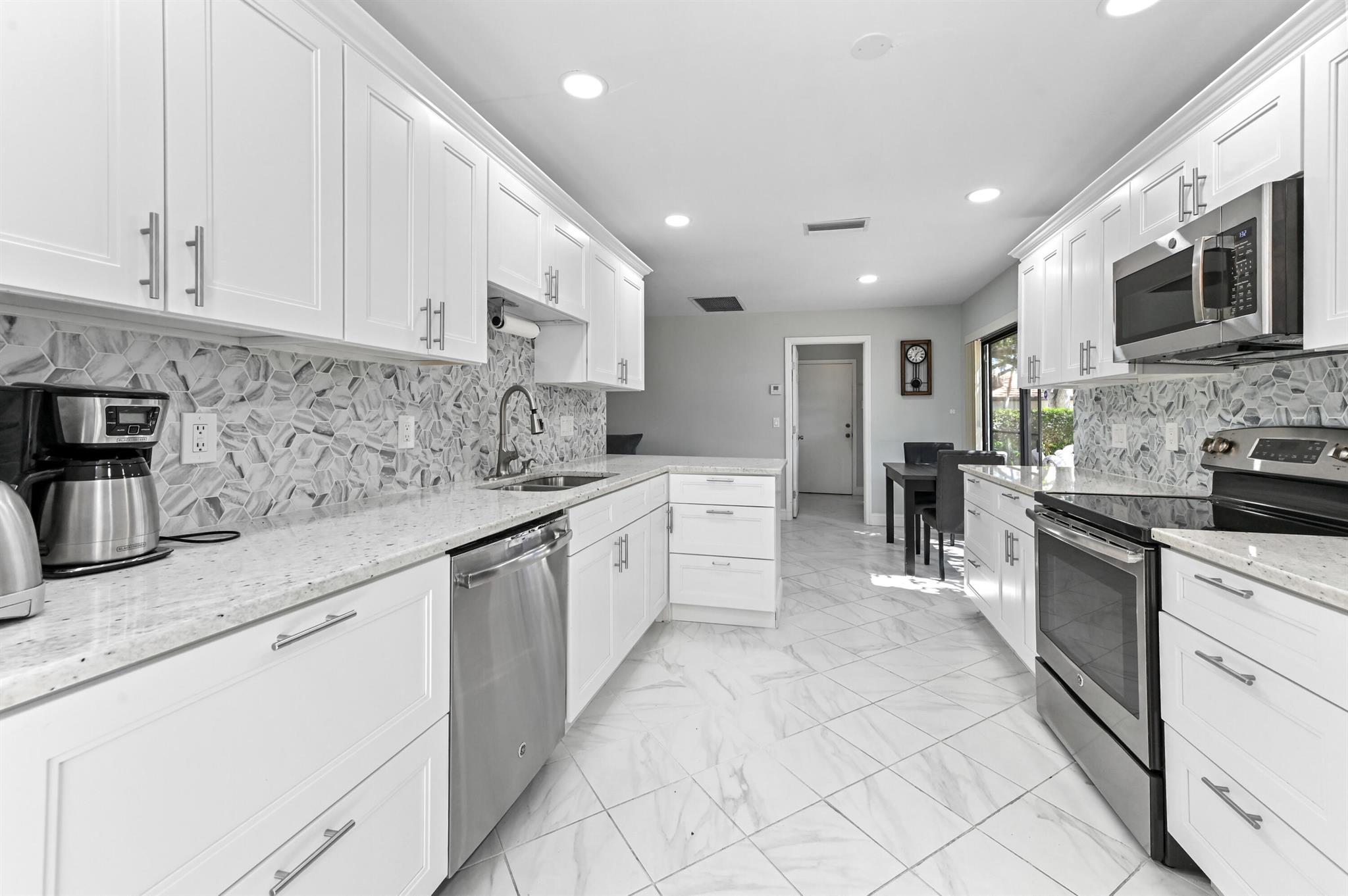 Looking for a single family home, 5 minutes from downtown and the beach? Nestled on a prime lot within a tranquil cul-de-sac, this 2-story gem offers great privacy, next to Seagate CC golf course. With its spacious 2,519 square feet under A/C, this home is designed to impress and delight. Step inside to discover a bright and airy living room, featuring high ceilings, large windows, and sliding glass doors that flood the space with natural light. The newly renovated kitchen has lots of counter space, boasting elegant white wood cabinets, granite countertops, and a matching backsplash that ties the space together beautifully. Stainless steel appliances. Enjoy the convenience of a master suite located on the ground floor, providing easy access and comfort.