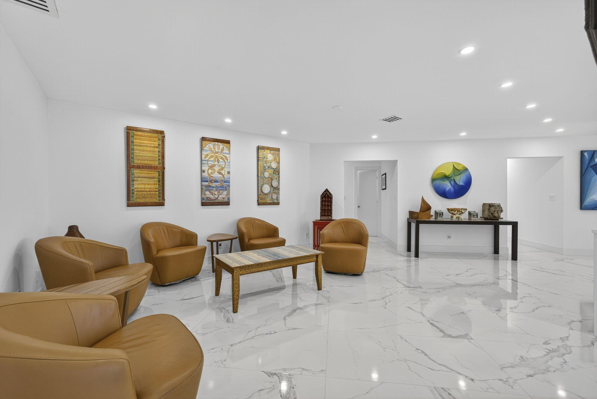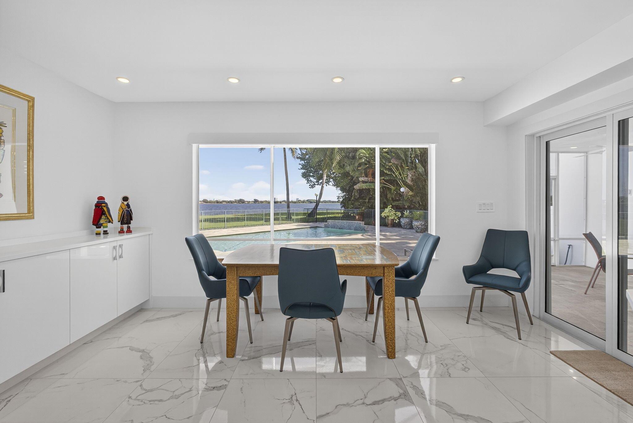 A modern masterpiece. This meticulously renovated contemporary home in the exclusive gated community of Presidential Estates boasts soaring vaulted ceilings and dynamic angular spaces, creating a striking ambiance filled with natural light. Step into the grand foyer, which flows seamlessly into an expansive formal living and dining area, perfect for sophisticated entertaining. The home features 5 spacious bedrooms with versatile living possibilities. The chef's kitchen opens to a cozy den and dining area, all framed by breathtaking views of Lake Mangonia and the sparkling pool. This residence combines serene privacy with the convenience of being moments to WPB's vibrant culture. Experience luxury living with stunning water vistas & modern elegance in the heart of West Palm Beach!