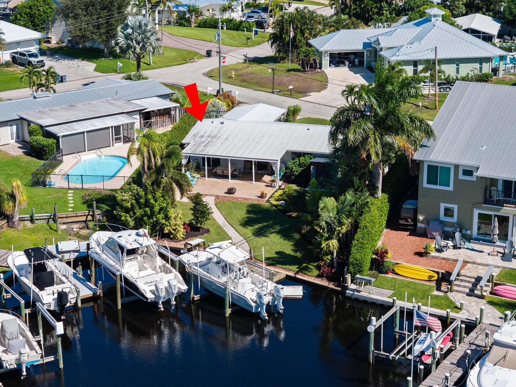 Exceptional ocean access residence featuring a 9,000 lb boat lift & 63 feet of water frontage, perfectly suited for up to a 35 ft vessel. This elegantly updated 3-bedroom, 2-bath home offers a seamless blend of comfort and coastal luxury, surrounded by lush tropical landscaping. Enjoy an open, updated layout w/ GE stainless steel appliances, impact windows throughout, & refined finishes. The expansive backyard offers ample room for a pool, creating the opportunity to design your own private outdoor oasis. Ideally located just minutes to the St. Lucie River, waterfront dining, and the iconic Stuart Sandbar, a dream location for avid boaters. Nestled in a quiet, family-friendly neighborhood w/ access to top-rated A-schools. A true waterfront gem.