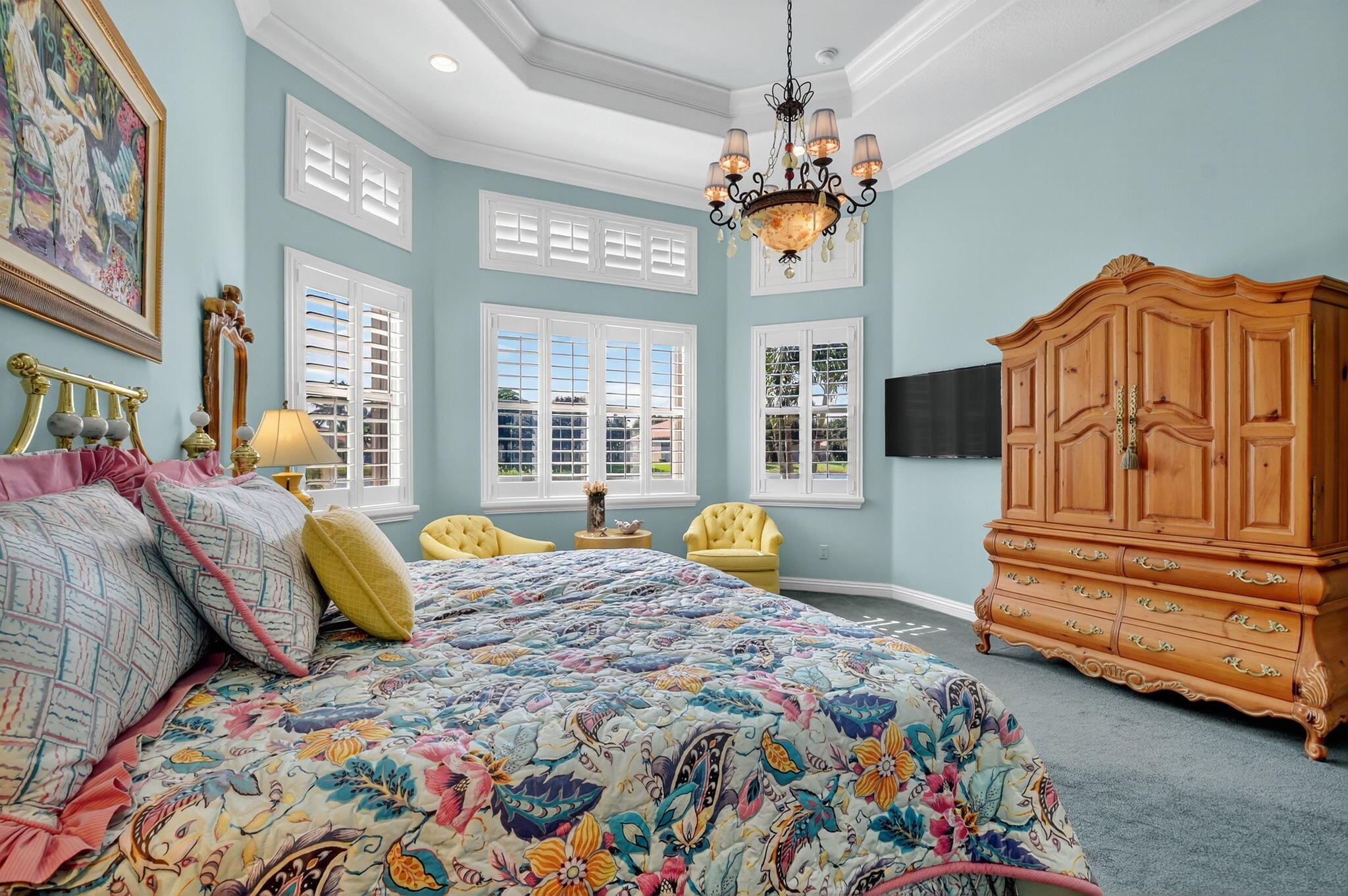 Stunning & Oversized Lakefront 4BR/4BA/3Garage home. Sprawling 3,206 sq.ft ranch triple split home has impressive upgrades including rich 24'' marble floors in main living areas, wood cabinets & stone counters throughout & solid core doors. One-of-a-kind Columbian Mahogany Kitchen with 54'' cabinets, soft-close drawers, Thermador double oven, Sub Zero frig, Dacor Stove. Primary oversized bedrm has built-out walk-in closets, Elegant light fixtures throughout.-French doors lead to oversized patio on the lake. Excellent for Entertaining. Magnificent Wall Unit in Family Rm. Walk to Multi-Million Clubhouse.Maintenance includes: Internet, lawn, exterior paint, SHO/HBO & alarm. 1X cap fee $5,090.00. 4th bedrm used as den. Buyer/Buyers agent to verify all information. Measurements are estimated.