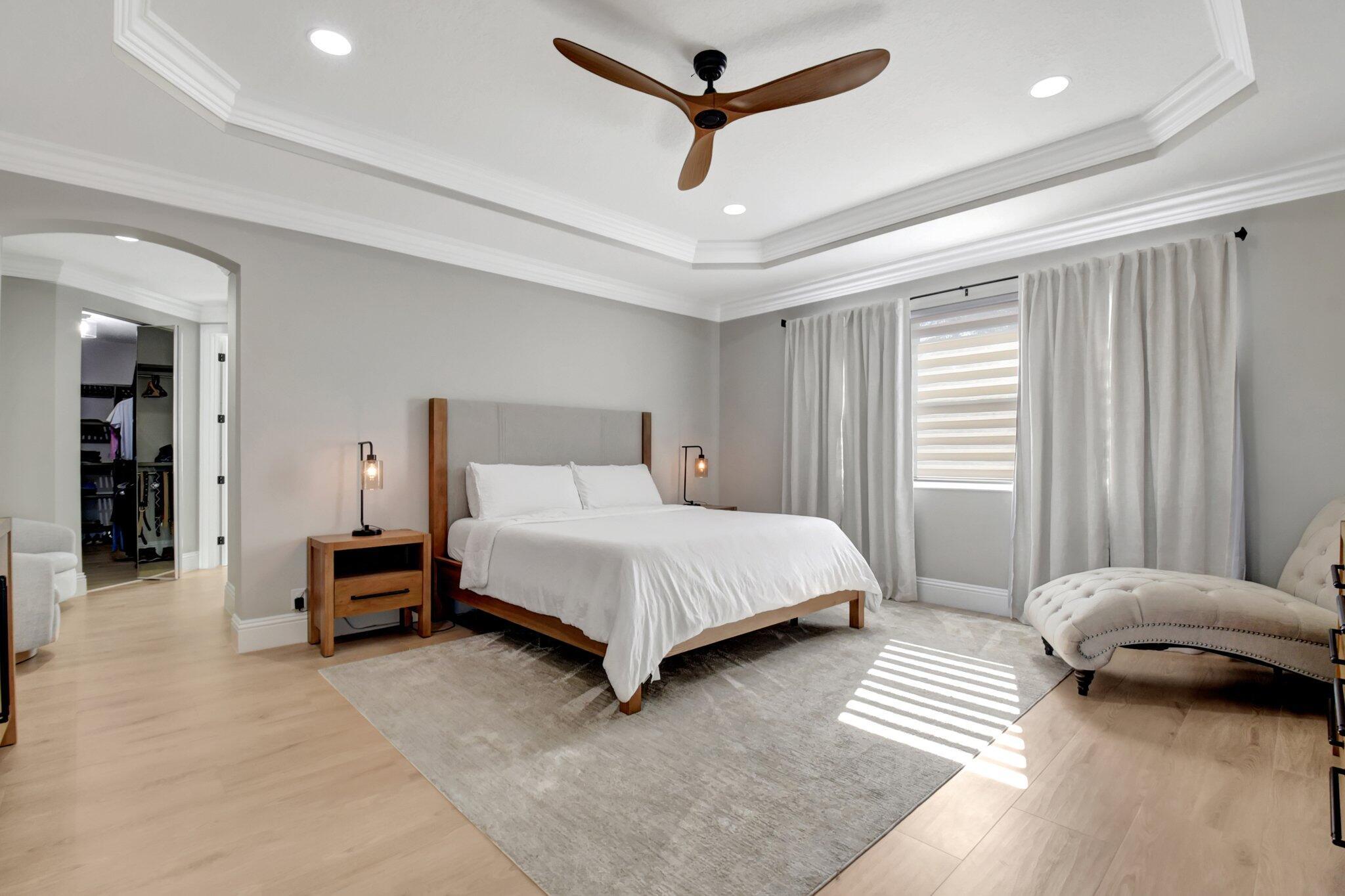 Fully Remodeled 5 bedroom 3.5 bathroom home in Isola Bella Estates! In like new, move in condition. All flooring is large format porcelain tile including full bathroom walls. Everything in this home was tastefully chosen and designed for full luxury living. All bathrooms are fully porcelain tiled and all showers feature handhelds and multiple body sprays. All new light fixtures and fans throughout. A brand new kitchen with quartz countertop and backsplash, and a fully enclosed outdoor area with grilling station and saltwater pool. Located on a canal front w/ no neighbors behind you. 2 NEW AC UNITS INSTALLED 9/2021. Home features 21 solar panels, solar hot water heater, accordion shutters throughout and flex space in the garage for entertainment. Full amenity clubhouse & 24hr manned gate.