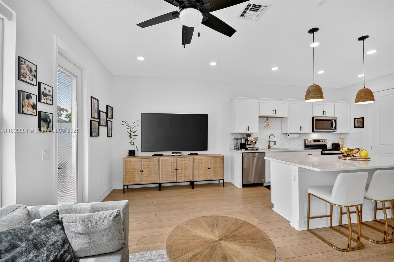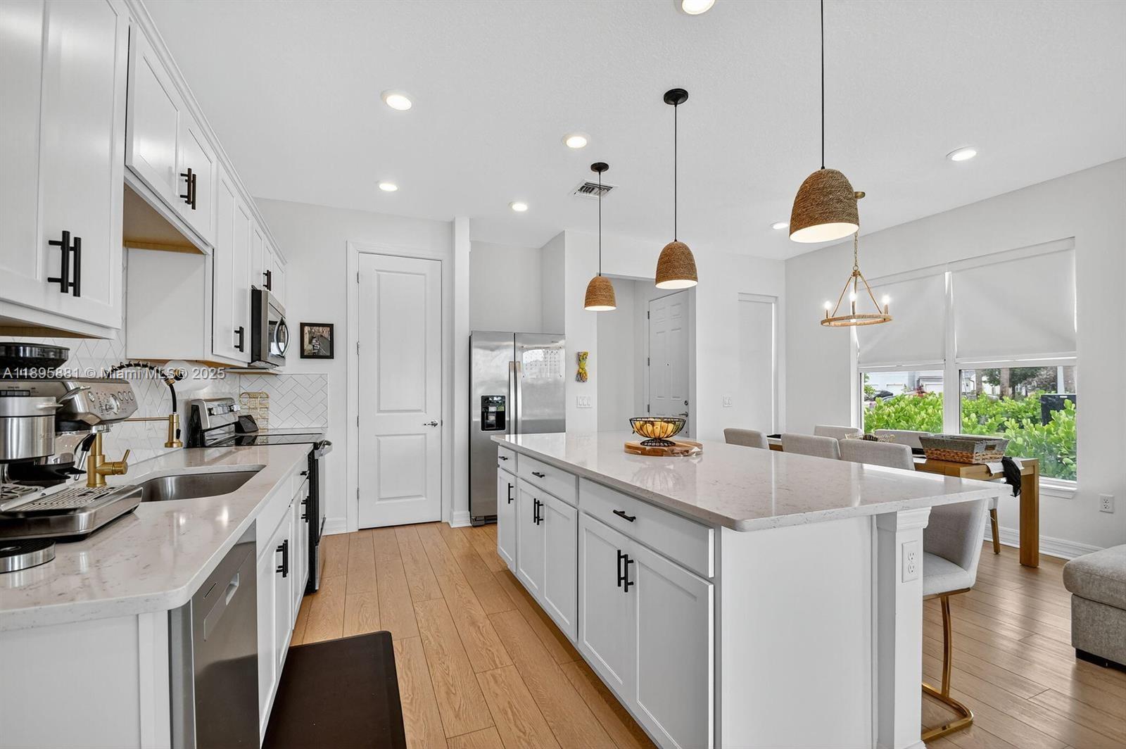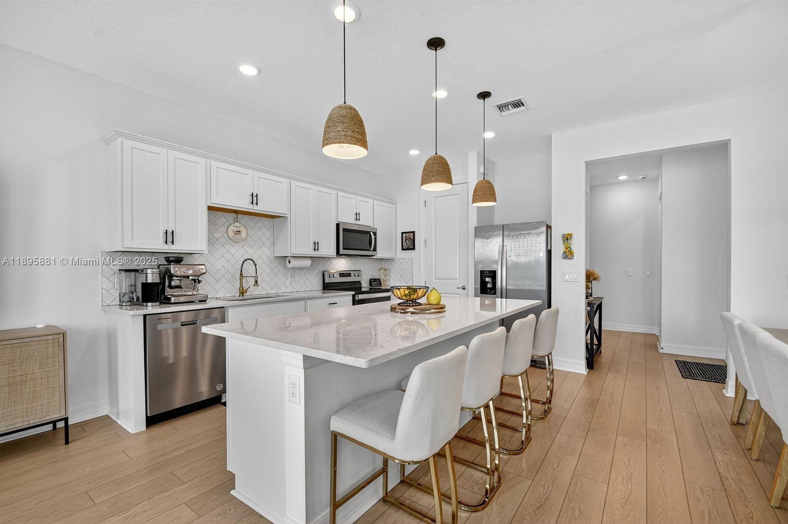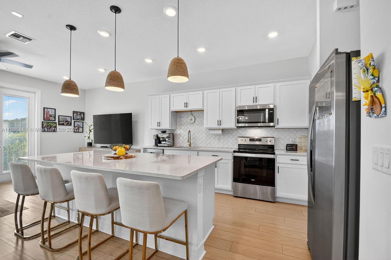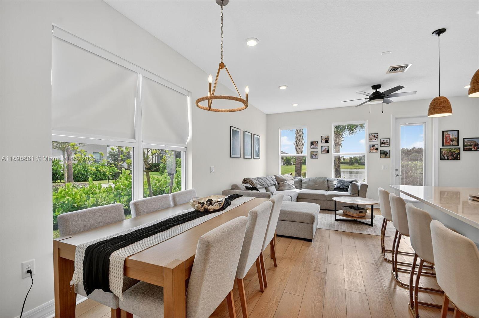 Nestled in the heart of the Ranchette Road Townhomes community, this nearly-new lakefront townhome delivers a seamless blend of elegance, comfort, and modern convenience. Built in 2023, this beautiful end-unit residence offers 3 bedrooms, 2.5 bathrooms, and 1,675 square feet of air-conditioned living space within a total of 2,091 square feet, including a spacious 2-car garage.The home's stunning curb appeal begins with a beautifully landscaped front yard, stone paver driveway, and a welcoming covered entryway. Inside, you'll find an open-concept main level with ceramic tile flooring, leading into a bright and airy living area filled with natural light.
