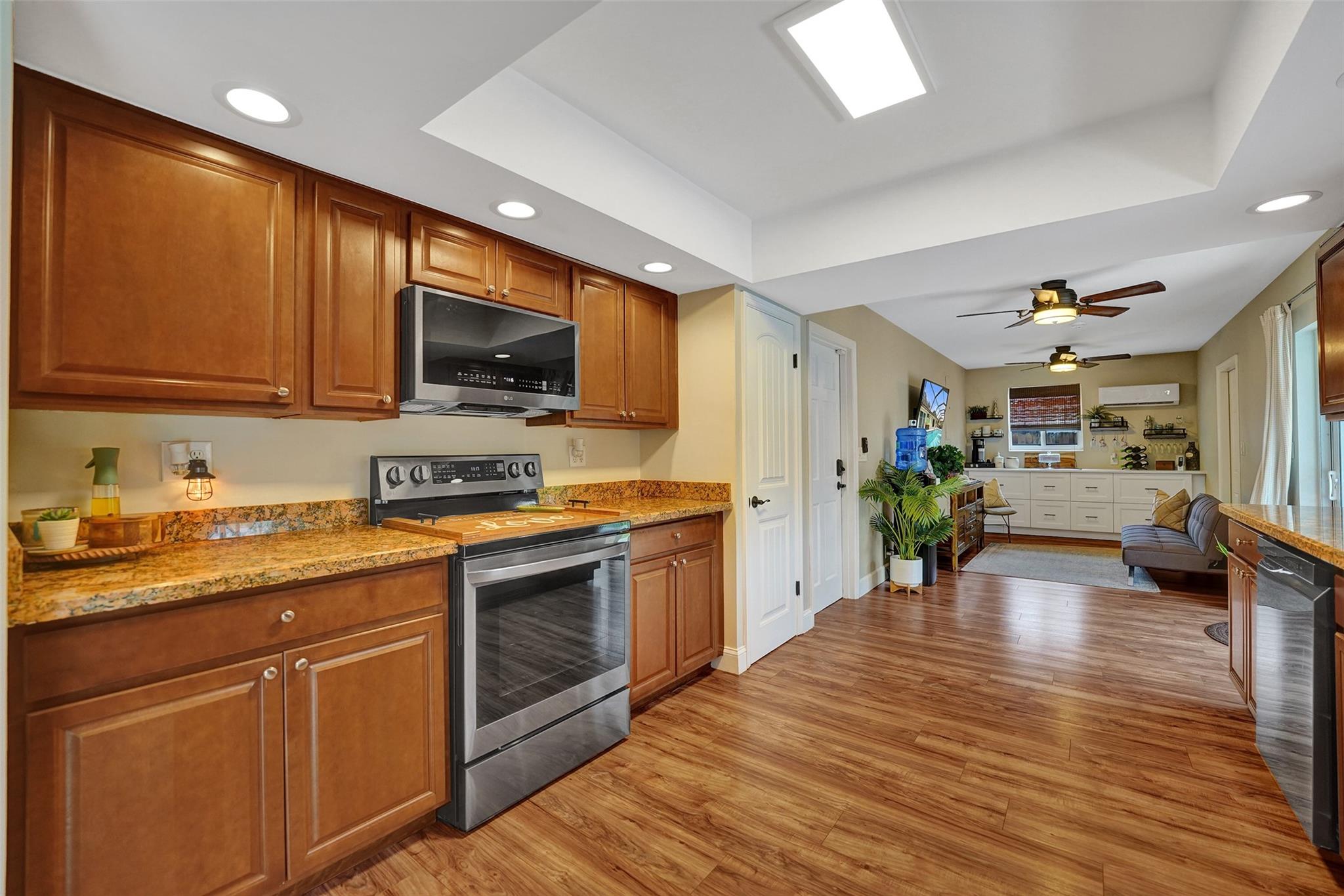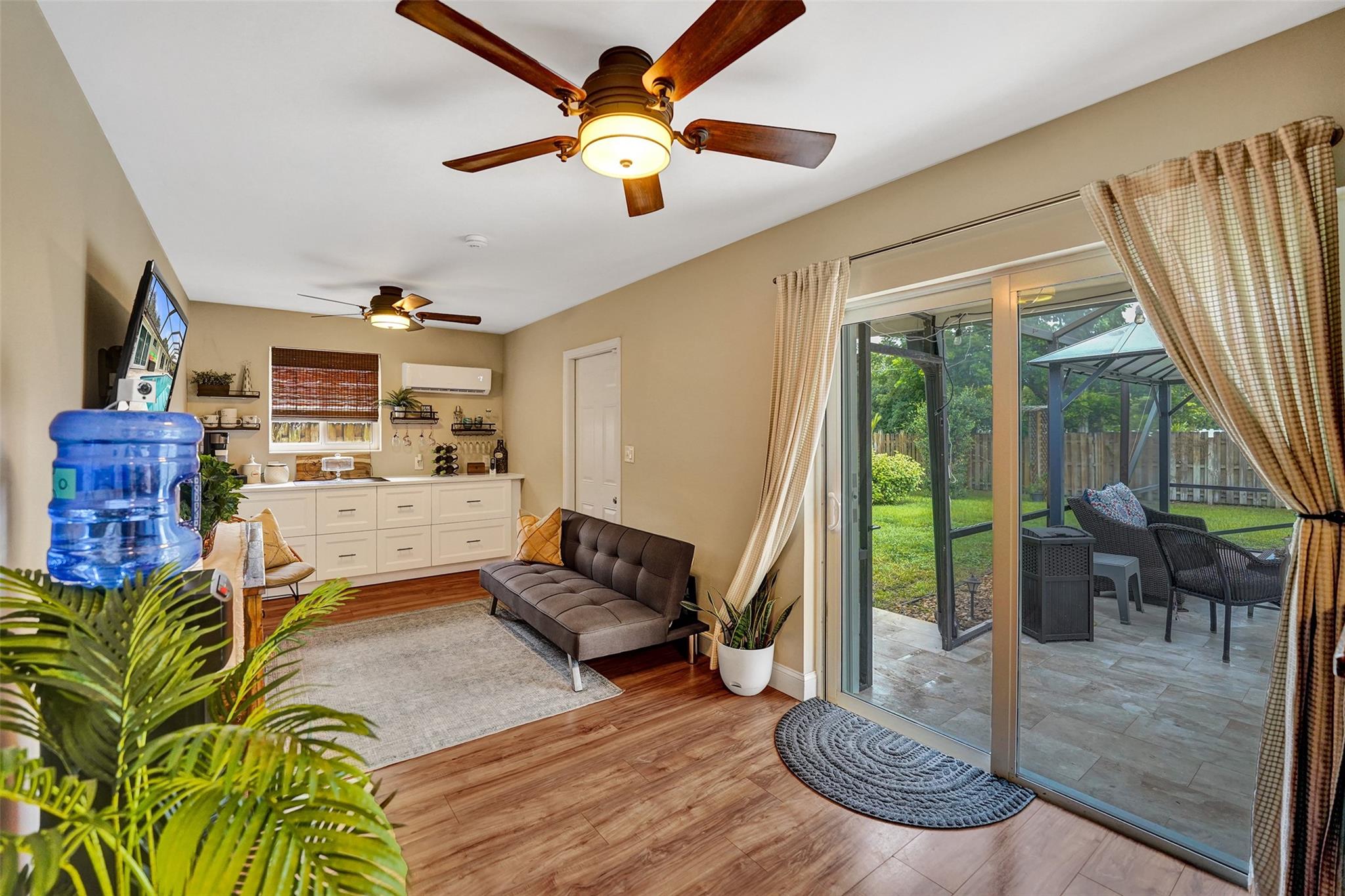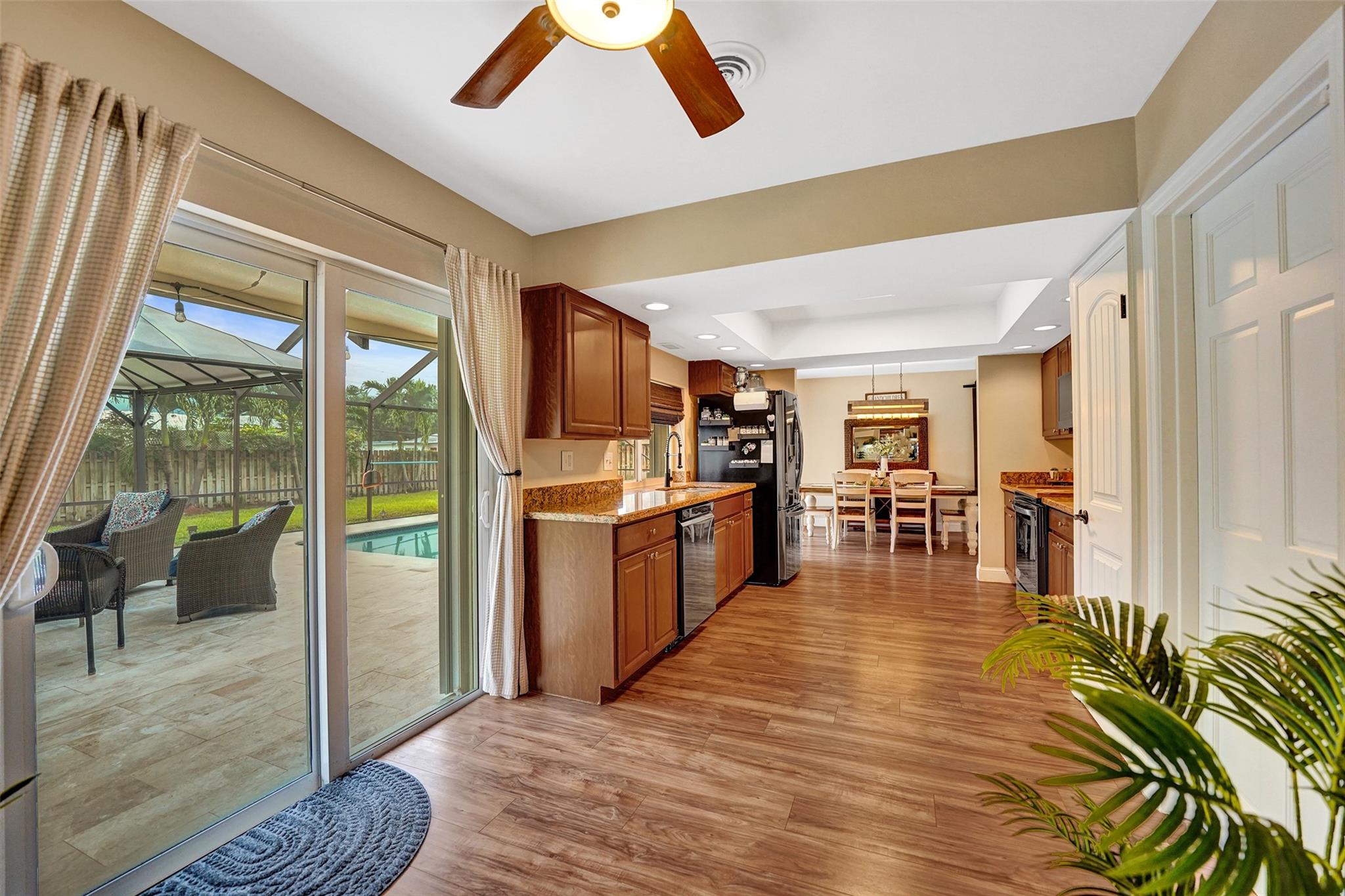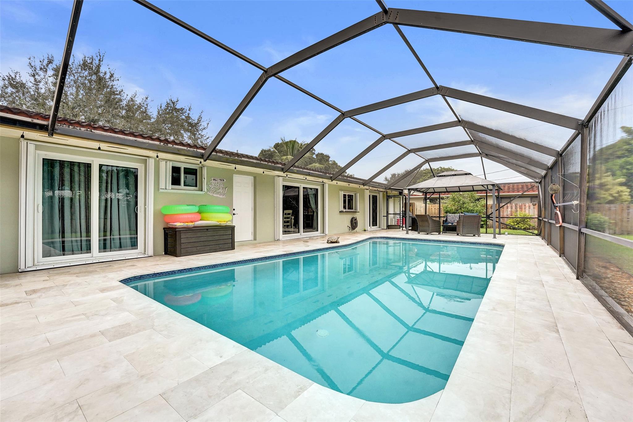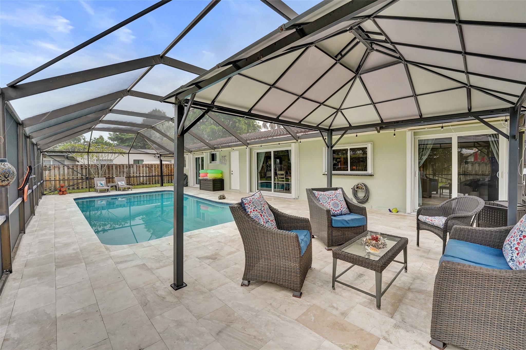 Step inside this exceptionally well-maintained 3BR/2BA contemporary home and fall in love with its open, airy feel and stylish updates. High-quality laminate wood plank flooring complements the plantation shutters and fully-applianced kitchen with granite counters and generous cabinetry. The primary en-suite offers a modern bath with walk-in shower, while the secondary bedrooms are comfortably sized, and guest bath features double sinks and tub. Enjoy peace of mind with impact windows, doors, accordion shutters and a generator-ready connection. The backyard oasis invites you to relax by the newly renovated saltwater pool or gather around the fire pit. With a screened patio, circular drive, two-car garage and neutral tones - this home truly has it all. You will want to check it out!
