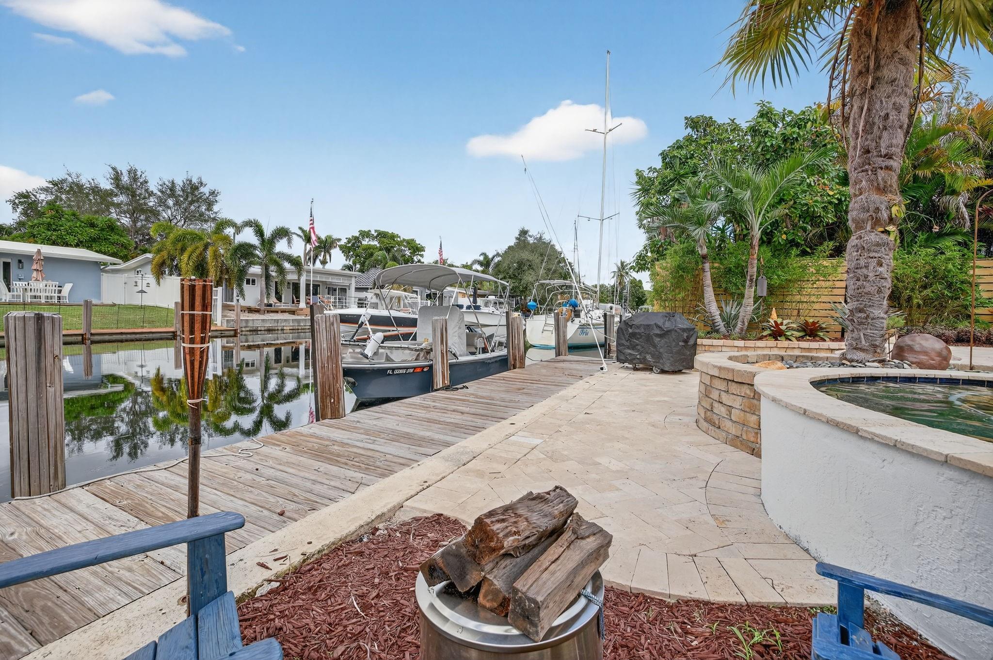 Relax by the sparkling pool, unwind under the large tiki hut, entertain on the waterfront travertine patio-True South Florida living at its best. Inside enjoy a bright, open layout w/ vaulted ceilings & a Chef’s Kitchen w/ a Custom Island. 3 bedrooms & 2 new designer baths, Guest bath w/ zero entry wet-room. Primary bath finished in limestone w/ a new soaking tub. Recent 240 sq ft addition expands the back bedroom & captures wide water views —Outside- horticulturist-designed, tropical landscaping provides beauty, privacy & zero-scape yard Located in highly desirable Shady Banks, walk to 2 neighborhood parks. Minutes to downtown, Las Olas, beaches, waterfront dining & the airport, Turnkey, move-in ready, this deepwater pool home delivers a rare combination of lifestyle, location,& luxury.