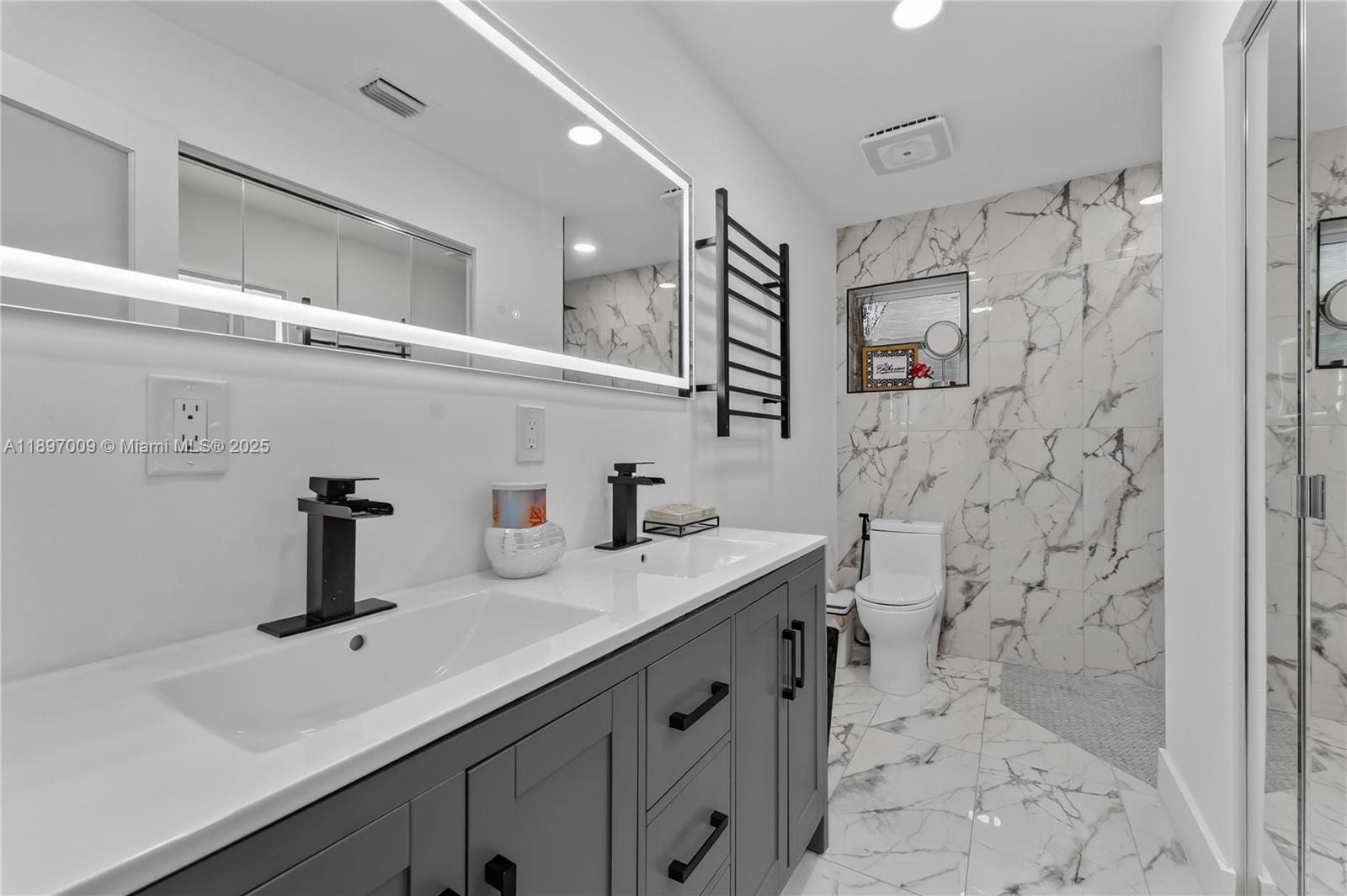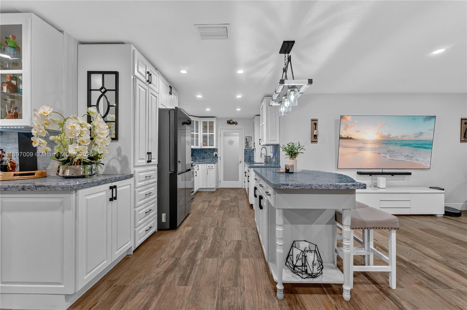 Resort-style living in Bello Monte, Stunning 4 bed, 3 bath ranch style home on a 17,000 sq ft lot. Fully renovated with impact windows/doors, solar water heater, and solar panels for low electric bills. The chef's kitchen boasts custom blue quartz countertops, stainless steel appliances, and a large hidden pantry. Enjoy the ultimate backyard with a heated saline pool, tiki hut with full outdoor kitchen, and a lots of tropical fruit trees. Park your RV (Up to 44 Ft with power connection), and boat (up to 25 ft) under a large covered canopy with gated access (Both at the same time). Home includes EV charger connection, 10x10 storage shed, also comes generator ready, and has a fully fenced yard. A truly fabulous rare gem offering you a sunshine filled South Florida lifestyle!