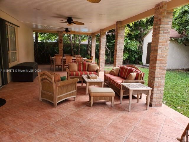 Well-maintained 5/3.5-bath home sits on 12,500 sq ft corner lot. 2 master bedrooms w/full baths on the1st floor. 3/1 upstairs ideal for children/guests. Interior highlights include a formal living room w/a cozy conversation pit, large family room, formal dining & a daily dining area adjacent to an open kitchen w/a brand-new refrigerator. Laundry room includes a second refrigerator & built-in cabinetry. Outdoor features include a covered terrace perfect for entertaining, avocado tree, gated side yard for pets, a custom storage shed w/flooring & concrete slab w/double gate access for boat/RV parking. 2 newer AC units, barrel tile roof, accordion shutters, a 5" concrete slab on the second floor for sound insulation. This property offers space, comfort, & flexibility—ready for a new family.