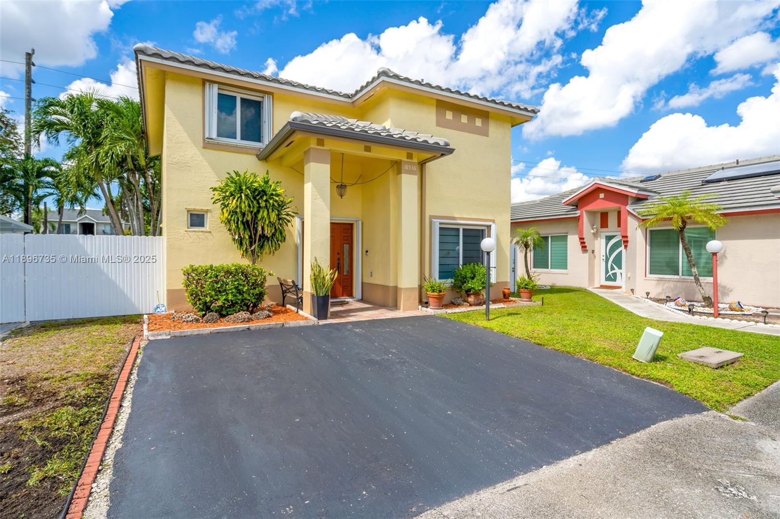 Welcome to your dream home in the gated community of Monterrey, located in Miami Gardens! This beautifully upgraded 3BD/2.5BA residence features a bright, organized layout where every space is perfectly placed for comfort and family living. Major updates include a 2022 roof, impact windows with shutters, a mahogany double front door, 2023 A/C, 2020 water heater, a 2022 kitchen with stainless appliances, and a freshly painted exterior (2023). Inside, you’ll find new carpet, a walk-in tub, custom closets, modern lighting, and curtain blinds. Enjoy a covered patio with new roof and flooring, fenced yard (2025), storage shed, electric chair lift, and washer/dryer. The community offers security, pool, and lawn maintenance with a low $110 HOA. Elegant, modern, and truly move-in ready!