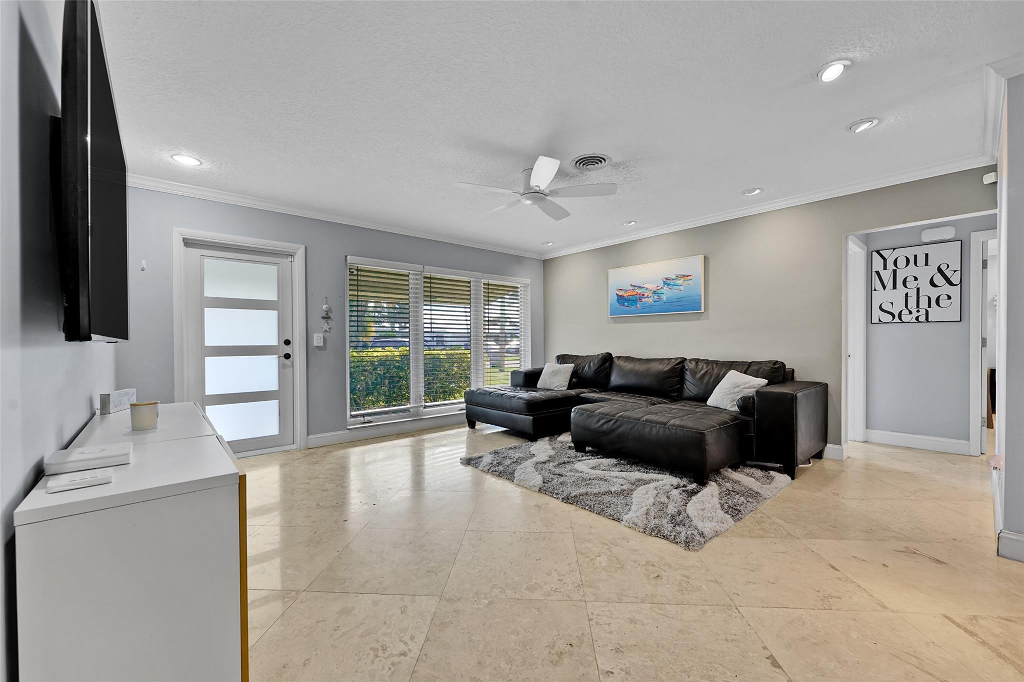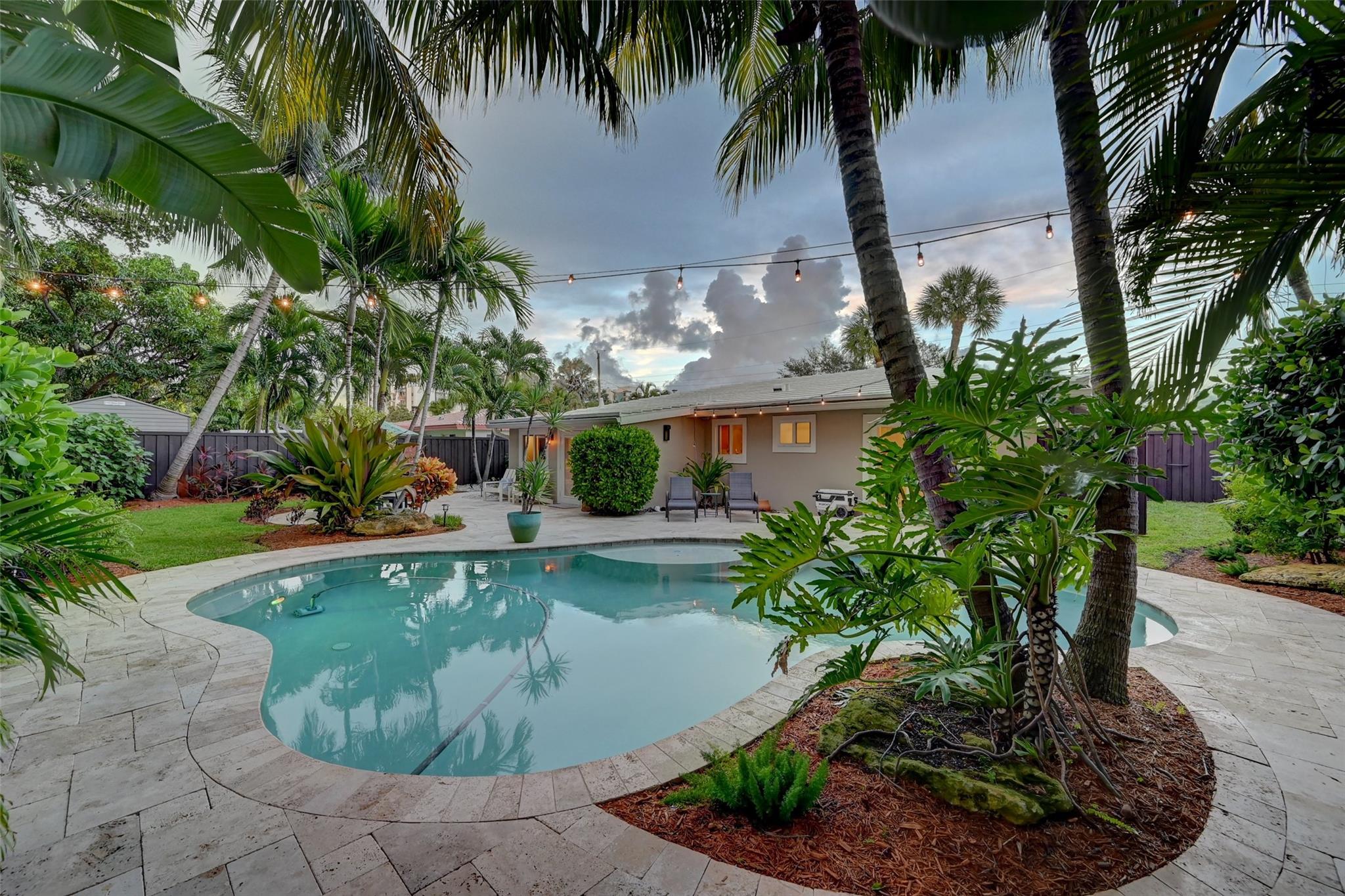 Completely renovated saltwater pool home in the desirable east Pompano Beach community of Garden Isles on an oversized lot. Open kitchen with stainless steel appliances, marble flooring throughout, and all impact windows and doors. Private tropical backyard oasis with lush landscaping, beautiful pavers, and plenty of space for entertaining. Fully fenced with sprinkler system, interior laundry room, and one-car garage. Updated electrical panel. Situated on a quiet cul-de-sac with no through traffic, just minutes to beaches, restaurants, nightlife, and the newly revitalized Pompano Pier.