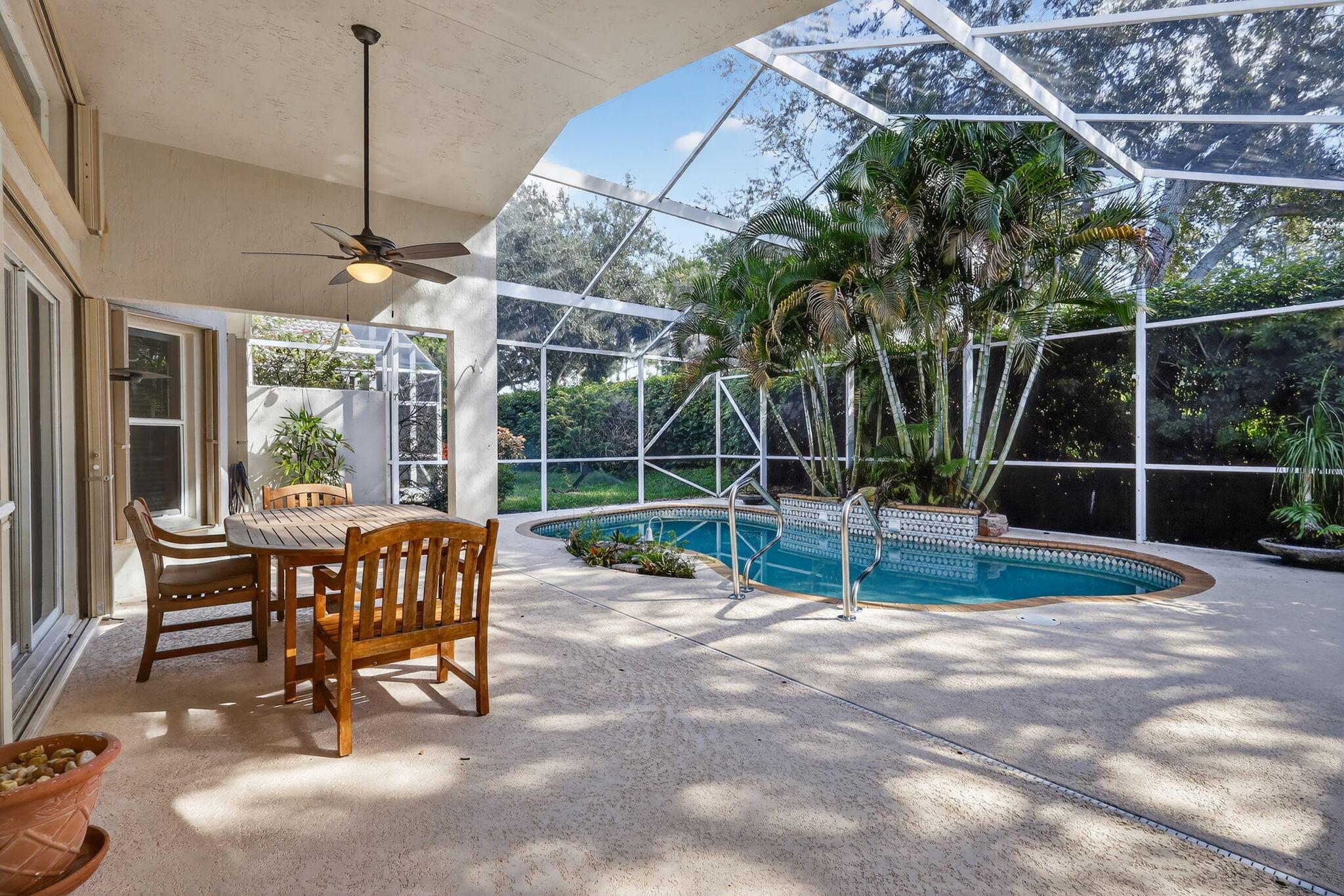 Welcome to your slice of paradise. This lovely 2/2 plus den, well-maintained pool home offers the perfect blend of comfort and style, nestled in one of the area's desirable active adult communities. This home invites you to enjoy every day to the fullest. Wood flooring, lots of kitchen counter space and a very open contemporary design floor plan, this is a true entertaining home. Enjoy the Florida lifestyle on your oversized screen enclosed pool patio! Great community amenities includes pickleball, tennis, indoor and outdoor pool, cafe, card rooms, entertainment, fitness center and much more. Bellaggio is an undisputed leader in planned community living featuring 10 Har-Tru lighted tennis courts with stadium seating, 4 pickleball courts with interclub leagues, a pro shop, multiple ca