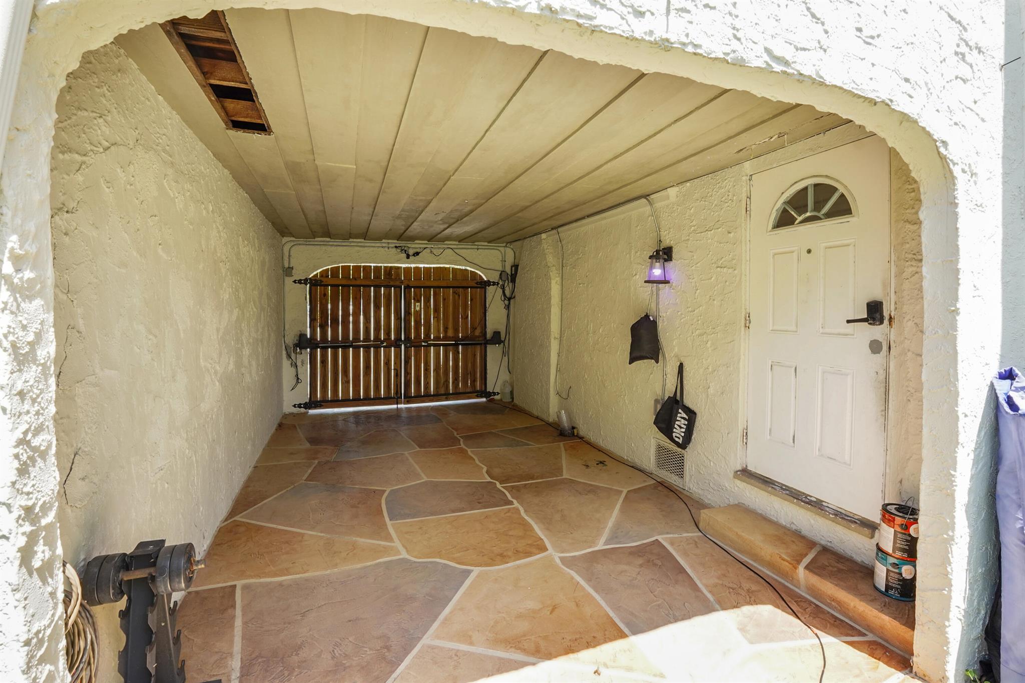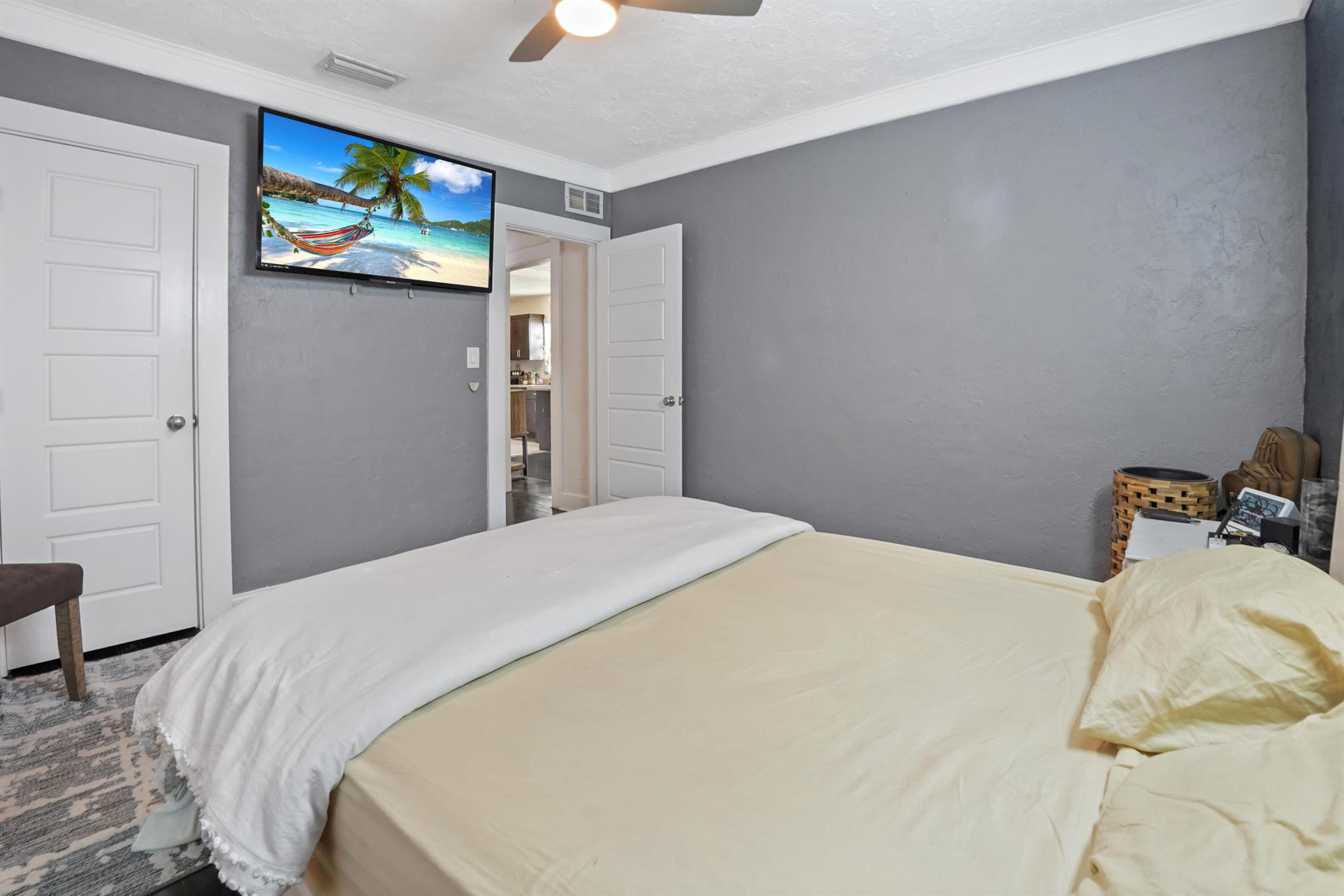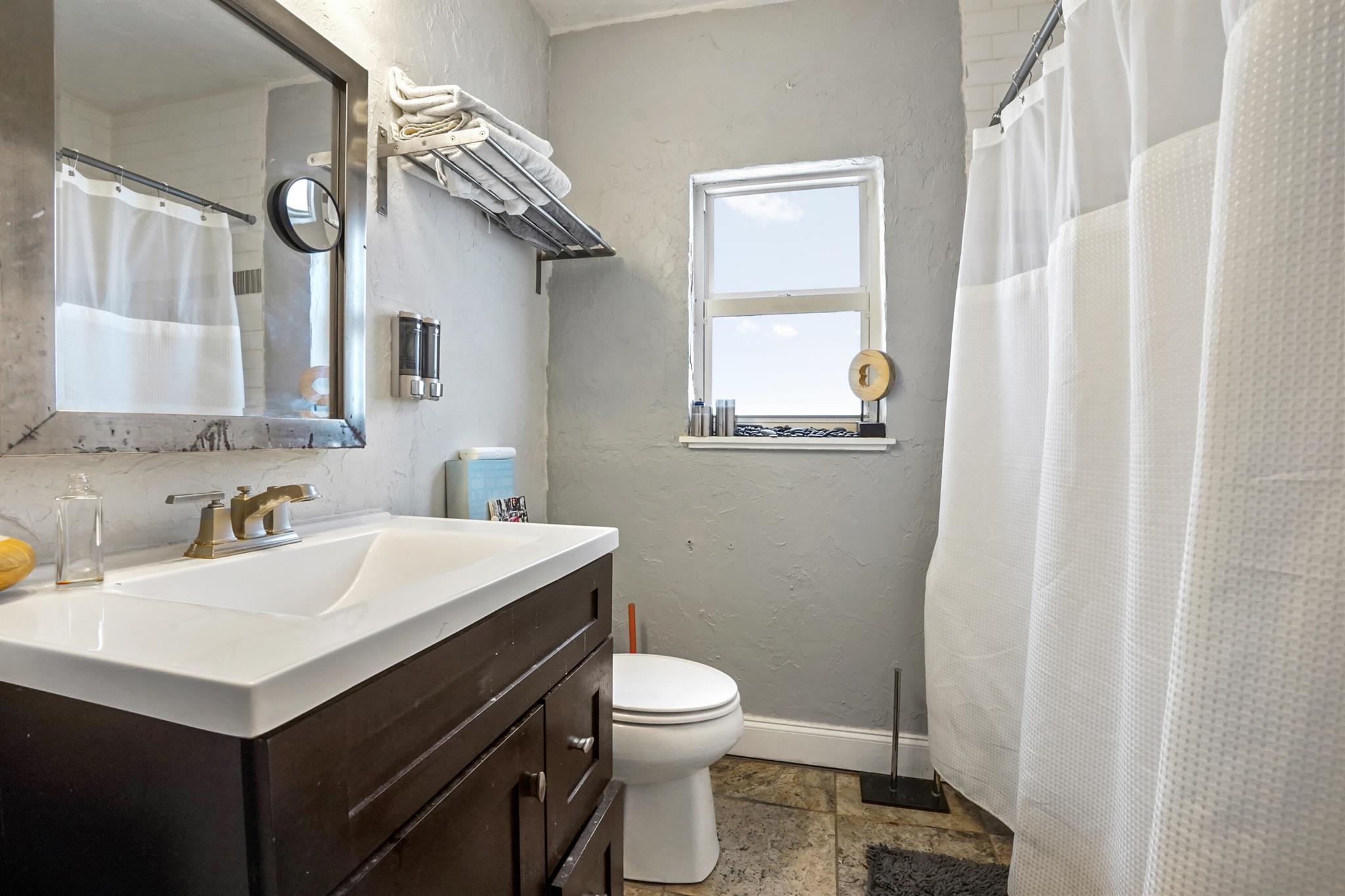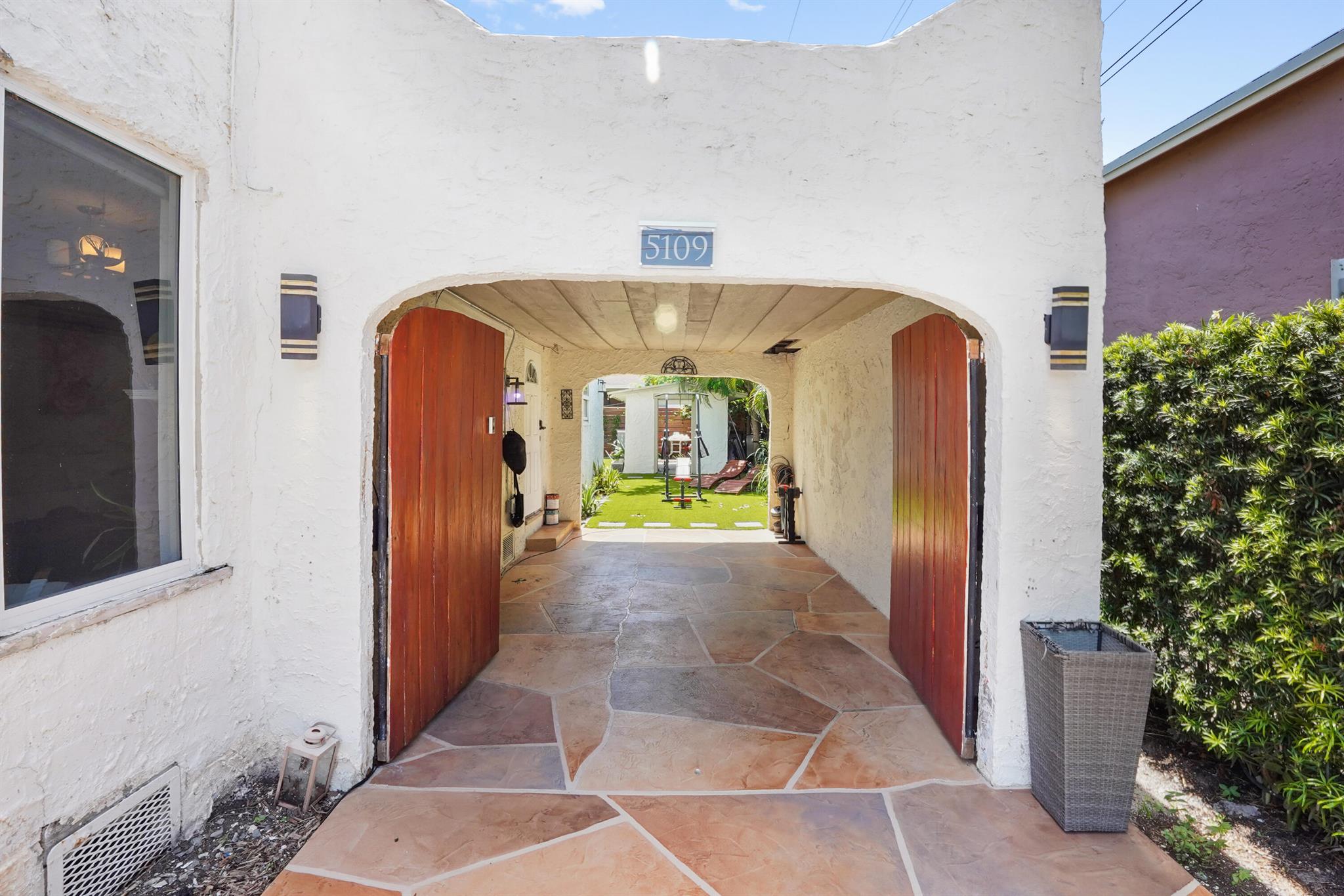 Step into this enchanting home, where beachy chic seamlessly blends with historic elegance. Located on Garden Avenue, this residence offers a spacious open kitchen featuring granite countertops and stainless steel appliances. The airy flow from the living to the dining and kitchen areas creates an inviting atmosphere perfect for both entertaining and everyday living. New AC - 2023. Impact windows and doors throughout. The home boasts restored dark hardwood floors, graceful arches, and a stately mantle, capturing the essence of Spanish style. The bright and cheerful interior adds a modern touch to the classic design. Each bedroom is equipped with lights and fans with remote controls for added convenience.