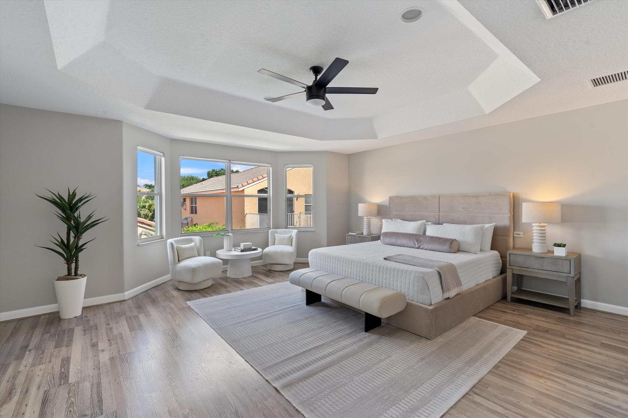 Stunning 2 story corner lot home in The Colony! Boasting ~3K ft of living space, soaring volume ceilings, and a first-floor bedroom or office with half bath, this move-in ready home features updated kitchen & appliances, fresh interior/exterior paint, new flooring, landscaping, 2 new ACs, new water heater, and a garage EV charger. Roof in perfect condition. Enjoy gated community living with resort-style pool, fitness center, and playground. Perfectly located just 4 miles from Delray Beach, close to downtown restaurants, nightlife, and shopping. Low HOA, this home combines luxury, convenience, and lifestyle in one.