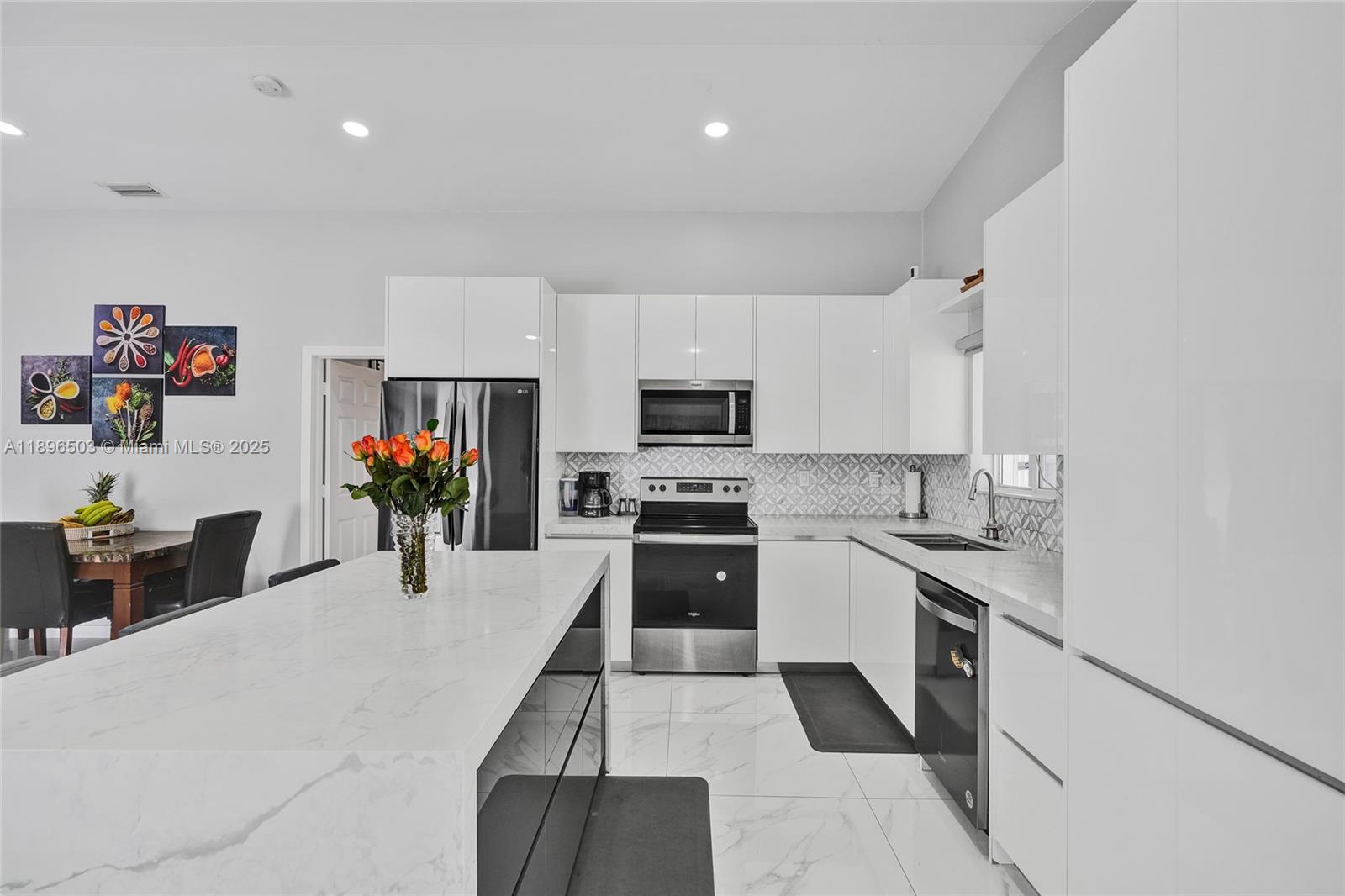 Stunning 3-Bedroom, 2-Bathroom Fully Renovated Home – Ideal Location! Every inch of this home has been thoughtfully updated, making it move-in ready and perfect for those looking for style, comfort, and convenience. The spacious open-concept living area boasts plenty of natural light and flows seamlessly into the brand-new kitchen, complete with sleek countertops, contemporary cabinetry, and high-end appliances. Freshly renovated bathrooms with modern fixtures. Large 2 car garage. Conveniently located near top-rated magnet schools and major highway.