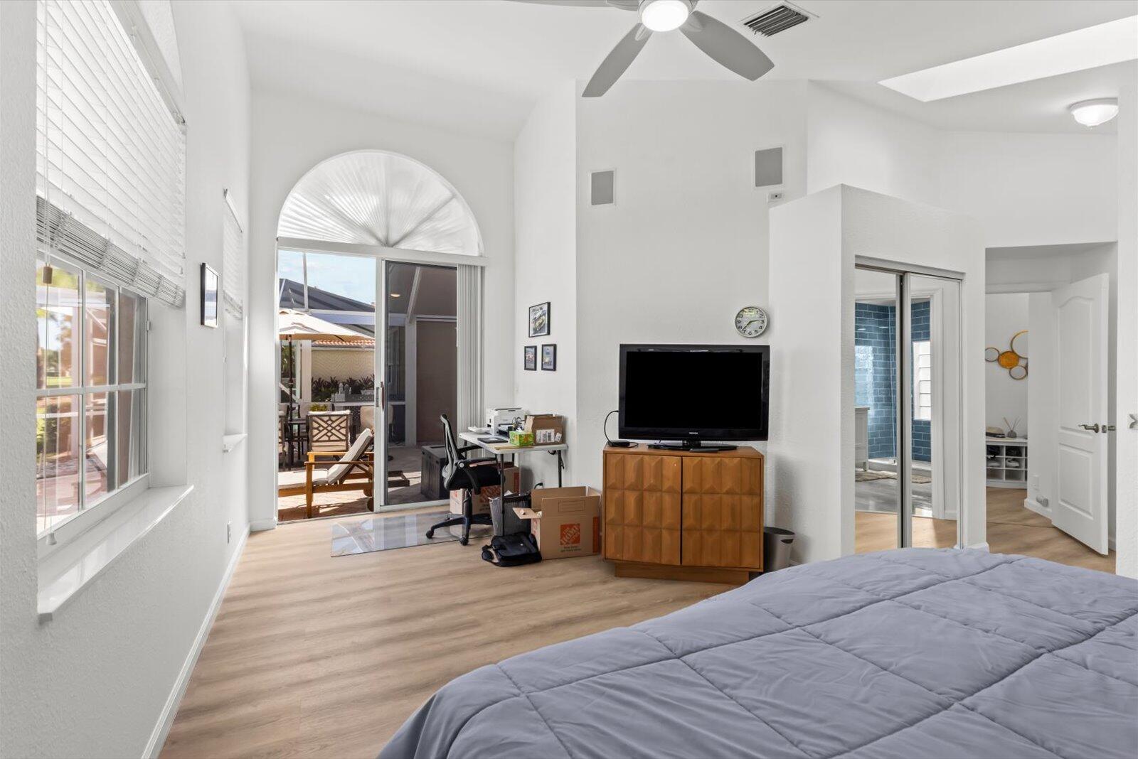 Charming single-level home in the picturesque Villa D'Este neighborhood of PGA National, perfectly positioned along the 17th hole of the Fazio Course with serene lake views. The light-filled interior features an updated kitchen with dining nook, gas range, and spacious open layout. Enjoy outdoor living on the screened patio overlooking the fairway. Impeccably maintained and move-in ready. Villa D'Este offers a European-inspired setting with cobblestone streets, oak canopies, and a beautiful community pool. Furniture and electronics are negotiable for a turnkey experience.