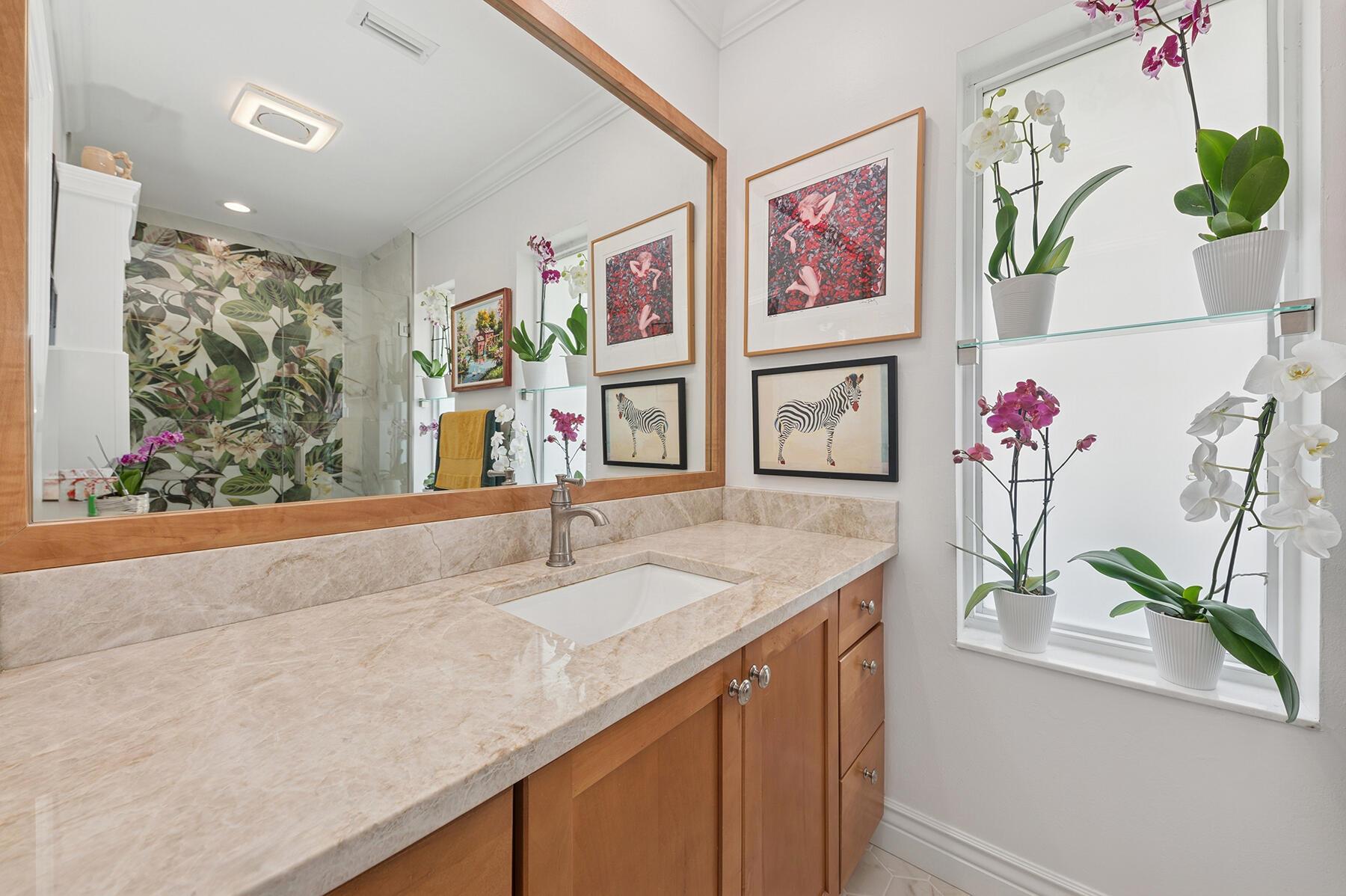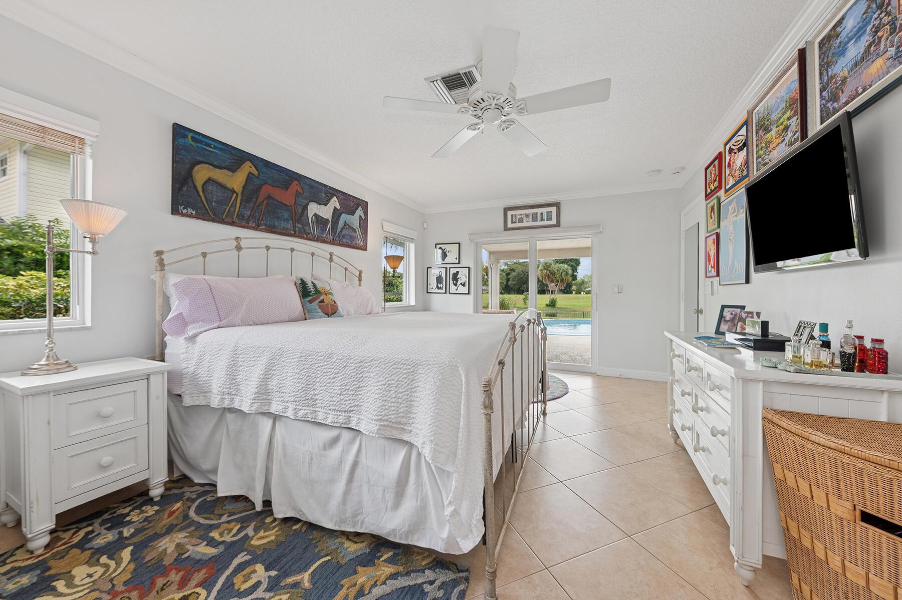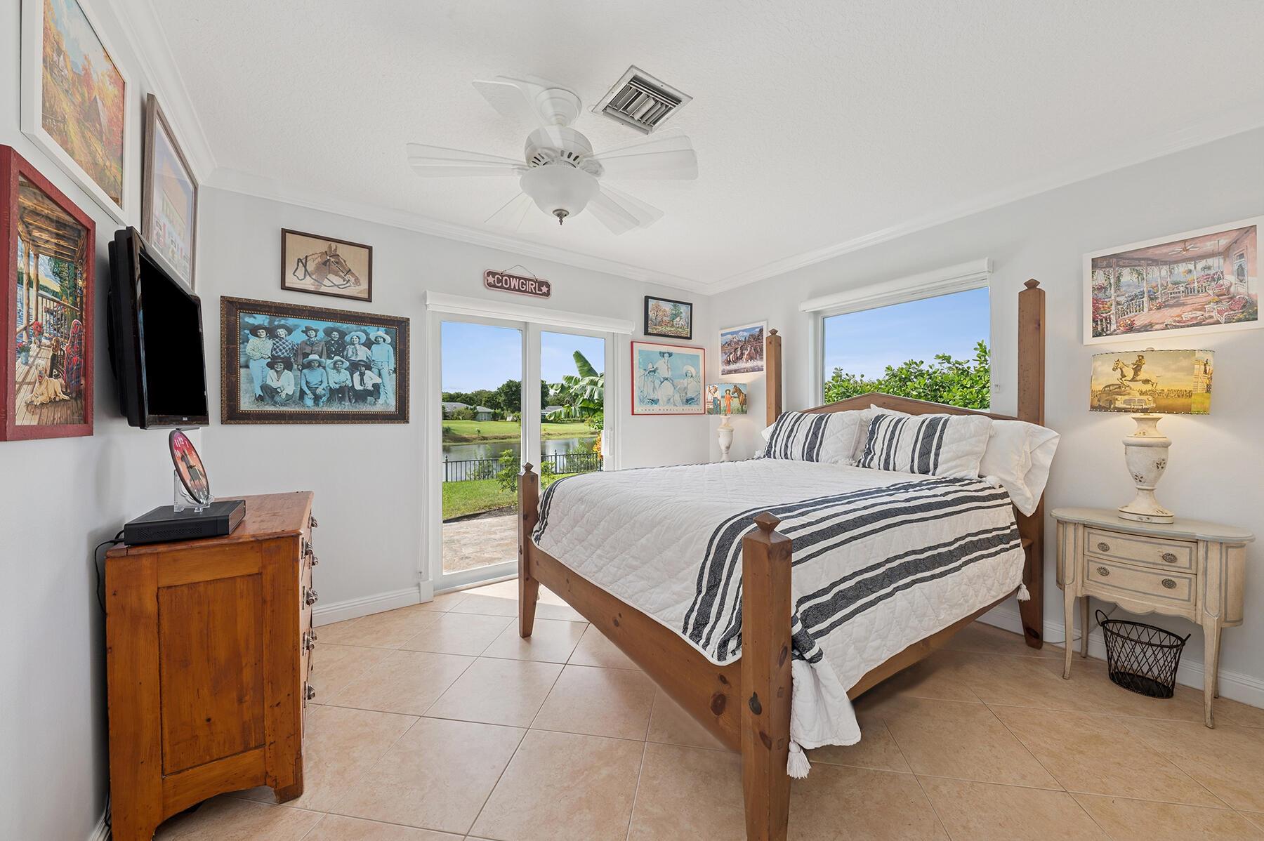 ***EXPANSIVE STUNNING SOUTHERN EXPOSURE POOL, LAKE AND GOLF COURSE VIEWS*** from this 3 BR, 2 BTH, beautifully updated house, in ''best kept secret Lakeview'' neighborhood. 100' of lakefront, completely fenced/hedged in for pets. Impact windows & sliders throughout, and a full house generator. Both bathrooms were fully remodeled and kitchen updated in 2024. The kitchen boasts tall cabinets, stainless steel appliances, quartz countertops, new tile backsplash, under counter lighting and a huge pantry closet. Four sliders throughout the house lets the sun stream in. Walk-In custom designed closets and ceiling fans throughout. Primary BR (motorized) and guest BR boast Zebra blinds. Knock down texture ceilings, porcelain tiles, crown moldings, and hard wood floor in foyer add to the charm.