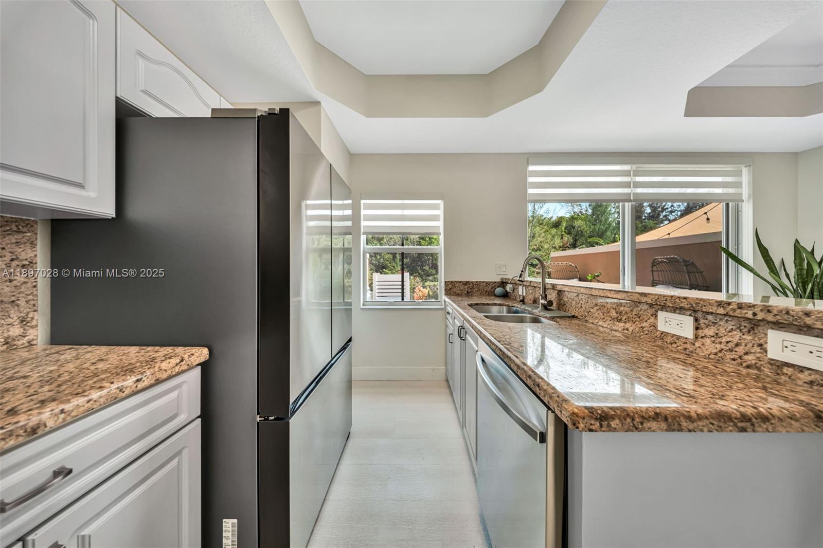 Beautifully remodeled townhouse in a prime location near shops, supermarkets, highways, schools, hospitals, and restaurants. Fully updated in 2023 with new paint, flooring, baseboards, light fixtures, appliances (including washer & dryer), blackout shades, and upgraded outlets. Added in 2024: reverse osmosis water filter & filtered shower heads. AC under 3 years old, recently serviced with air duct cleaning. Enjoy bright interiors and a peaceful water-view yard in a pet- & family-friendly community. Seller relocating—motivated to sell at appraised value and entertaining ALL offers!