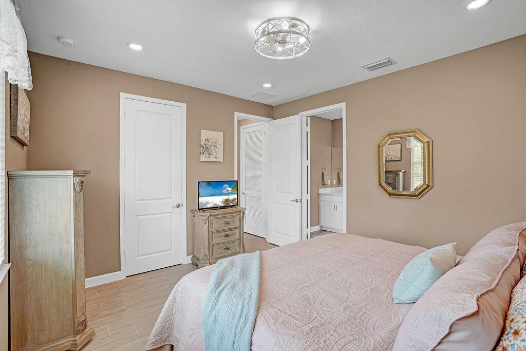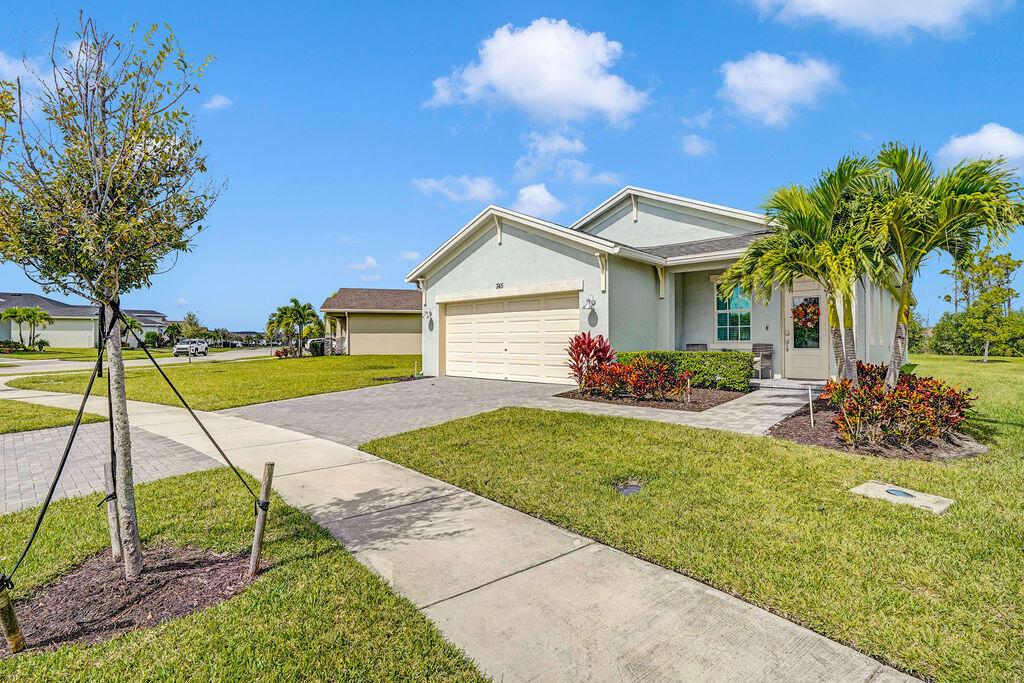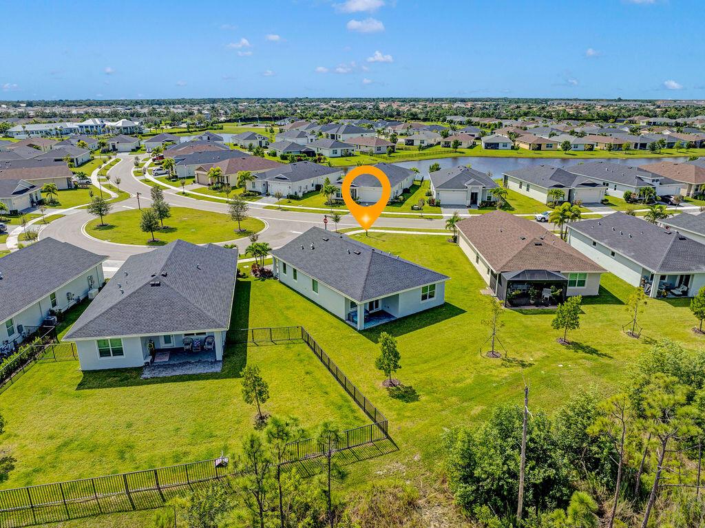 Turnkey 3/2 immaculate home located in an exclusive to 55+ active adults GATED community. This rarely lived in home is located on a cul-de-sac lot backing up to the natural PRESERVE offering no back neighbors for privacy. The open floorplan with 9ft ceilings has a gourmet kitchen with Quartz countertops, large island w/bar, S/S appliances and a GAS range for immediate cooking. Beautiful ALL tile plank floors throughout home, Crown molding, ceiling fans, IMPACT glass, a covered front porch and a covered back lanai w/ brick pavers and GAS hook-up overlooks the peaceful preserve. The resort-style clubhouse offers a heated pool/spa, fitness center, cafe, card room, movie theater, tennis, pickleball and many planned activities. Convenient location near Publix, FL TNPK and I-95