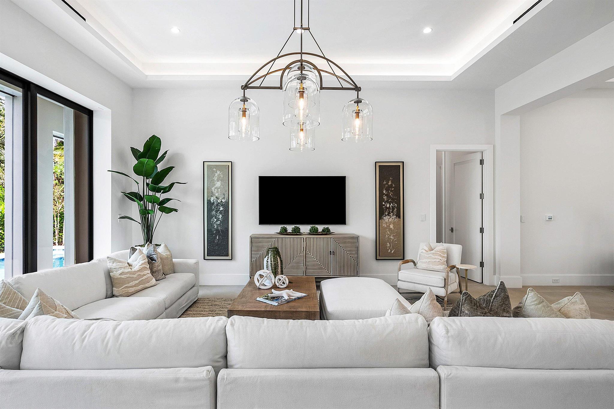 This extraordinary custom home redefines luxury in Coral Ridge with a flawless blend of livability, elegance and comfort. The highest quality construction, premium fixtures, and lush landscaping set a stunning tone for the most discerning buyer - no expense was spared! A 30ft retractable glass wall connects elegant interiors to a resort-style pool and covered patio with automatic screening for year round enjoyment. The kitchen is appointed with custom cabinetry, a walk thru pantry, and a striking 11ft island. The first floor features the primary suite with direct pool access, two living rooms, an ensuite bedroom or office, and a powder room. Upstairs offers an entertainment loft with wet bar, balcony, and three additional ensuite bedrooms. Recently completed, this home is move in ready!