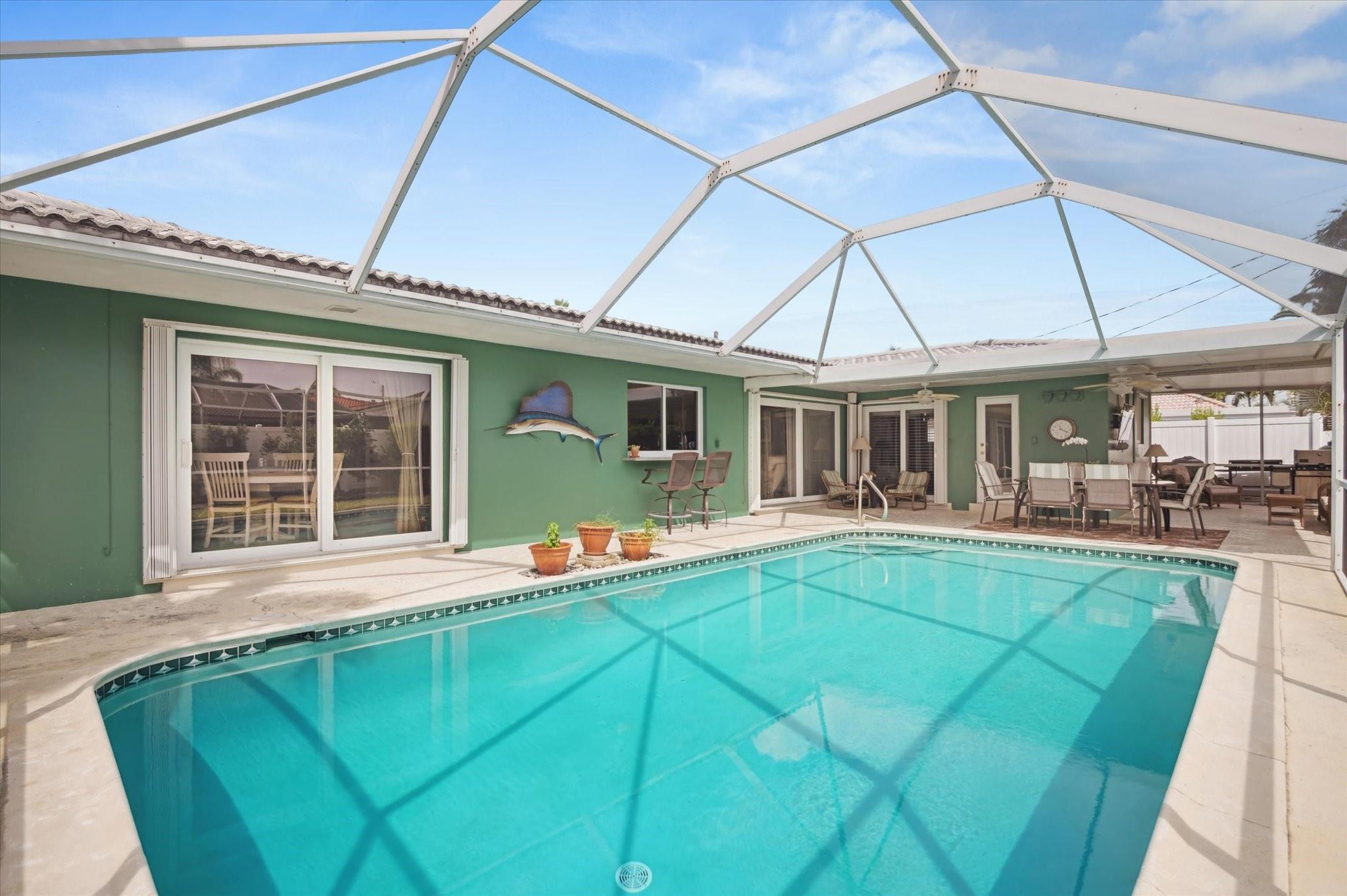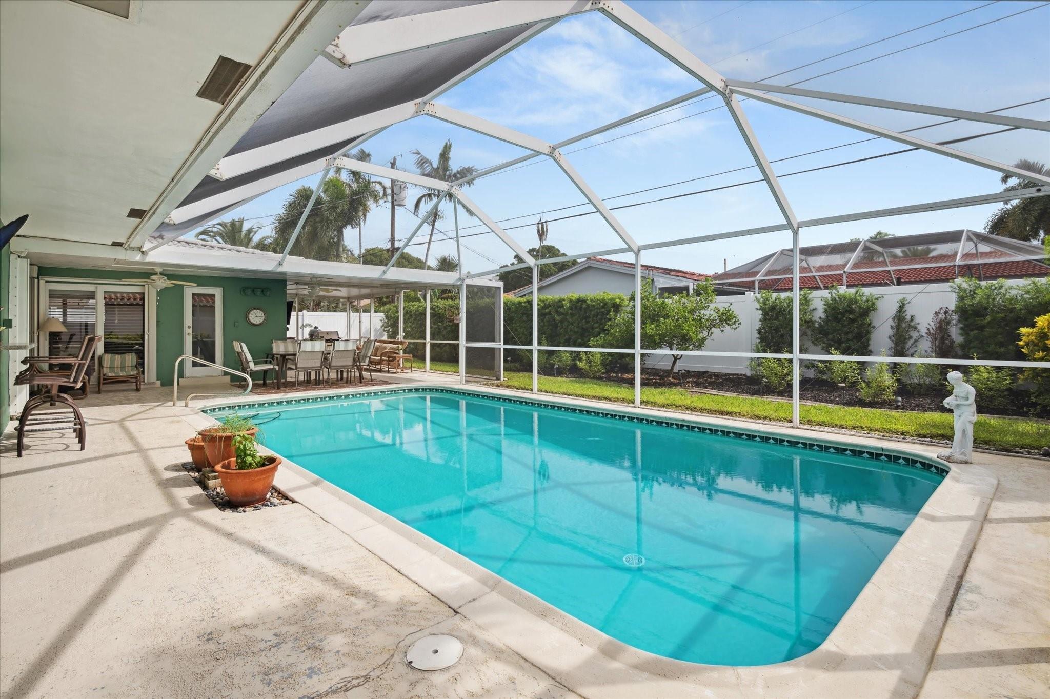 Beautifully updated 3BR/3BA single-family home in sought-after Imperial Point! This move-in-ready residence features elegant plantation shutters, solid wood floors, a custom entertainment center, and a stylish bar. The spacious master suite includes a cozy sitting area. Enjoy a large covered screened patio and private pool—perfect for fun or entertaining friends. New PVC fence newly installed. Just minutes from parks and the beach, this home offers luxury living and an unbeatable lifestyle!