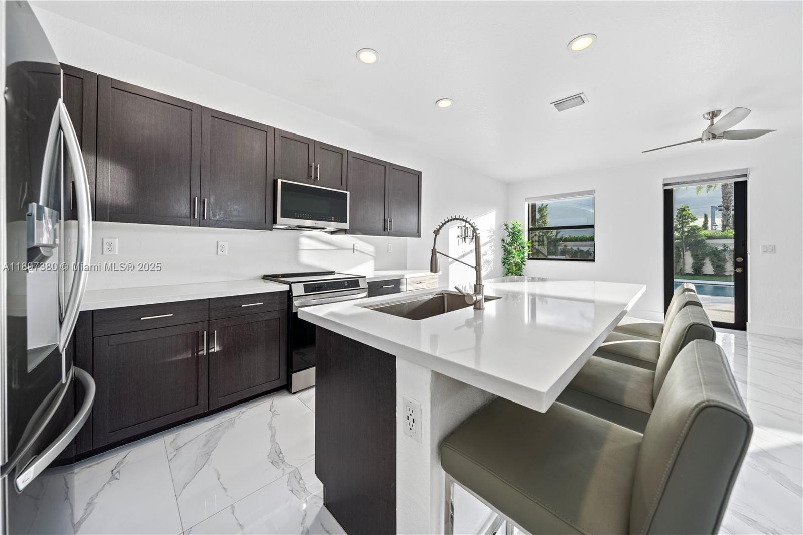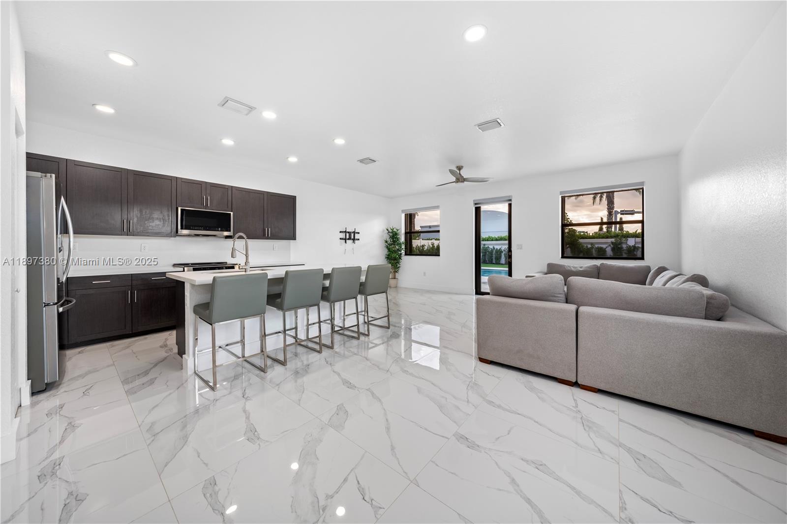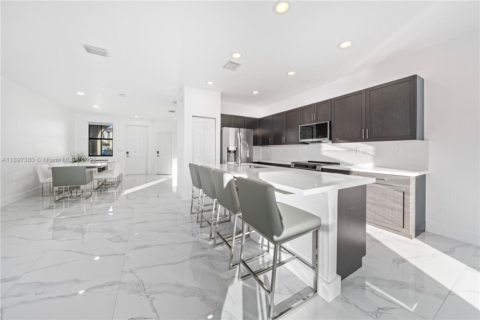 Experience modern luxury and resort-style living in this beautifully remodeled home in Aquabella! Step into your private backyard oasis featuring a sparkling saltwater pool, travertine deck, and lush artificial turf—perfect for relaxation and entertaining. Inside, you’ll find a fully renovated kitchen, updated flooring, and stylishly redesigned bathrooms. A Tesla home charger adds convenience and sustainability. Situated on one of the largest lots in the community, this home offers both space and privacy. Ideally located between Miami Lakes and Hialeah Gardens, you’re just minutes from premier dining, shopping, and entertainment. Residents enjoy access to two clubhouses, state-of-the-art gyms, resort-style pool, and kids’ waterpark—the ultimate family-friendly retreat.