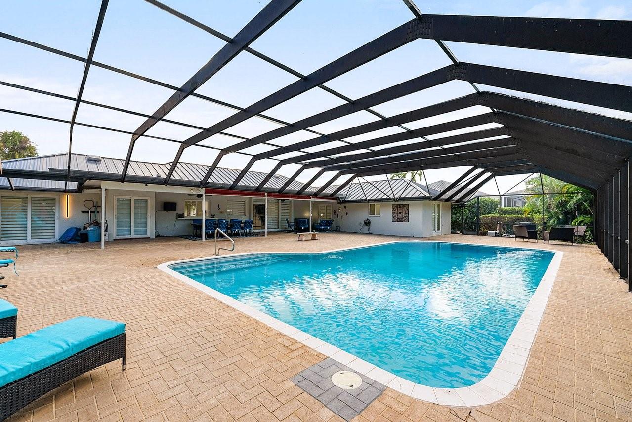 Stunning remodeled 4BR, 3.5BA home with breathtaking golf views and total privacy—no homes behind! Highlights include a 2023 metal roof, impact windows & doors, new electrical panel, soaring ceilings, and 48" high-gloss Versace tile throughout. Enjoy a chef’s kitchen with 2CM Pompeii Extra Extra white countertops, new appliances, a spa-like bath with a 71" acrylic soaking tub, and a bright, open layout designed for comfort and elegance. The screened, heated pool, huge patio, and spacious covered outdoor area are perfect for entertaining. A rear 3-car garage adds the final touch to this move-in-ready masterpiece. Enjoy club features that include: Two Championship 18 hole golf courses with driving range & putting green, full spa & gym, restaurant, pickleball & 7 Har-Tru tennis courts.