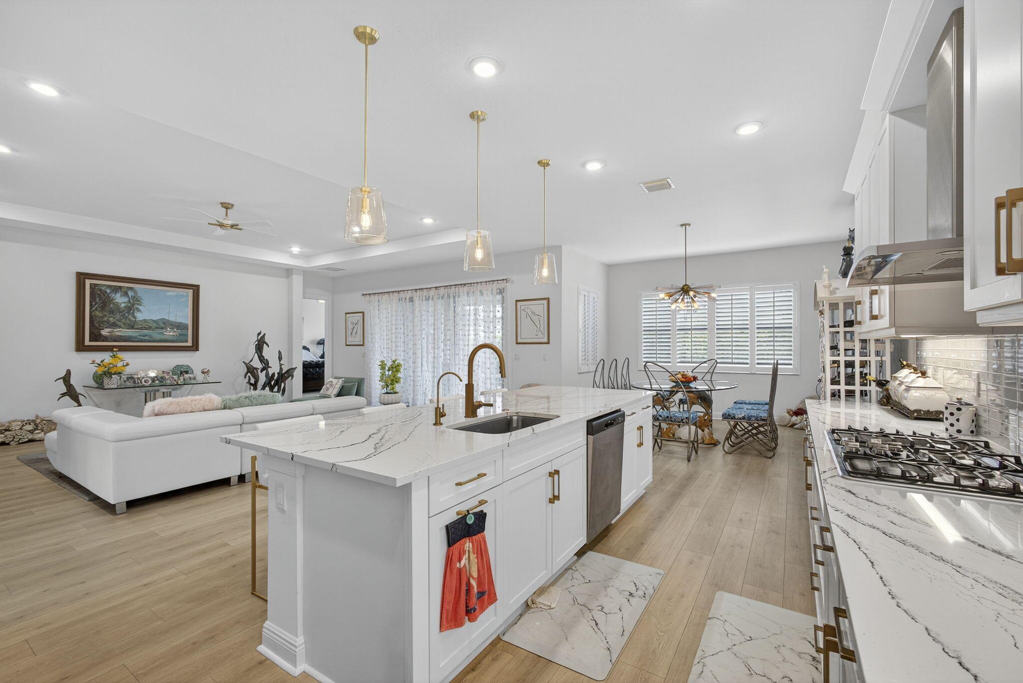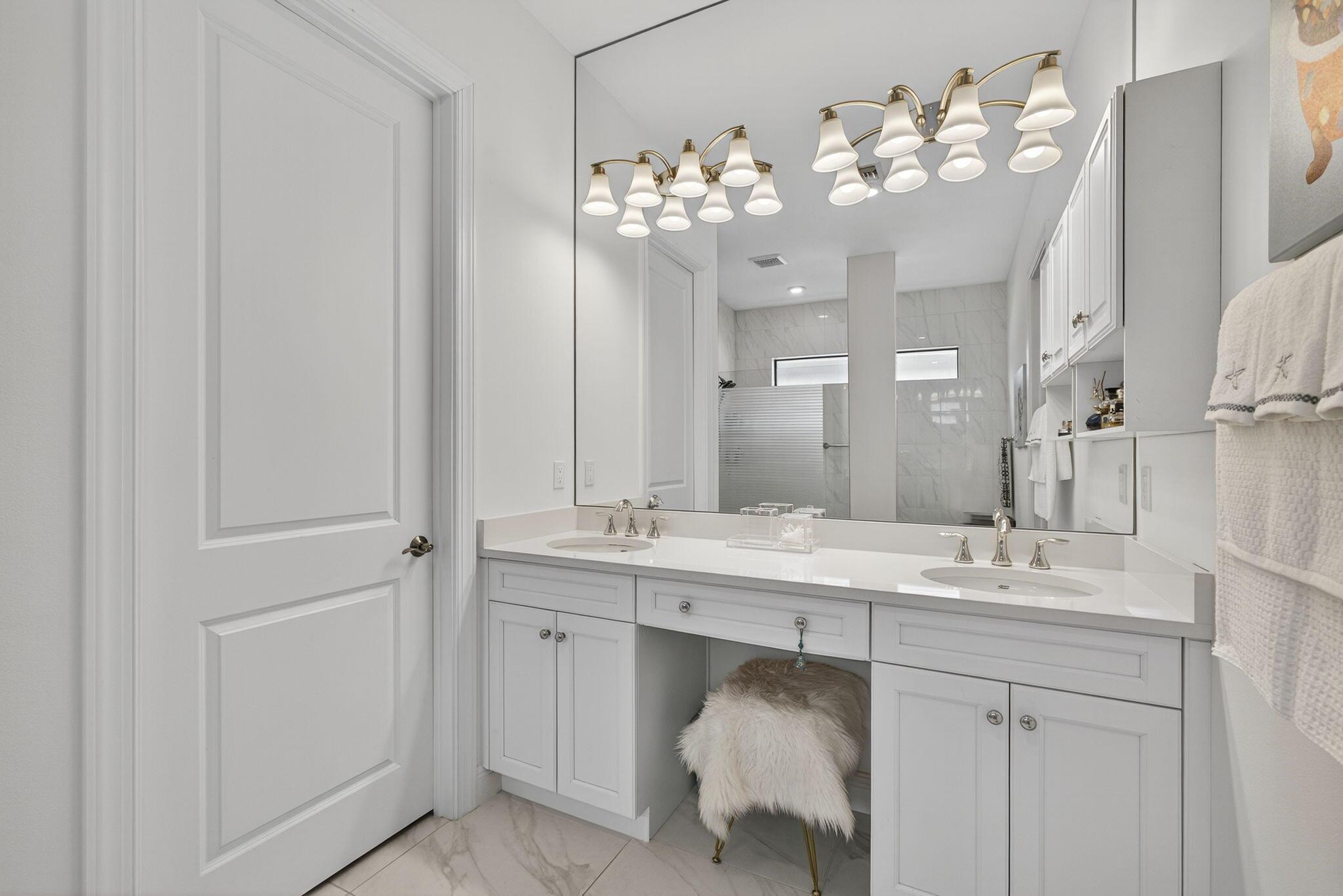 FINISHED IN 2023 - PALM BEACH floor plan with lake view includes 3 bedrooms, 3 full ensuite bathrooms and 1 half powder room. The gourmet kitchen features gas cooktop with hood, quartz counter tops, Plantation shutters throughout, screened-in extended patio, finished closets, upgraded lighting fixture and more throughout the home. Cresswind's amenities & packed activity calendar with pickleball teams, concerts & events.