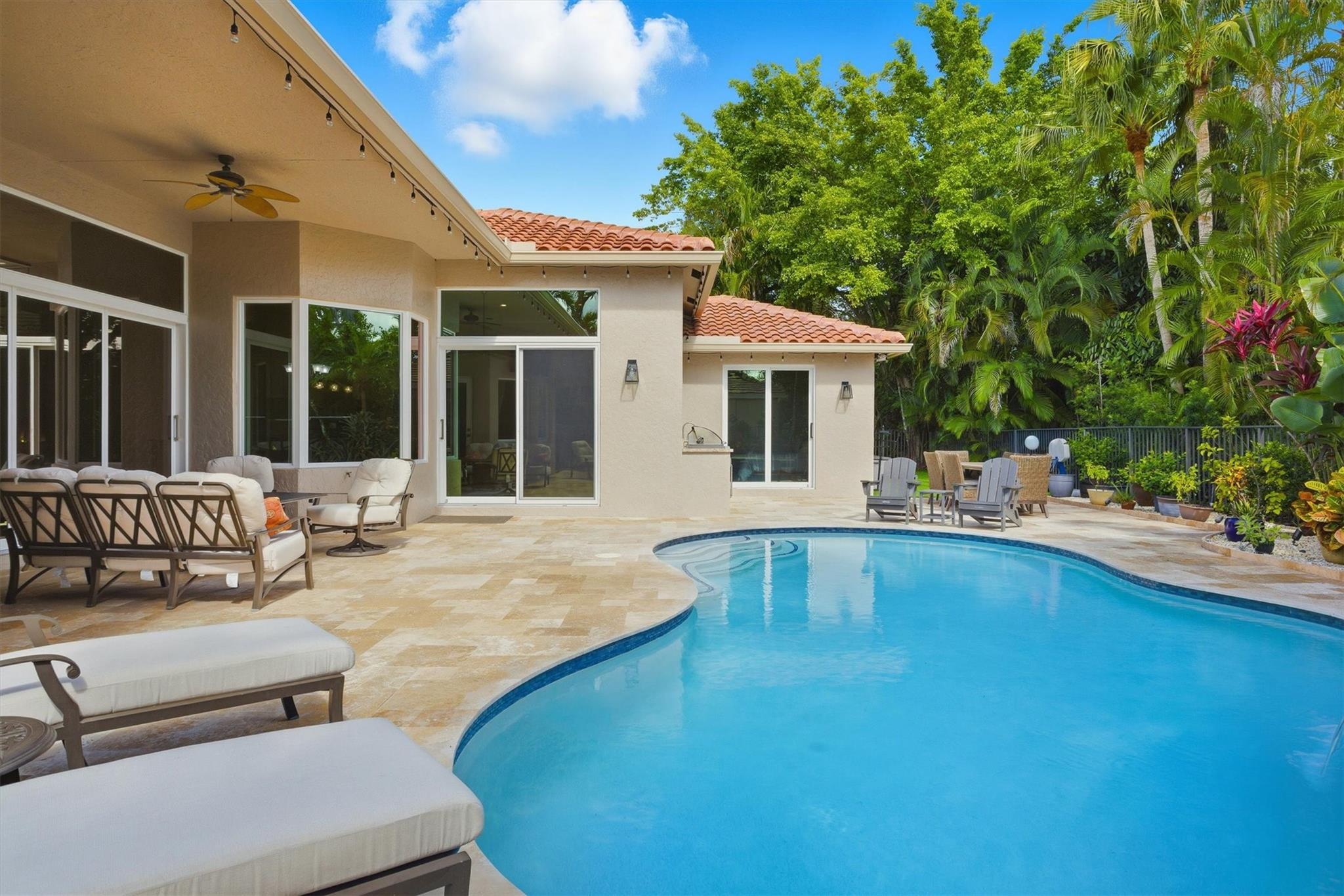 Live the dream in The Landings at Weston, a guard-gated community known for elegance and serenity. This beautifully reimagined 5-bed, 3-bath home blends timeless design with over $280K in upgrades, including a new roof, impact windows/doors, new A/C, and whole-home water filtration. Enjoy open living spaces with soaring ceilings, a gourmet kitchen, and a 3-way split plan for privacy. Step outside to your private oasis featuring a fully rebuilt saltwater pool, turfed yard, and outdoor kitchen perfect for entertaining. Zoned for A-rated schools, minutes to parks, Weston Town Center, and highways—this residence offers luxury, comfort, and peace of mind in one of Weston’s most sought-after enclaves.
