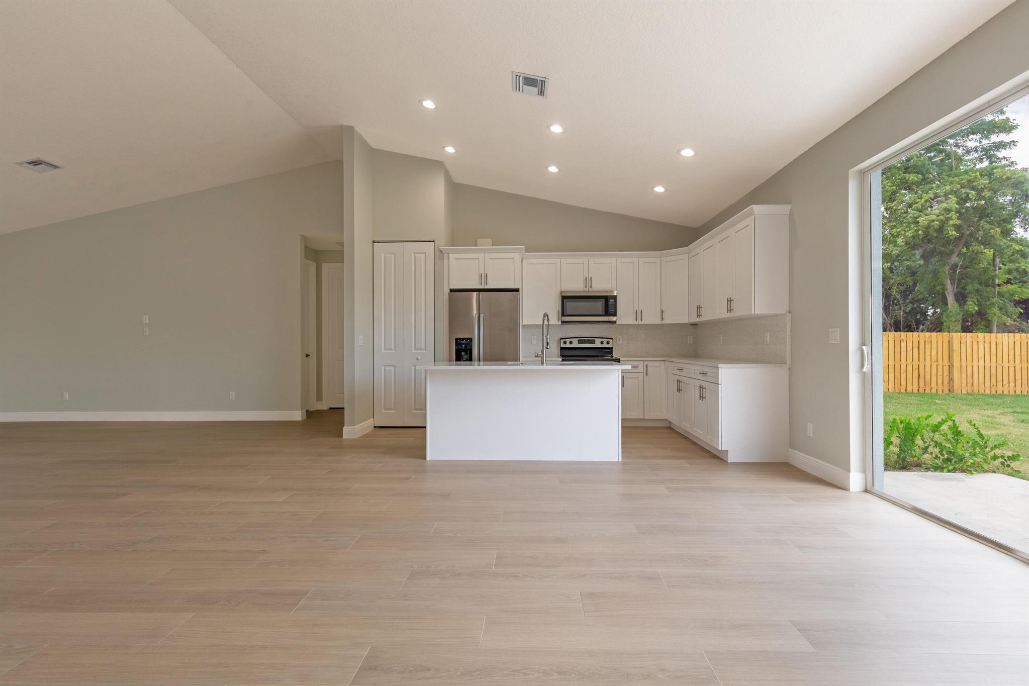 NEW CONSTRUCTION - 2025 Build in Palm Springs with NO HOA! This modern 3-bedroom, 2-bathroom home offers an open and airy layout with soaring Vaulted ceilings, sleek porcelain tile flooring, and hurricane impact-rated windows and doors throughout. The stylish kitchen features a quartz island, stainless steel appliances, and plenty of space for entertaining. The split floor plan includes a spacious primary suite with a walk-in closet and a luxurious en-suite bathroom with double vanities. Step outside to a fully fenced backyard -- perfect for outdoor living, with plenty of room to add a pool. Ideally located on a quiet street just minutes from everI-95, downtown West Palm Beach, and PBI Airport. Don't miss this incredible opportunity to own a Brand-New Home with NO HOA restrictions