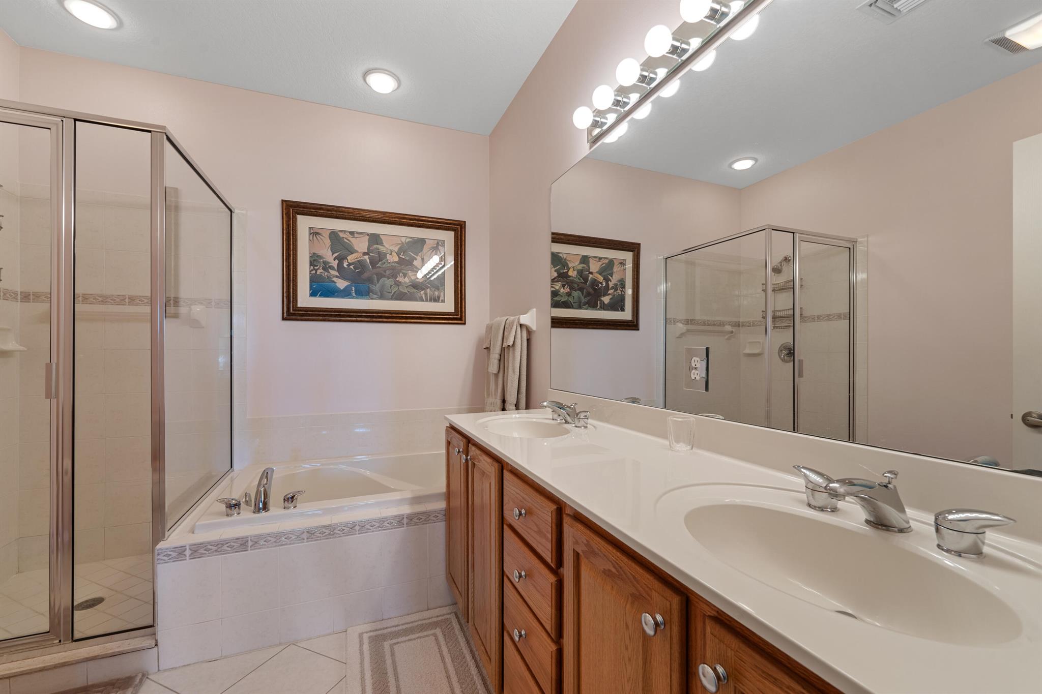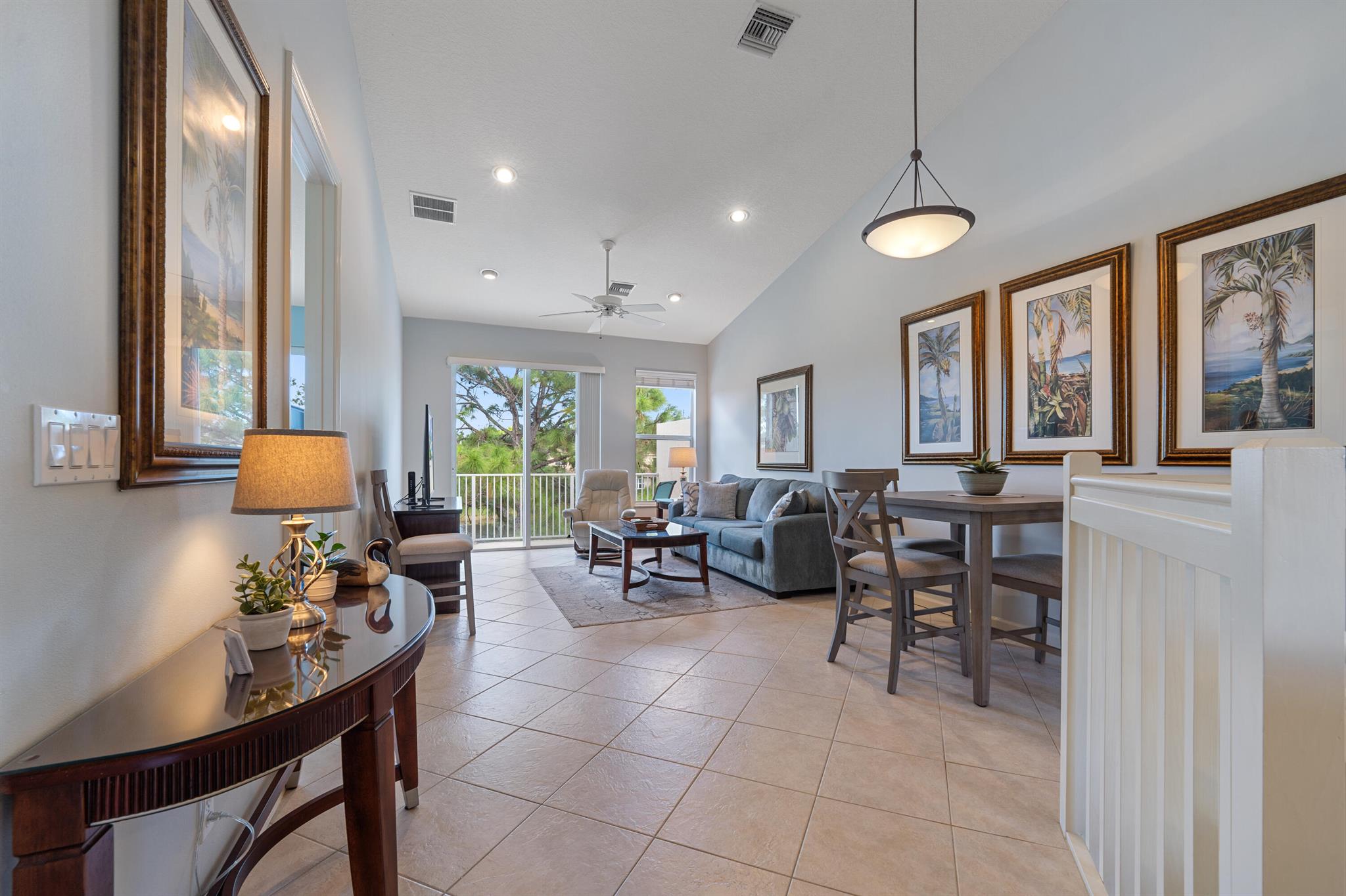 This well-maintained, split-level home features a double car garage, high ceilings, stainless appliances, fresh interior and exterior paint, new tile flooring on lower level, walk in closet, separate shower and soaking tub, lake views from all bedrooms and the family room. This floorplan includes an oversized 5x28 balcony and a 12x13 screened porch for your outdoor enjoyment. Castle Pines has a resort style pool and spa within walking distance, or residents may choose to enjoy the PGA Village Island Club, a large-scale recreation and activity center, complete with fitness center, tennis, pickleball, heated pool, and multi-purpose rooms. Location is terrific, just two minutes from I-95 and conveniently close to shopping, restaurants, parks, and activities such as the NY Mets spring
