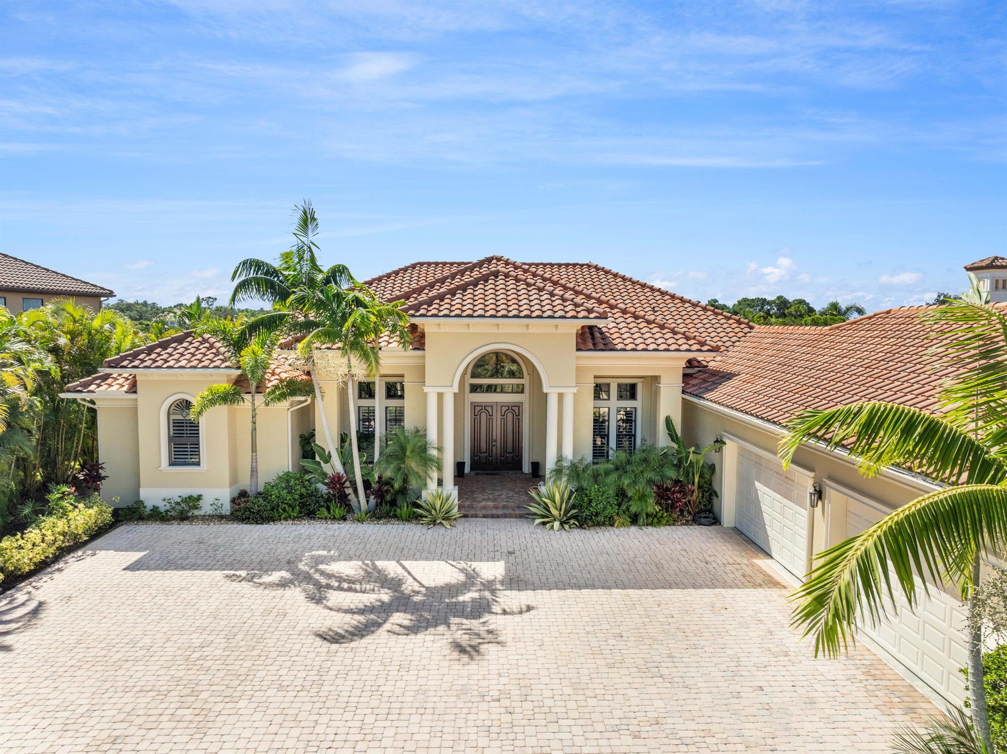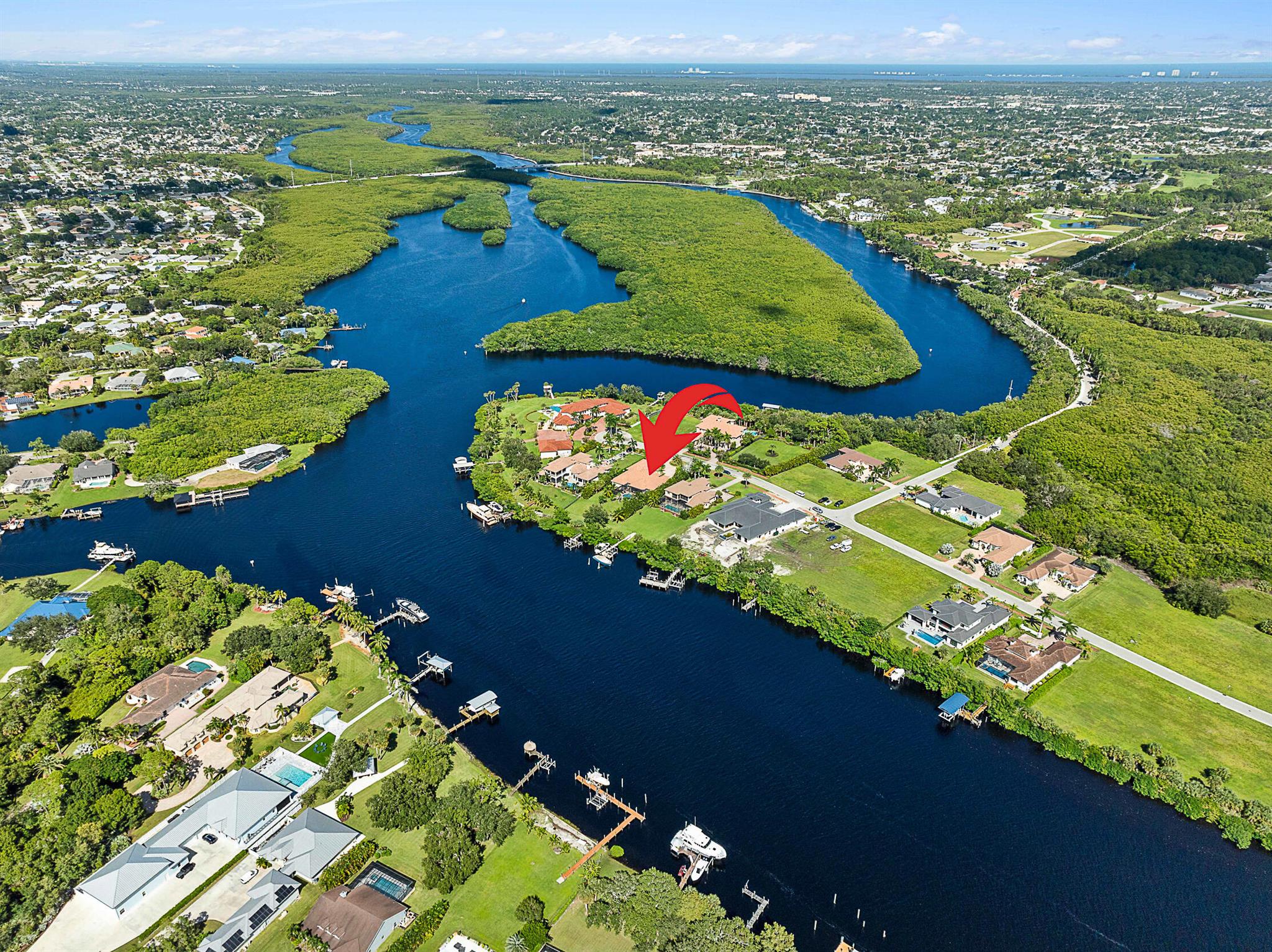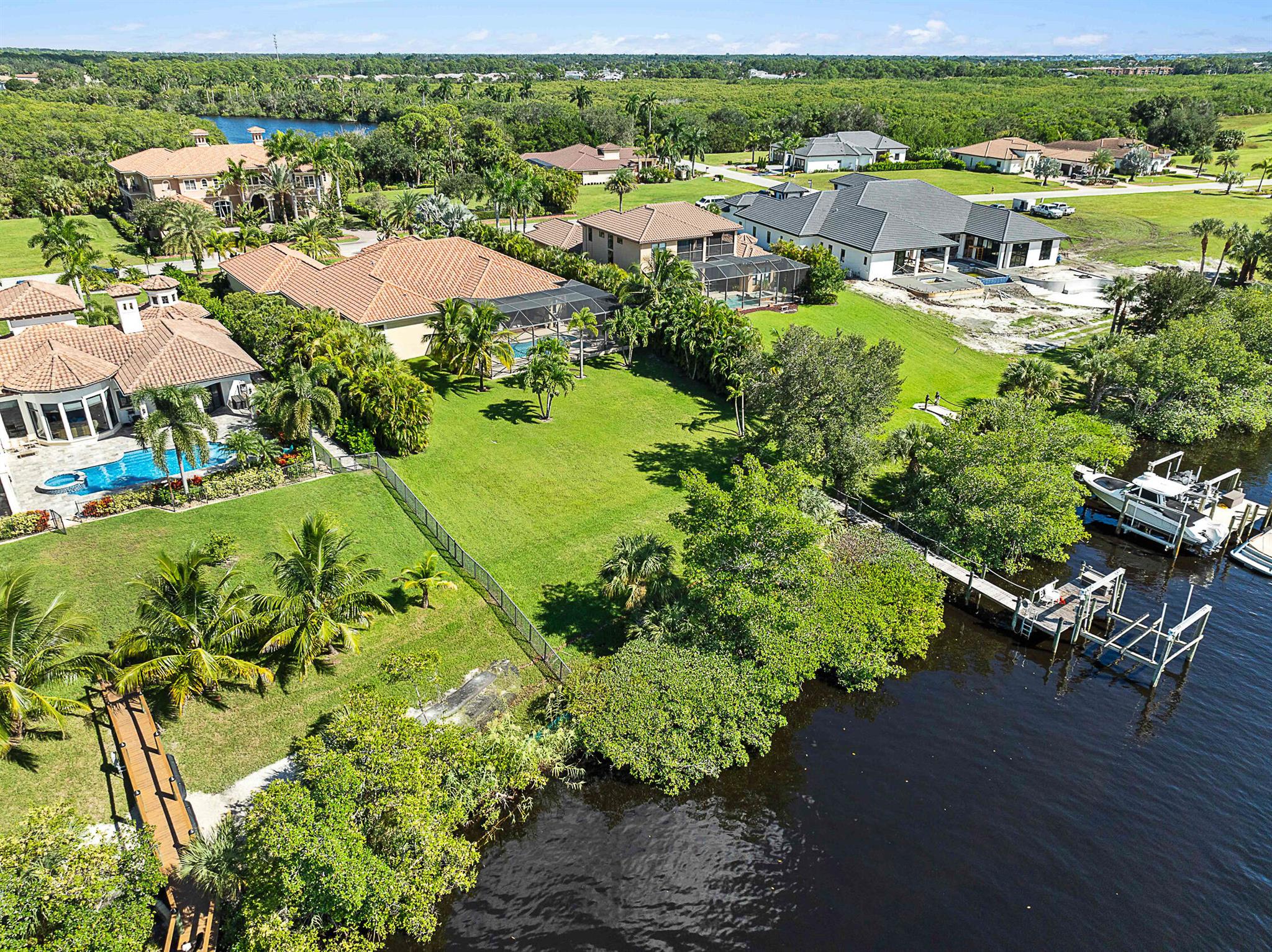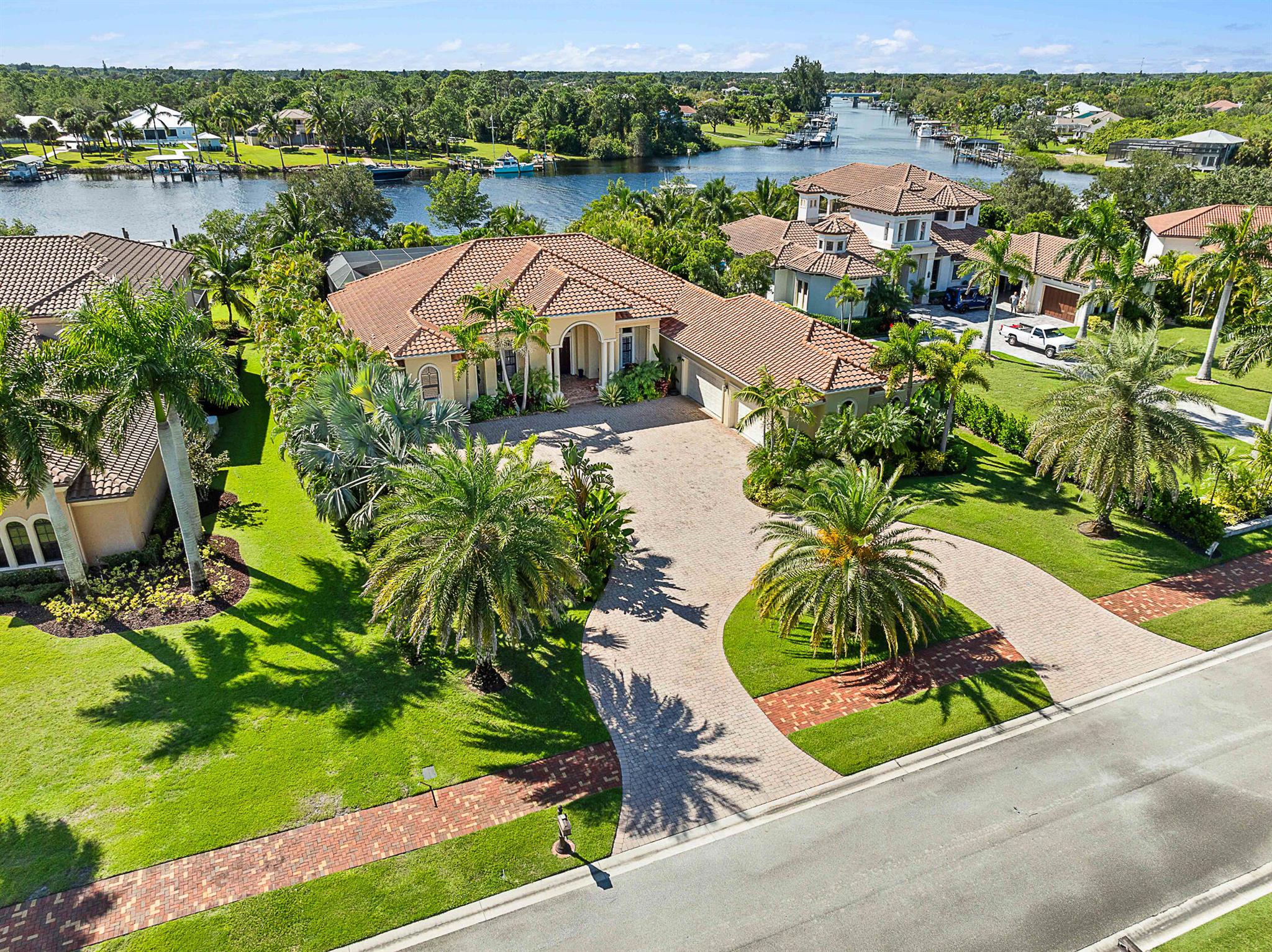Boater's Paradise! Deep-water, ocean access, 16k lb. boat lift and no fixed bridges from this elevated South Florida riverfront home. Featuring 3 spacious bedrooms, plus a den and larger office, this open-concept residence offers high ceilings, warm wood floors, and plantation shutters throughout. The expansive kitchen/great room flows seamlessly to the pool and tropical backyard, surrounded by mature landscaping for privacy and beauty. The 4-car garage formally had lifts for the owner's car collection and easily converted back if desired. Close to town, minutes to fine dining all inside the Gated community known as the ''Island of Ravello''.