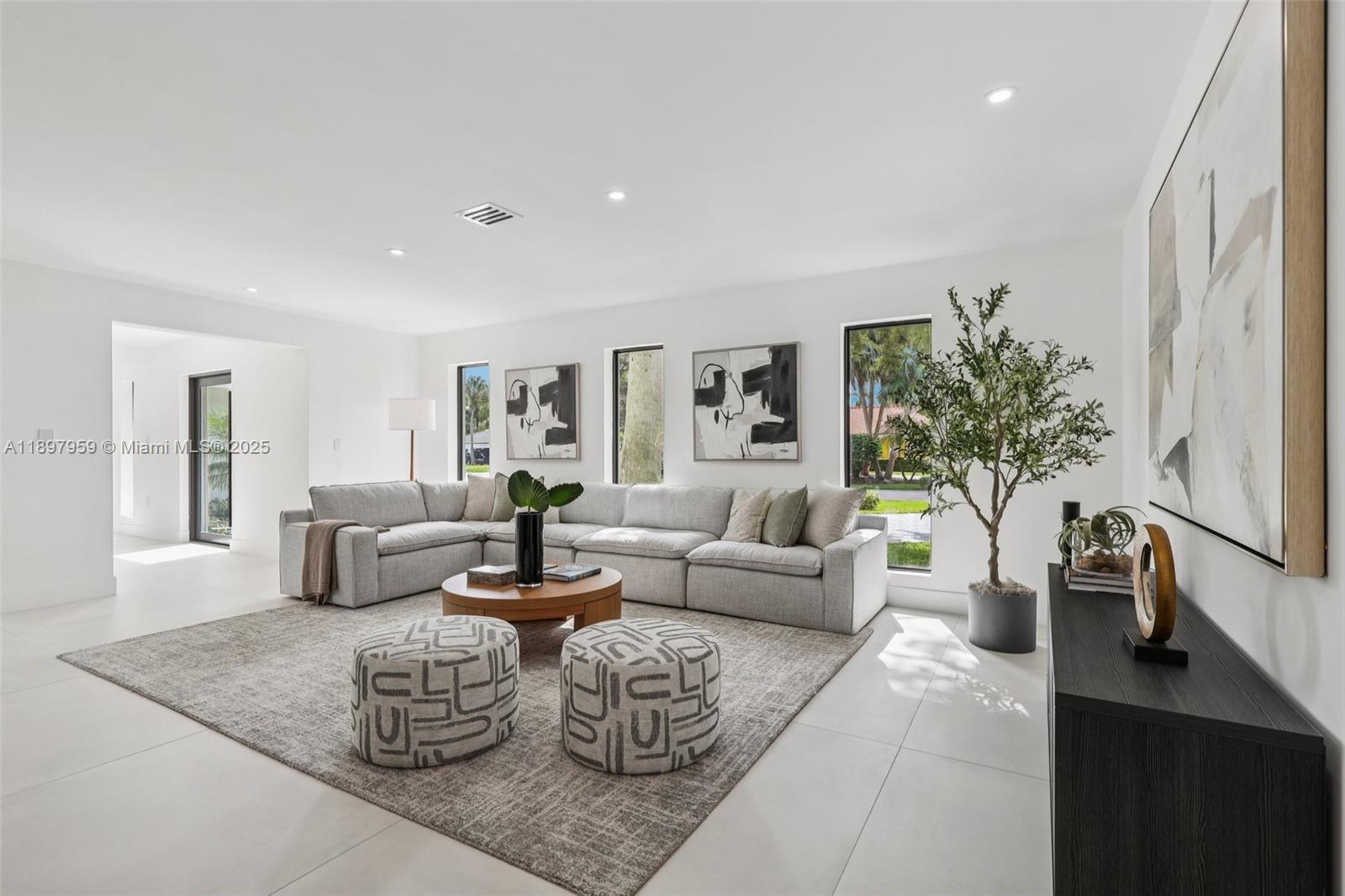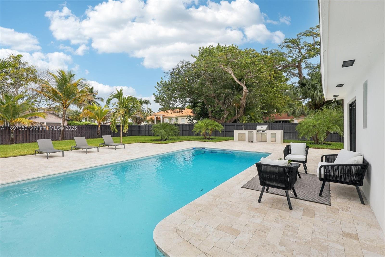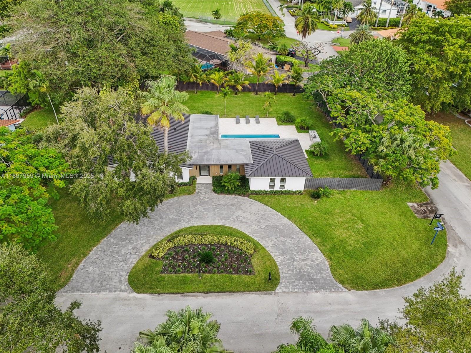 Experience modern luxury and timeless elegance in this stunning 4-bedroom, 3-bath corner-lot residence on a spacious 0.46-acre lot in Palmetto Bay. This beautiful home features a bright open layout with sleek custom finishes and abundant natural light streaming through floor-to-ceiling impact glass. The gourmet kitchen offers premium appliances, a large island, and bespoke cabinetry flowing seamlessly into the living and dining areas. The primary suite provides a serene retreat with a spa-inspired bath and custom closets. Step outside to your tropical oasis with a sparkling pool, lush landscaping, and a majestic banyan tree—perfect for relaxing or entertaining. Ideally located near top-rated private schools, parks, and the Deering Estate.
