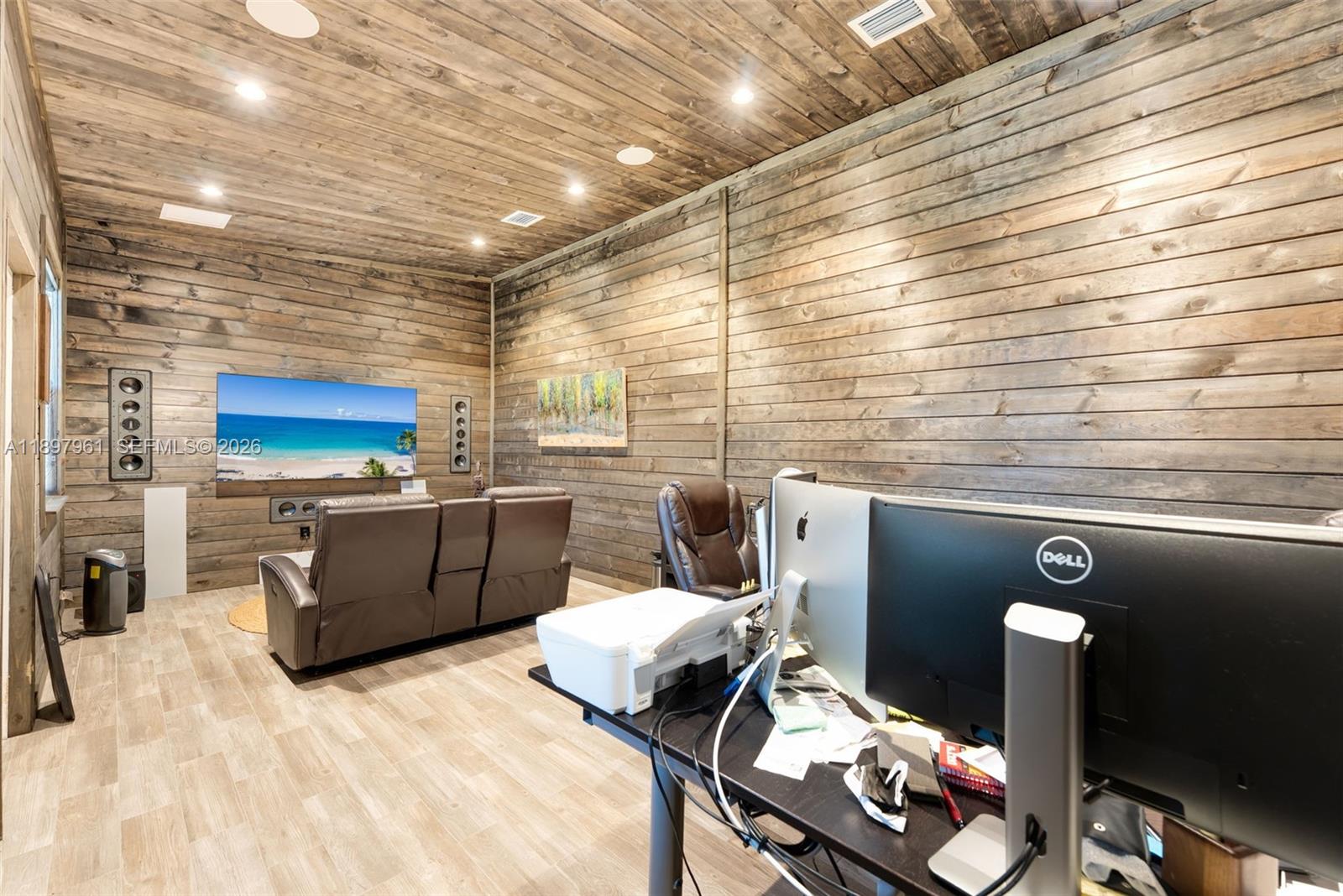 Luxury living in this stunning 6-bedroom, 6.5 Pool Home sitting on 1.25 acres . Main Home with 3 En-suite Bedrooms, Multi Zone Ac Units, Updated Cat 5 wiring, , elegant travertine marble floors, crown molding, wood cabinetry, a private theater, and a serene massage room create a refined retreat. An Enclosed, Insulated Barn/ Hobby /RV Garage has separate private entrance high ceilings, durable flooring, and a full-size rolling door perfect for RVs, boats, or car collectors. This detached structure also has two office spaces with a bathroom. Outdoors, enjoy a resort-style lagoon pool, spa, and mango grove, mamey, avocado, and coconut trees—your private tropical paradise. Enjoy Horses? This Neighborhood is Equine friendly and with its own practice arena this property has it all.