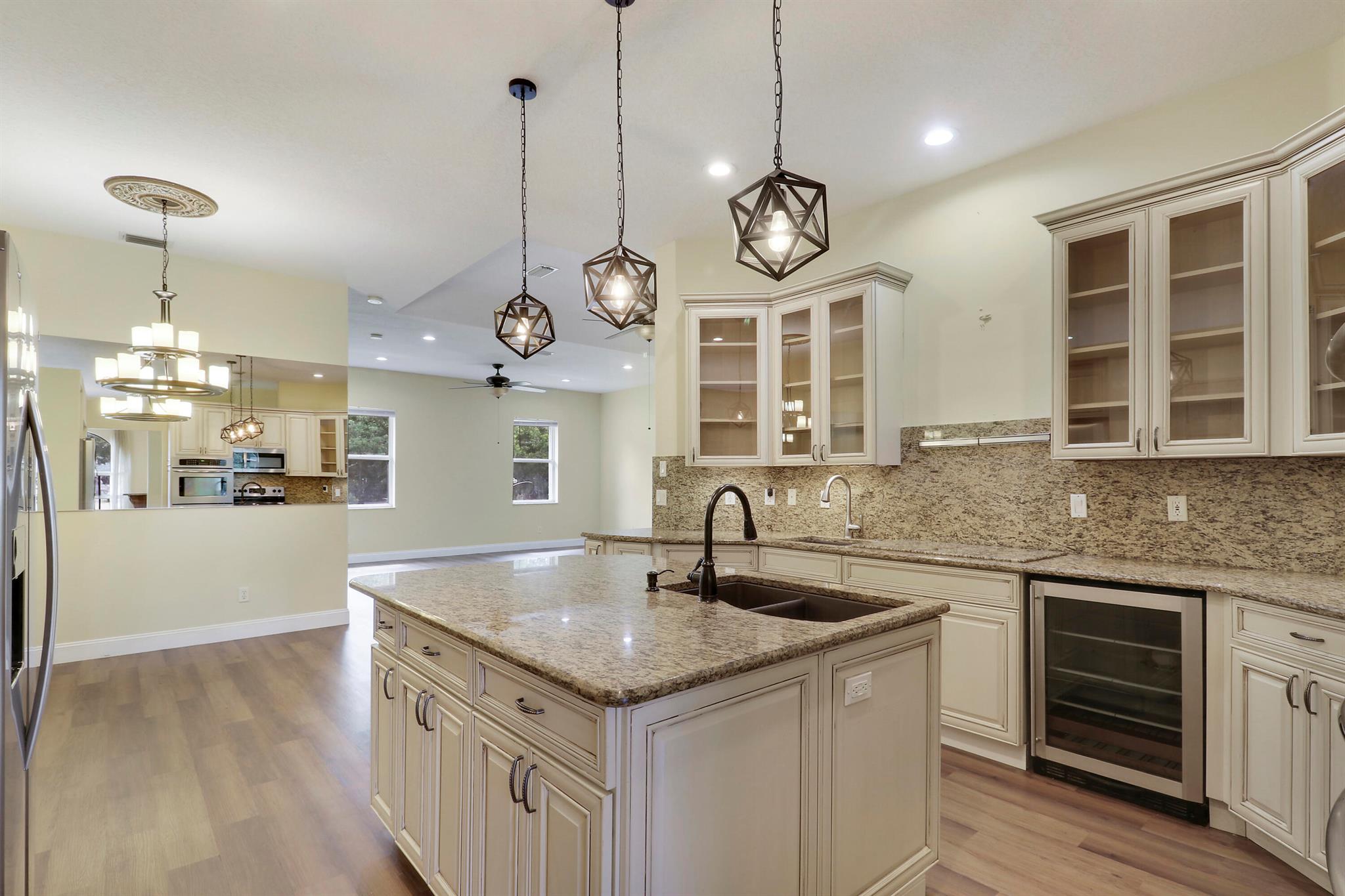 Spectacular home in the Osprey Ridge, a small, quiet gated community of only 34 homes within the Southbend area of Port St Lucie. This 4 bedroom, 3 1/5 bath home on an estate sized lot of .59AC backs to a preserve for privacy. Gourmet Kitchen, double wall oven, wooden 42'' cabinets with granite counters and a large walk-in pantry. Wet bar and wine fridge just off the dining room leading into the family room. Primary Suite includes California walk in closet, bath with dual sinks and huge wrap around counter with a spacious walk-in shower. Large, screened patio with cabana bathroom. Plenty of room for pool, if desired. The neighborhood (with Low HOA fees) runs along the St Lucie C-24 canal with ocean access and public boat ramp close by. New Roof & Full Accordion Shutters in 2021.