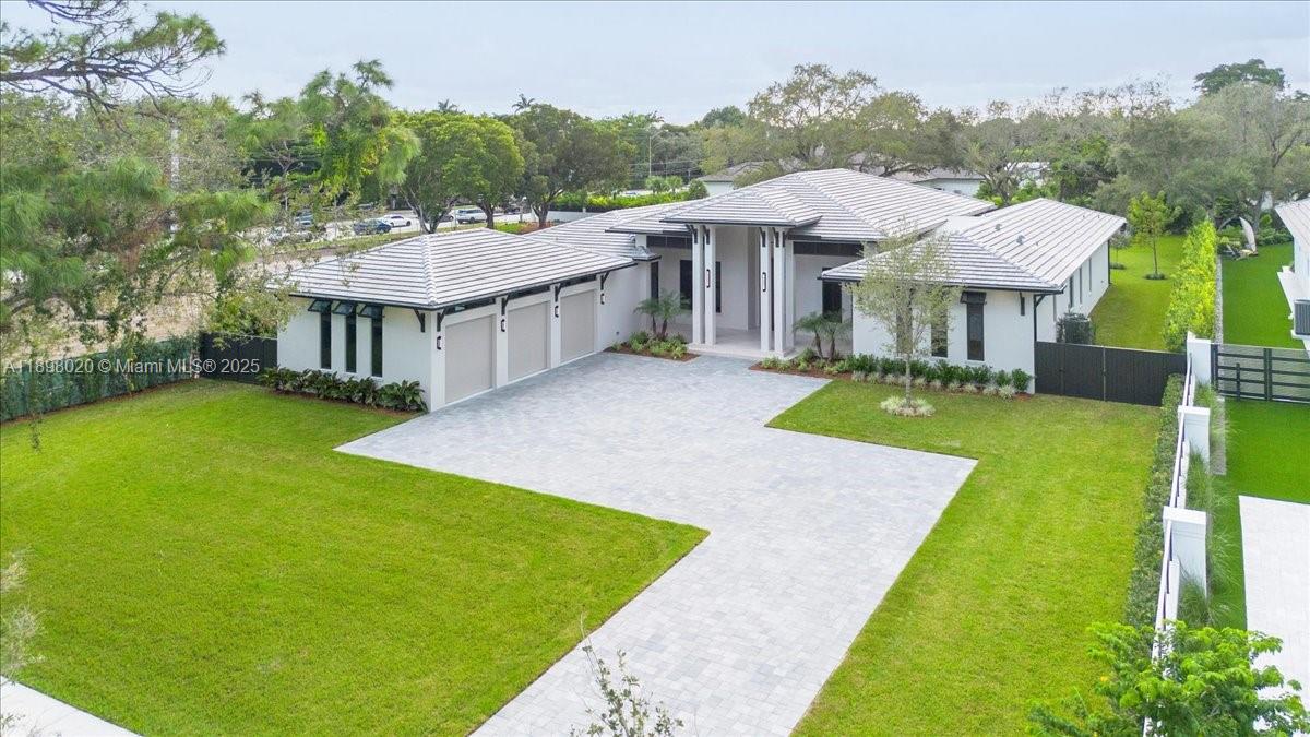 Stunning new one-story contemporary estate on a 33,000 SF lot in coveted Glenvar Heights! This 5-bed + office, 5-bath home features soaring ceilings upon entry with an open, light-filled layout, and seamless indoor-outdoor living. The gourmet kitchen boasts custom cabinetry, elegant millwork, Taj Mahal quartzite countertops, and Thermador appliances; adjacent to your large family room overlooking your backyard. Enjoy a private oasis with a 20x40 pool, covered terraces, and summer kitchen - perfect for entertaining. The primary suite offers a spacious bedroom with seating area, two walk-in closets, and a spa-like bath with dual water closets. 3 car garage. A rare opportunity to own a brand-new residence offering exceptional craftsmanship, scale, and style. Glenvar Heights gem!