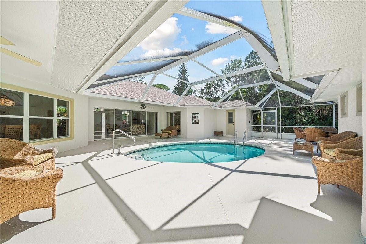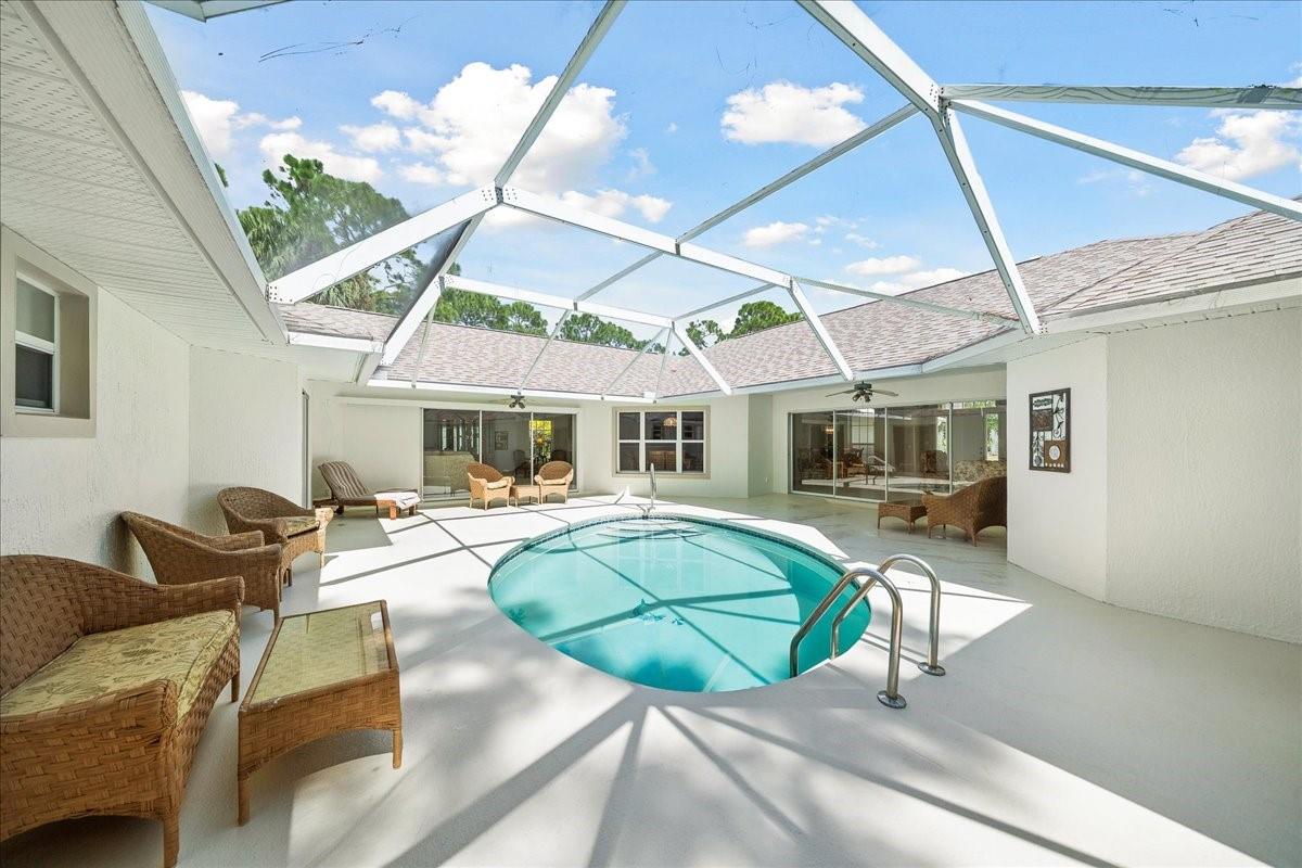 Welcome to your completely refreshed custom retreat in Vero Lake Estates! Sitting on 1.12 sprawling acres, this 3-bedroom, 2-full bathroom/2-half bathroom custom-built home offers 2,340 sq ft of refined living. Experience true peace of mind with a brand-new roof and fresh paint (interior and exterior) in 2025. The outdoor oasis features a private, screened-in pool and lanai, freshly resurfaced in 2019, perfect for year-round enjoyment. Inside, find modern convenience with stainless steel appliances and a unique bedroom suite with a separate, private entrance—ideal for a home business, office, or client meetings. The living room opens to an additional screened porch area, affectionately dubbed "heaven" by the current owner. Well-maintained and move-in ready!Additional parking for RV/boat.