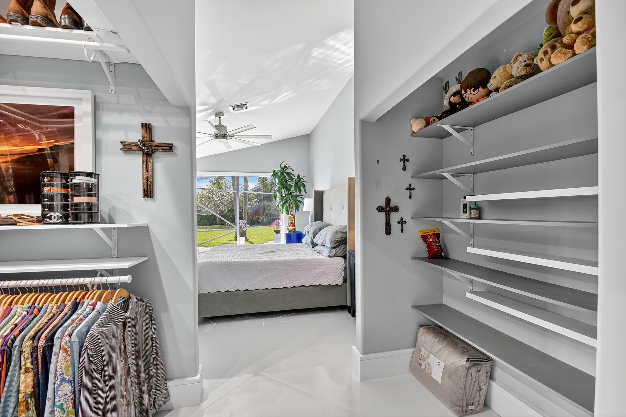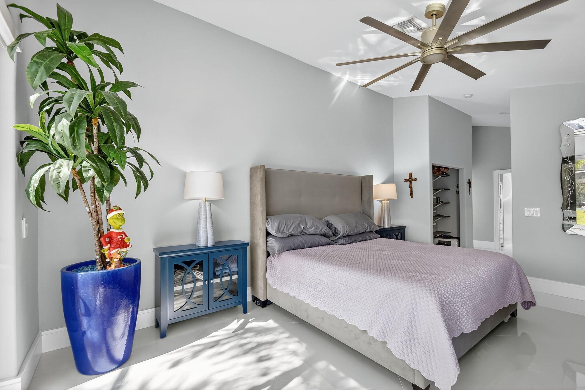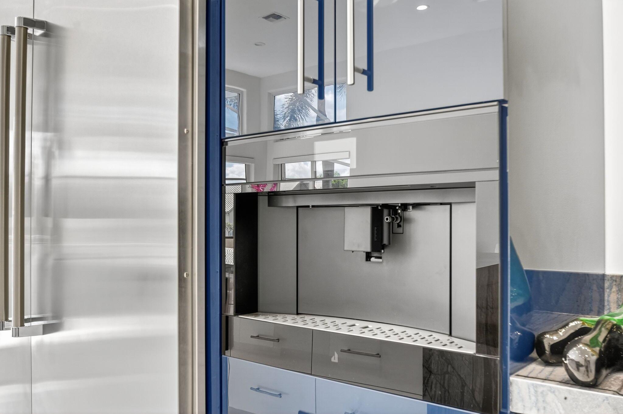 Lake-view renovation in Hampton Fairways at Indian Spring--where club membership is optional. Modern Kitchen, brand new appliances, 35-inch porcelain flooring laid through the entire home. Light, open-concept plan with LED lighting and motorized/electric shades on every window. The designer kitchen features custom cabinetry and striking blue quartz countertops, paired with a full Viking suite (refrigerator, range, double wall ovens with convection) plus a built-in Jenn Air coffee/espresso/cappuccino station. Split layout offers 3 bedrooms (one used as a den) and 2 baths; baths include upscale finishes, lighted mirrors and TOTO(r) toilets. Impact glass throughout the home. Enjoy serene water views from the private backyard--truly move-in ready.