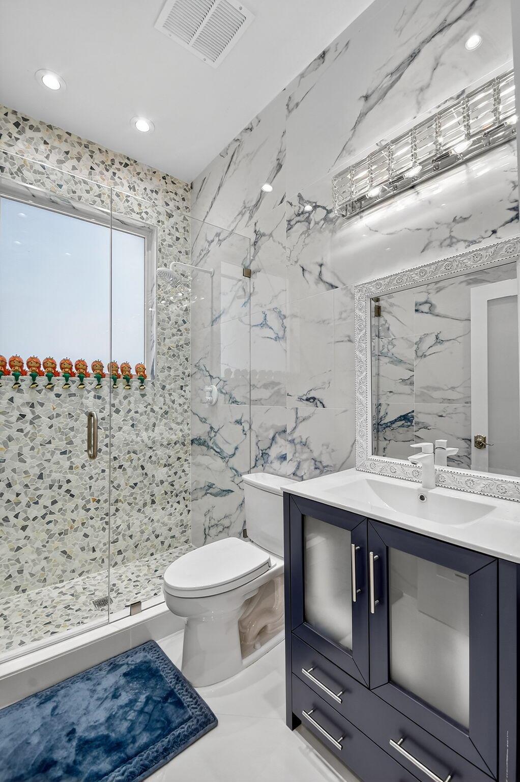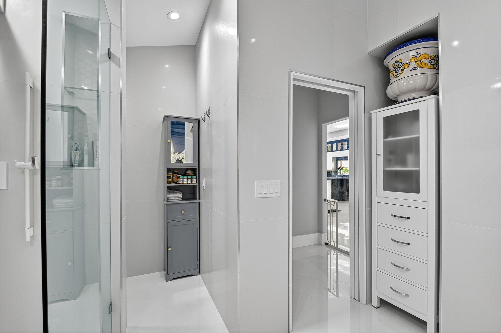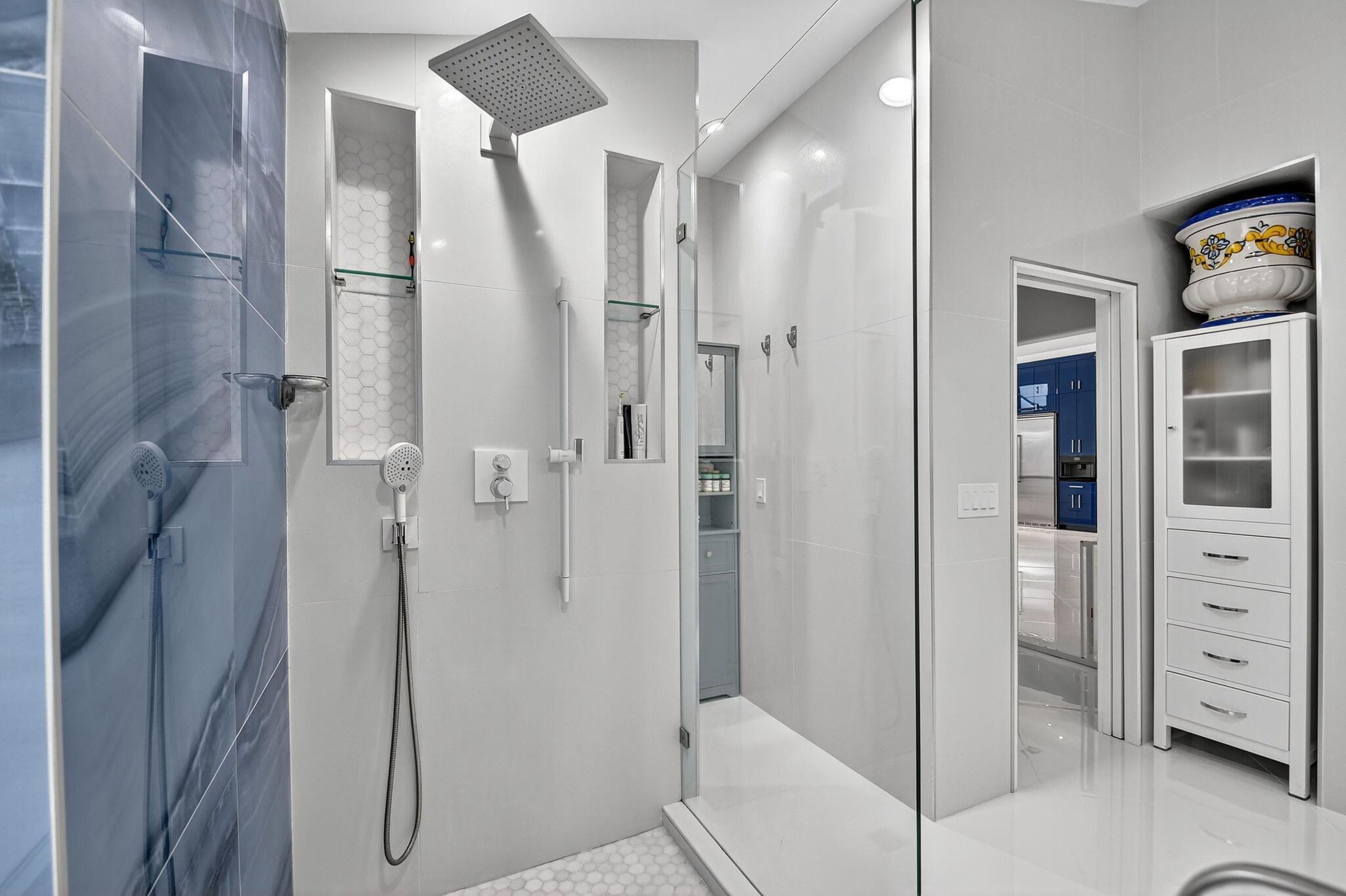 Lake-view renovation in Hampton Fairways at Indian Spring--where club membership is optional. Modern Kitchen, brand new appliances, 35-inch porcelain flooring laid through the entire home. Light, open-concept plan with LED lighting and motorized/electric shades on every window. The designer kitchen features custom cabinetry and striking blue quartz countertops, paired with a full Viking suite (refrigerator, range, double wall ovens with convection) plus a built-in Jenn Air coffee/espresso/cappuccino station. Split layout offers 3 bedrooms (one used as a den) and 2 baths; baths include upscale finishes, lighted mirrors and TOTO(r) toilets. Impact glass throughout the home. Enjoy serene water views from the private backyard--truly move-in ready.