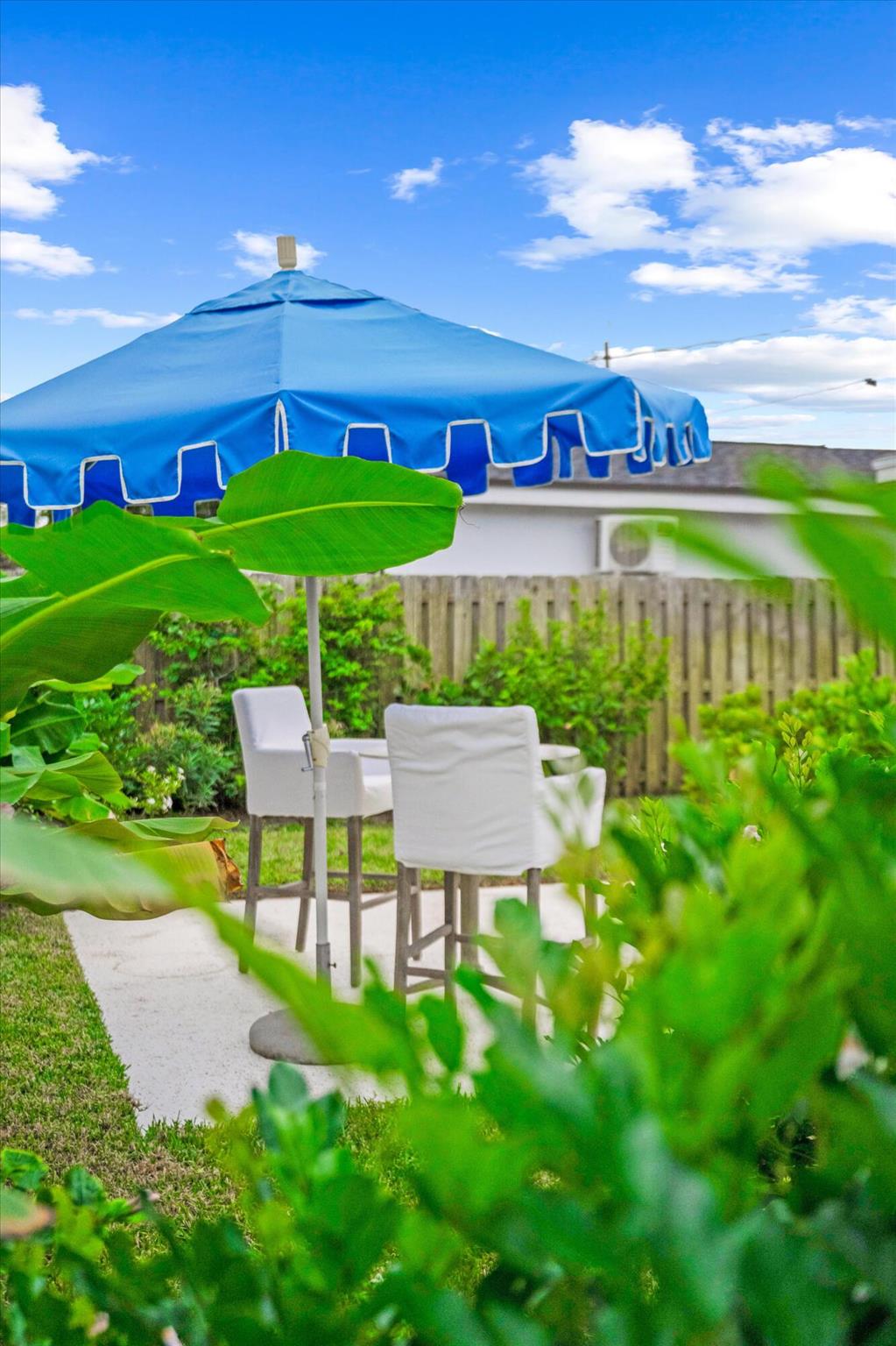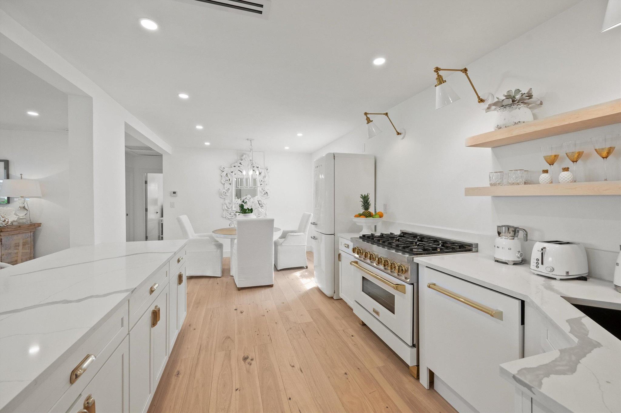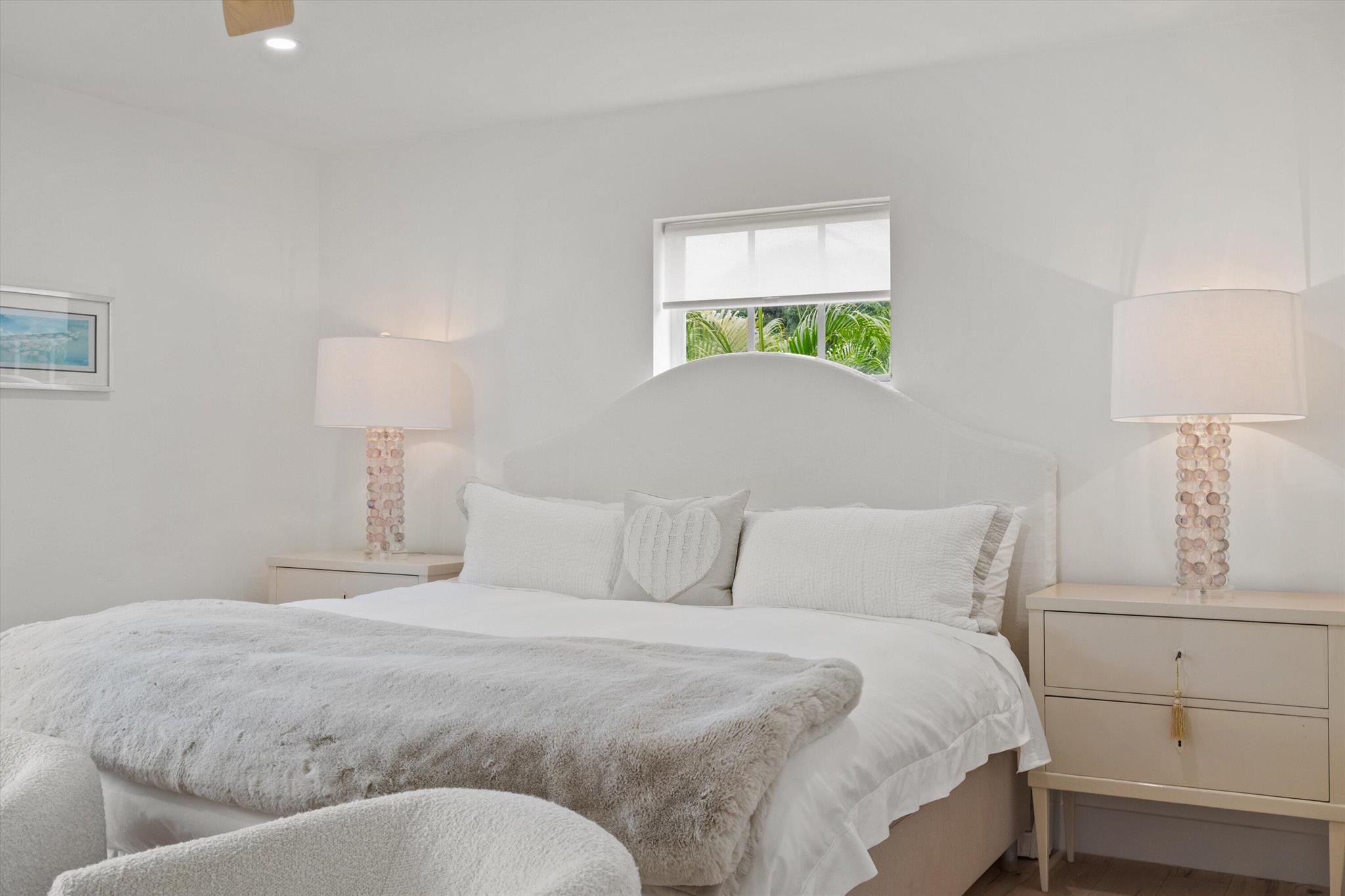 Experience the elegance of this stunning two-bedroom, two-and-a-half-bath Mid-Century residence, where modern luxury meets natural beauty inspired by a California designer. From the moment you arrive, you'll be captivated by the lush tropical landscaping and the covered porch, feeling a true sense of arrival that warmly welcomes you home. Step inside to discover a thoughtfully designed interior, featuring custom touches throughout. Enjoy top-of-the-line kitchen appliances, sleek modern lighting complemented by an advanced Allini Nano Technology whole-home water filtration system with mineral enhancement. A spacious, custom walk-in pantry keeps everything beautifully organized -- a culinary enthusiast's dream. The carefully crafted fully open living area offers a cozy, inviting