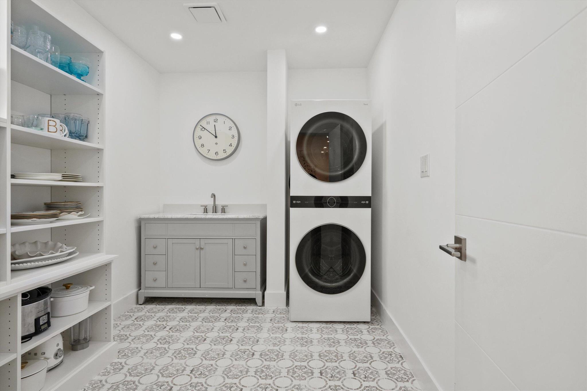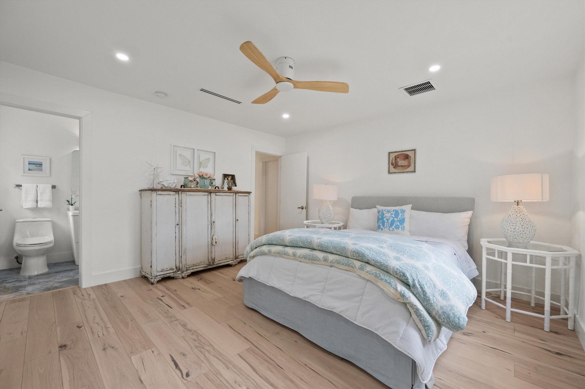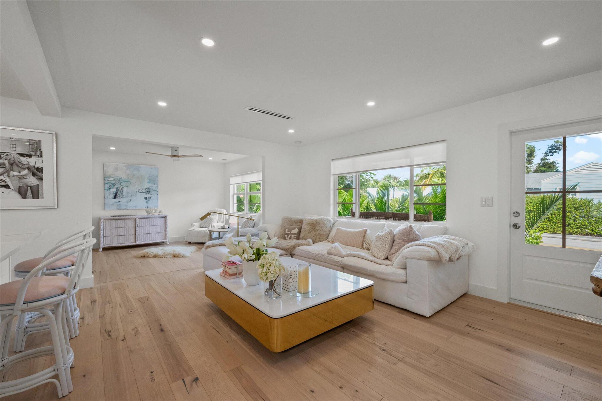 Experience the elegance of this stunning two-bedroom, two-and-a-half-bath Mid-Century residence, where modern luxury meets natural beauty inspired by a California designer. From the moment you arrive, you'll be captivated by the lush tropical landscaping and the covered porch, feeling a true sense of arrival that warmly welcomes you home. Step inside to discover a thoughtfully designed interior, featuring custom touches throughout. Enjoy top-of-the-line kitchen appliances, sleek modern lighting complemented by an advanced Allini Nano Technology whole-home water filtration system with mineral enhancement. A spacious, custom walk-in pantry keeps everything beautifully organized -- a culinary enthusiast's dream. The carefully crafted fully open living area offers a cozy, inviting
