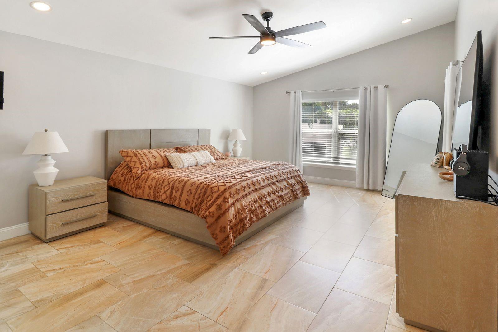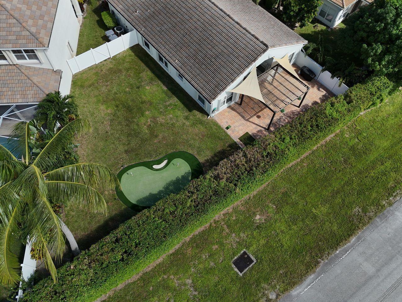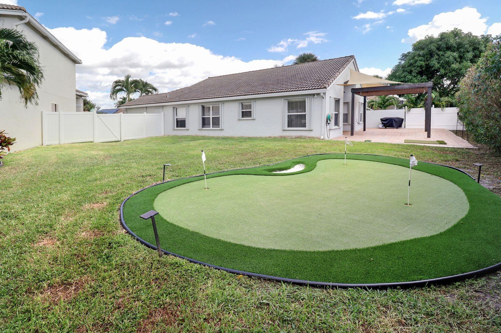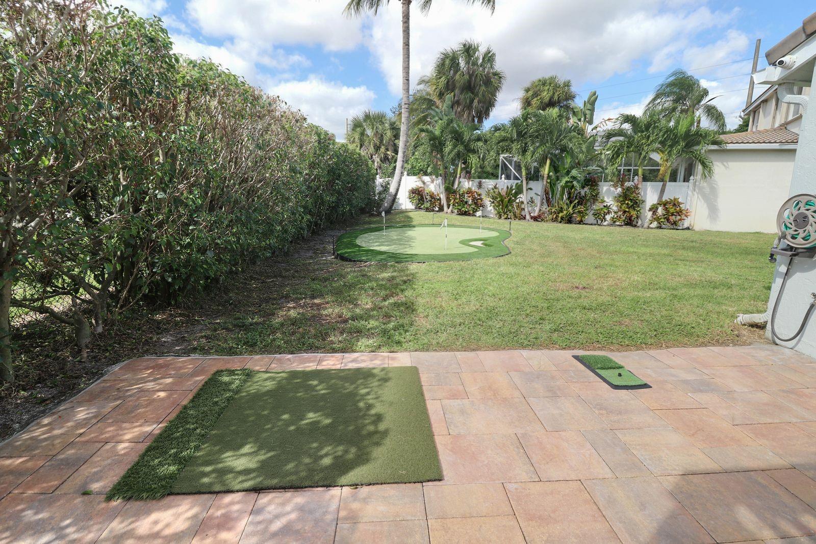 Must-See Home on a Quiet Cul-de-Sac! This spacious home offers 3 bedrooms, 2 bathrooms, and a 2-car garage. Step into the modern kitchen featuring stainless steel appliances, a large island with granite countertops, perfect for cooking and entertaining. Ceramic tile flooring flows throughout the home. The master suite is a true retreat with high ceilings, a walk-in closet, luxurious bathroom featuring double sinks, quartz countertops, a freestanding soaking tub, and a separate shower, blending style and functionality. Enjoy your large fenced backyard with a pergola and a private putting green, ideal for gatherings and relaxation. Accordion shutters. Smart home access control and home alarm/camera system. A perfect combination of comfort, style, and luxury—this home won’t last long!
