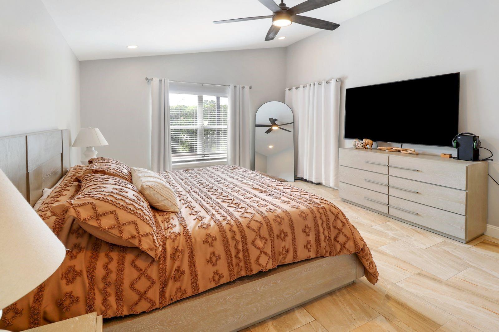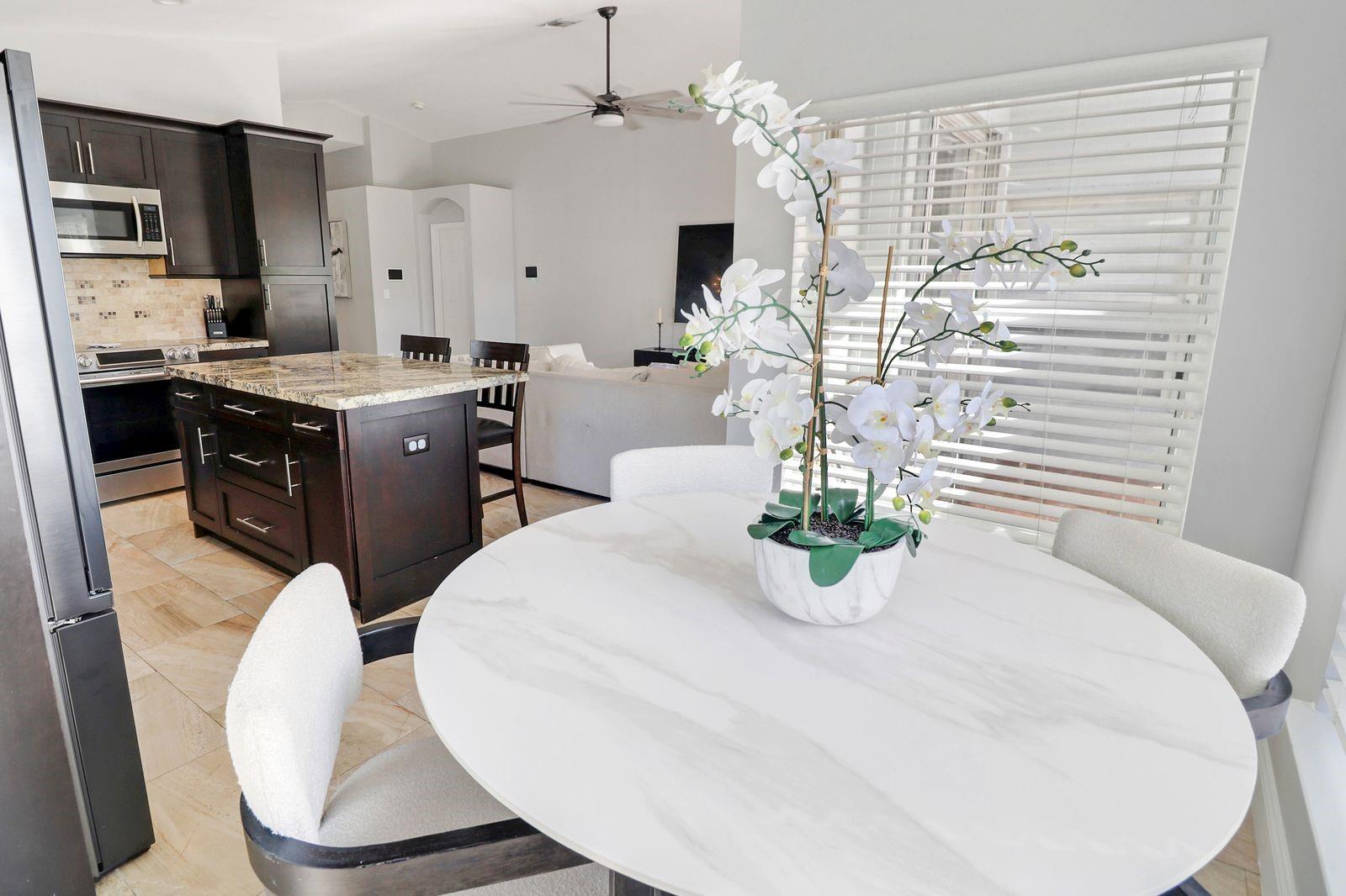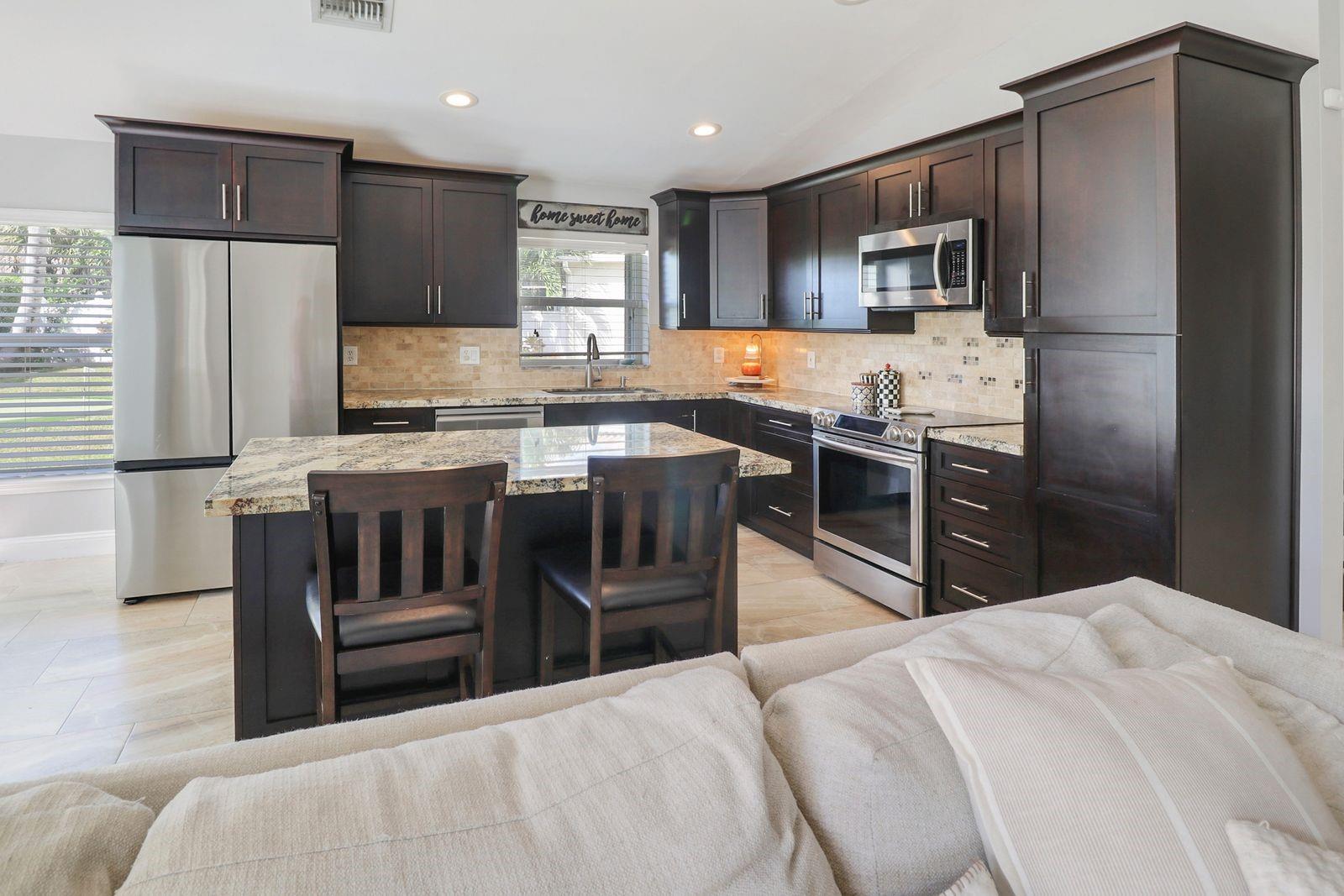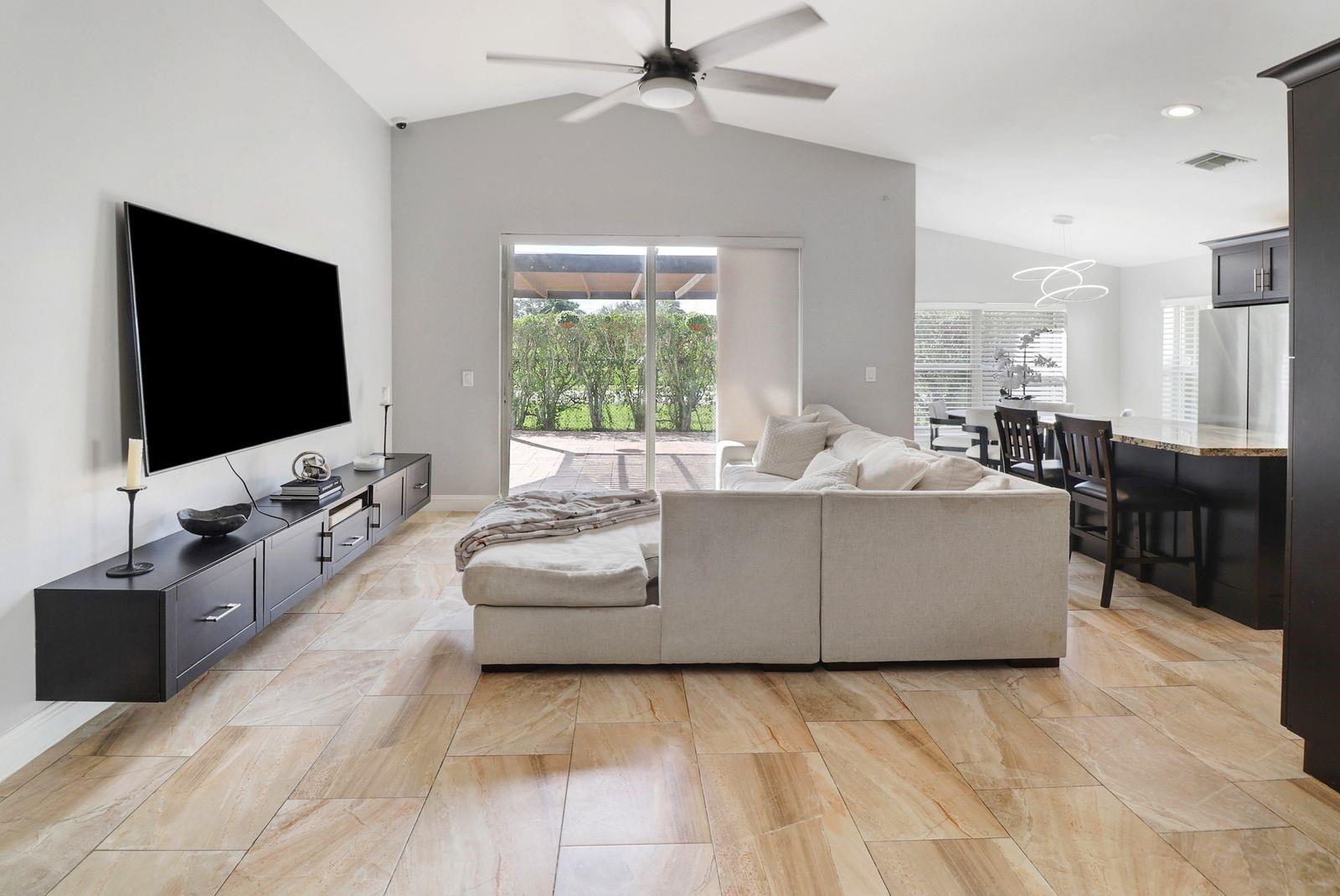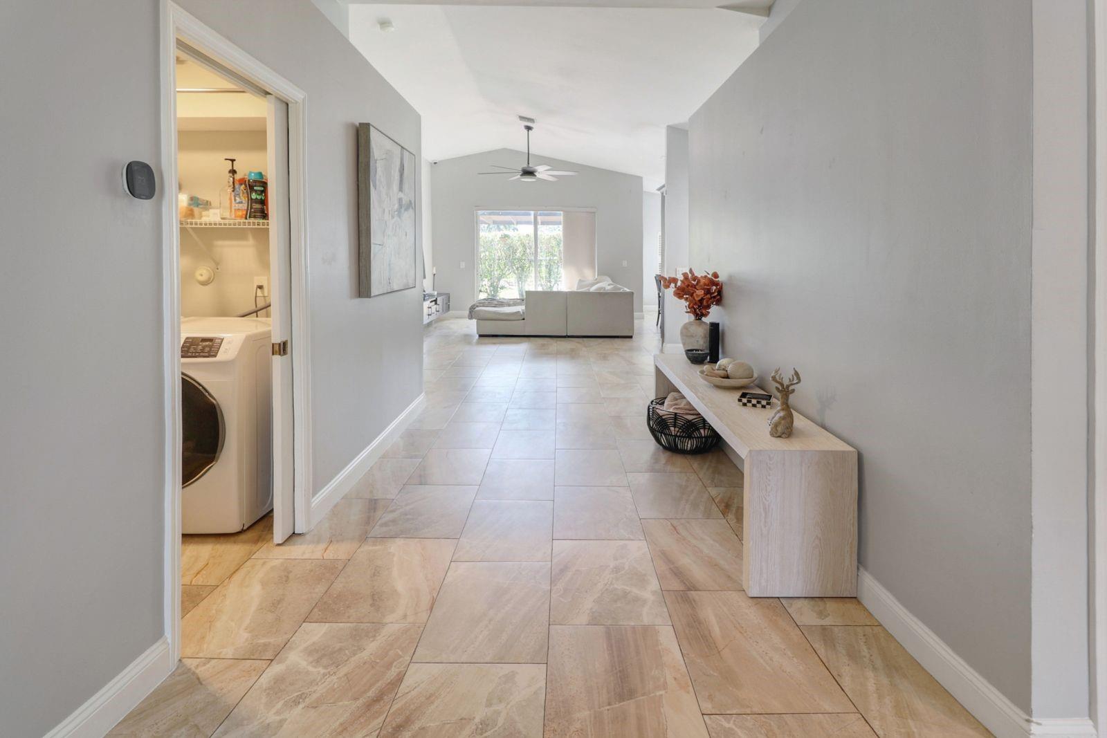 Must-See Home on a Quiet Cul-de-Sac! This spacious home offers 3 bedrooms, 2 bathrooms, and a 2-car garage. Step into the modern kitchen featuring stainless steel appliances, a large island with granite countertops, perfect for cooking and entertaining. Ceramic tile flooring flows throughout the home. The master suite is a true retreat with high ceilings, a walk-in closet, luxurious bathroom featuring double sinks, quartz countertops, a freestanding soaking tub, and a separate shower, blending style and functionality. Enjoy your large fenced backyard with a pergola and a private putting green, ideal for gatherings and relaxation. Accordion shutters. Smart home access control and home alarm/camera system. A perfect combination of comfort, style, and luxury—this home won’t last long!