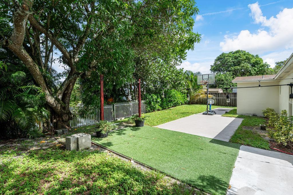 Well-maintained 3-bedroom, 2-bathroom home located in a desirable family-friendly neighborhood. Property features an additional efficiency/in-law suite with a private bedroom, full bathroom, and kitchenette — ideal for guests or rental income. One-car garage plus oversized driveway with ample space for trailers, boats, or RV parking. Enjoy a private backyard with mature mango trees and peaceful water views. Convenient location close to schools, parks, and shopping. Don't miss this versatile property with plenty of room for the whole family and all your toys.