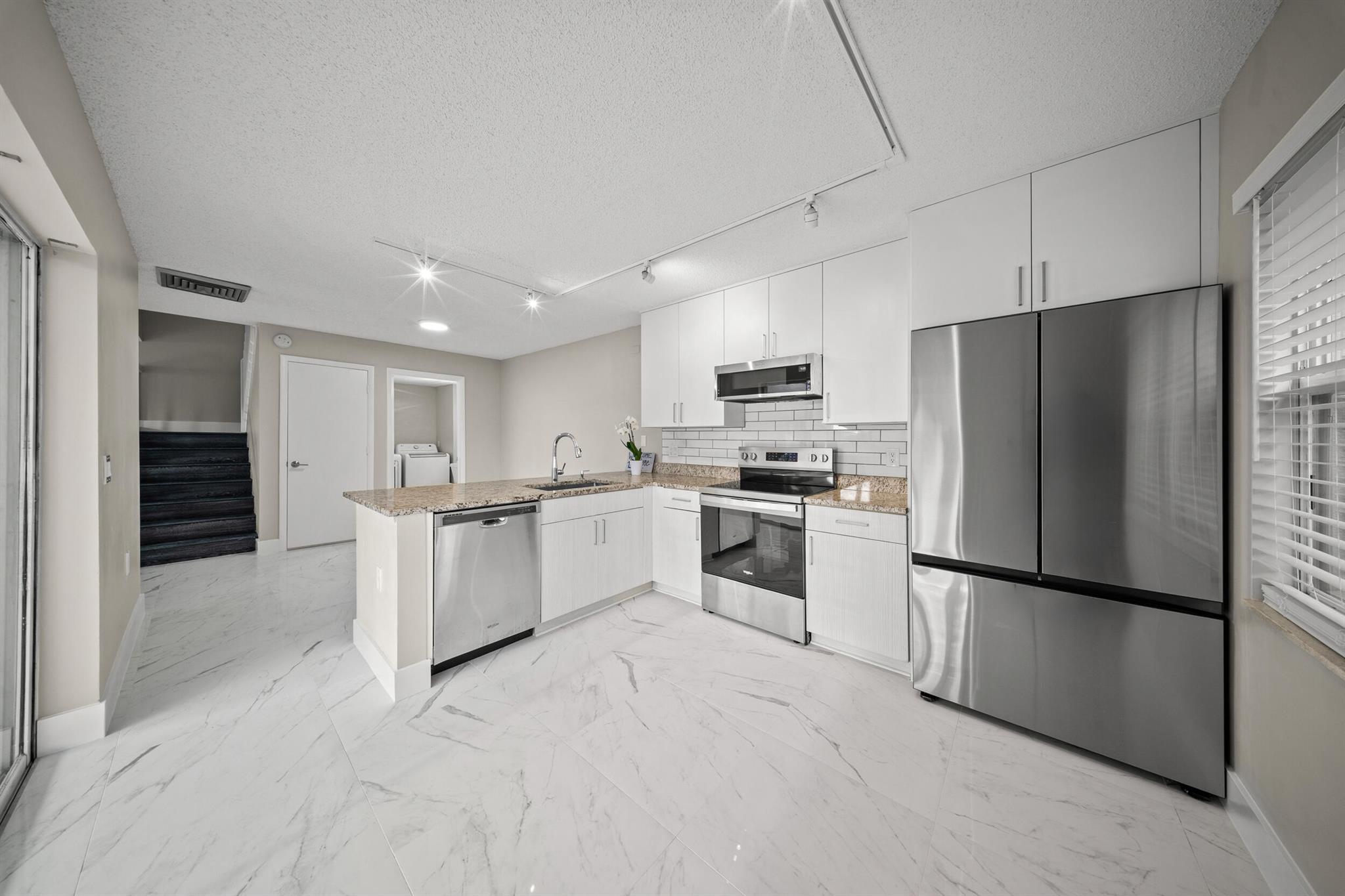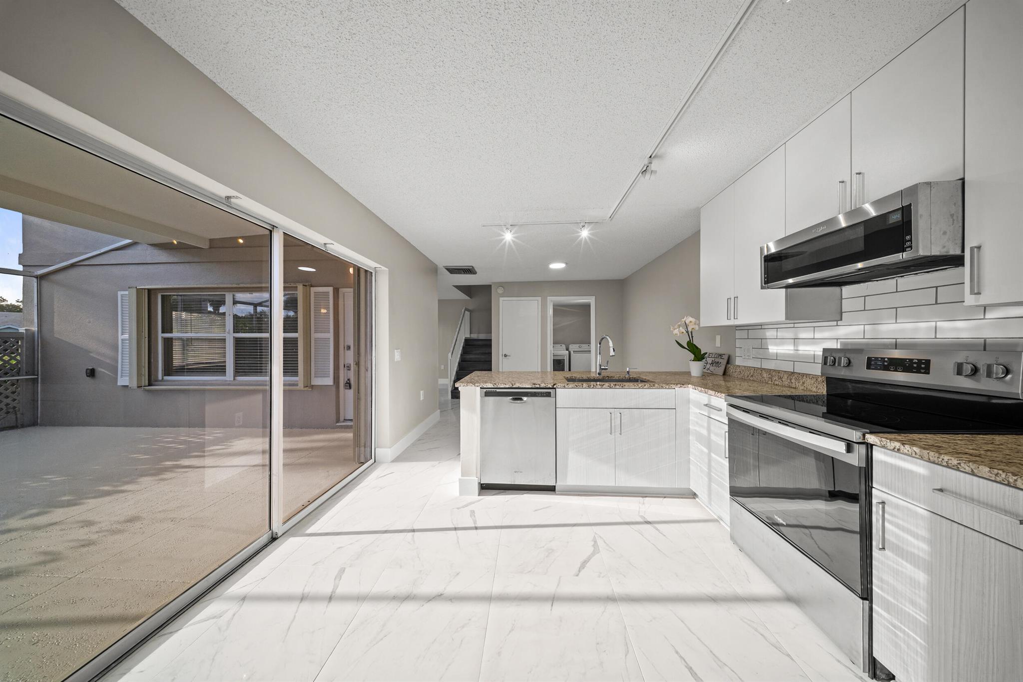 Welcome to this beautifully remodeled 2-bedroom, 21/2-bath townhome nestled in the gated, amenity-rich Sunset Trace community of Palm City. From top to bottom this home has been completely upgraded with luxury vinyl flooring upstairs, modern tile downstairs, fresh paint and new baseboards throughout. The kitchen is a standout with gleaming granite countertops, stainless-steel appliances, and sleek finishes. All bathrooms have been beautifully modernized to match the high-end feel of the home.Upstairs, both ensuite bedrooms are generously sized and filled with natural light, creating peaceful retreats for rest and relaxation. The primary suite offers comfort and privacy, while the second bedroom provides flexibility, ideal for guests, a home office, or a cozy personal space.