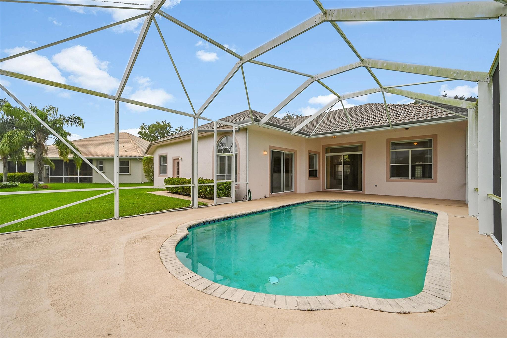 Fantastic opportunity in a desirable gated community! This spacious 4-bedroom, 3-bath pool home sits on a beautiful lakefront lot and offers tremendous potential. With a split floor plan, high ceilings, and abundant natural light, the layout provides an ideal canvas for your personal touch. The home requires some updates and repairs but offers solid construction, a functional design, and an unbeatable location within the community. Enjoy tranquil lake views from the screened pool area, perfect for relaxing or entertaining. Conveniently located near top-rated schools, shops, dining, and the major highways: Turnpike & Sawgrass Expressway. This property is ideal for both investors and end users looking to customize a home with lasting value. With vision and care, this home can truly shine!