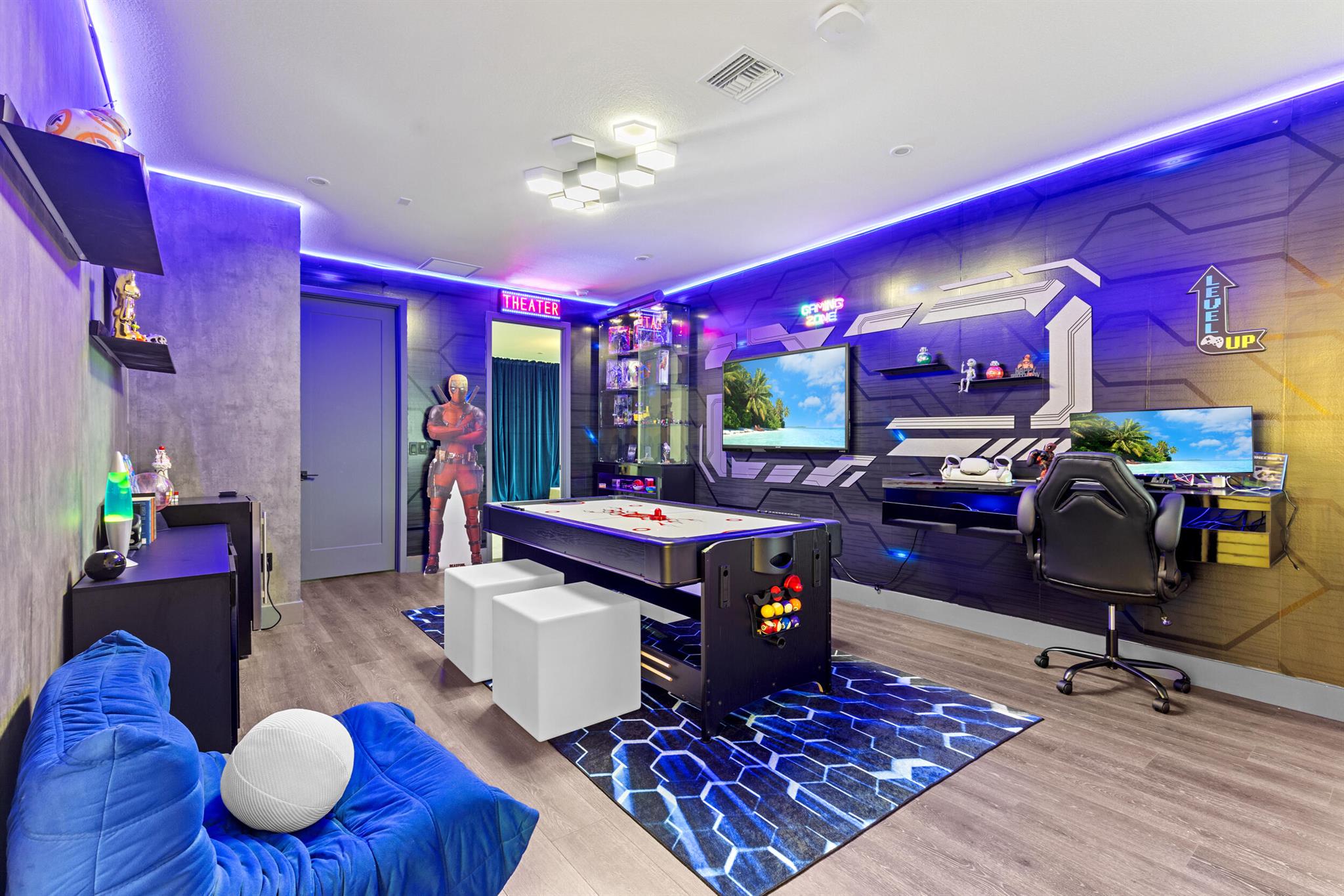 Come see this magnificent fully furnished upgraded home featuring 5 bedrooms, 6 full bathrooms, theater room , game room and a spacious two-car garage with built in storage cabinets . Designed for contemporary living, the open floor plan creates a seamless flow, complemented by generous walk-in closets and a beautifully crafted gourmet kitchen. A grand view of the lake and a fenced backyard offer the perfect space for outdoor entertainment. Additional upgrades include motorized Stylish custom window treatments and sophisticated light fixtures , sonos sound system and outdoor mosquito misting spray. New adjacent shopping center Publix anchored opening in January 2025- Amenities galore at the main clubhouse. Rented through September 30th 2026
