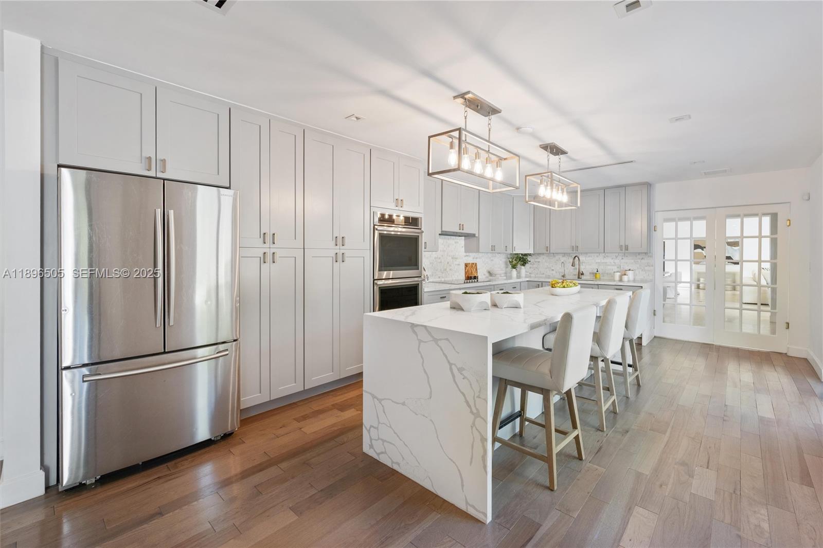 This reimagined tropical estate in the hidden gem of Glenvar Heights blends modern design with resort-style living. Set on a lush acre in a quiet, family-friendly enclave, the home was 60% newly built in 2022 and features sun-filled living spaces, a chef’s kitchen with custom cabinetry & a large island. Serene primary suite with dual closets, a spa bathroom, & a private terrace. Flexible spaces include a extra room ideal for a gym, playroom, pet spa, or studio, plus several additional rooms for storage or work areas. Outside, enjoy a sparkling pool, covered patio, & full summer kitchen surrounded by tropical landscaping. A Rare Find in the South Miami area, just minutes to Coconut Grove, Pinecrest, Coral Gables, Dadeland, & the airport. Steps to Sunkist park.