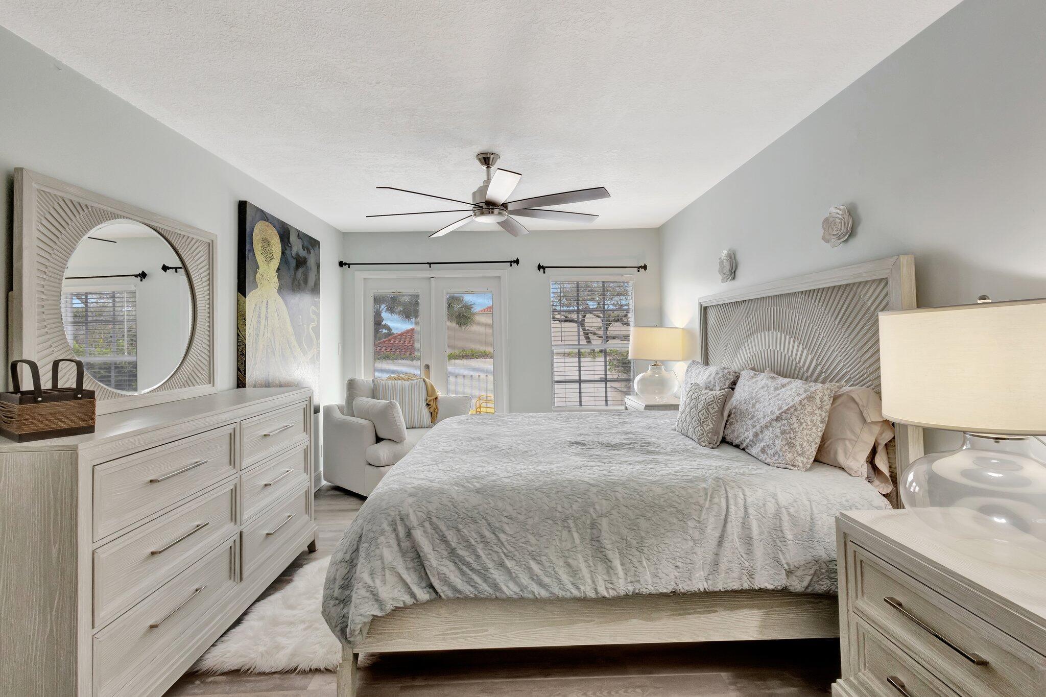 Largest floor plan in Ocean Dunes! NEW ROOF IN 2021! Beautifully updated 3 bedroom 2.5 bath townhouse! New water heater October 2025, newly renovated Master bathroom, new luxury vinyl flooring throughout, new washer and dryer April of 2024, new kitchen, new patio gates July 2024, new pavers front and back, new security door system, quartz countertops, , covered and open patios, balcony off upstairs bedroom. Laundry inside AC space. Large living area and dining area. Primary bedroom on ground floor, guest bedrooms upstairs. This unit is tastefully decorated and has a great layout. 2 assigned parking spots, short walk to beach and community pool, pickleball courts, and more. Great rental revenue as seasonal rental. Currently tenant occupied but easy to show!