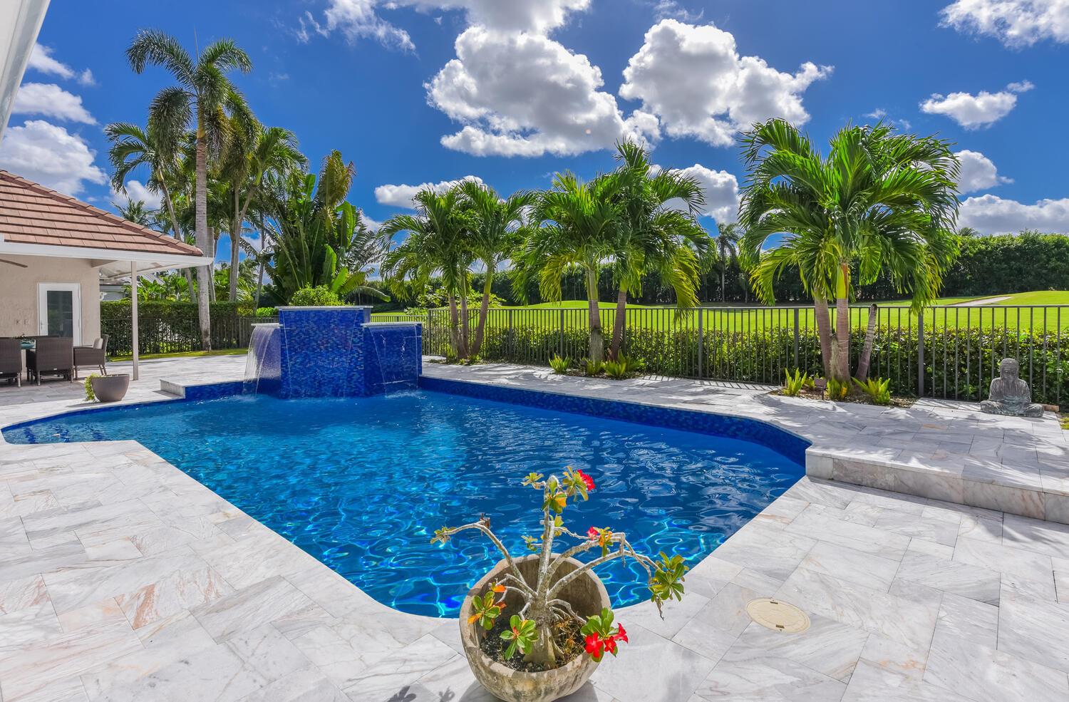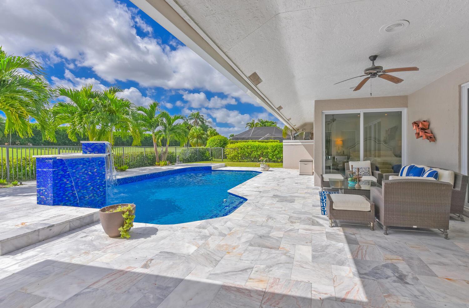 This elegantly remodeled contemporary pool home is located in the highly esteemed, private equity membership country club of Boca Grove. Situated on the 2nd hole, enjoy peaceful golf vistas from the comfort of your living room or your newly refinished pool and deck. With impact windows, newer roof, stone look porcelain tile, and recently remodeled primary bath this home has it all. Boca Grove offers top security, championship golf courses, active tennis program, pickle ball, basketball, state of the art fitness center, w/ scheduled classes and private trainers, snack bar, resort style pools, casual & fine dining w/ world class, award winning chef. Centrally located - easily enjoy shopping, dining, beaches, and more!