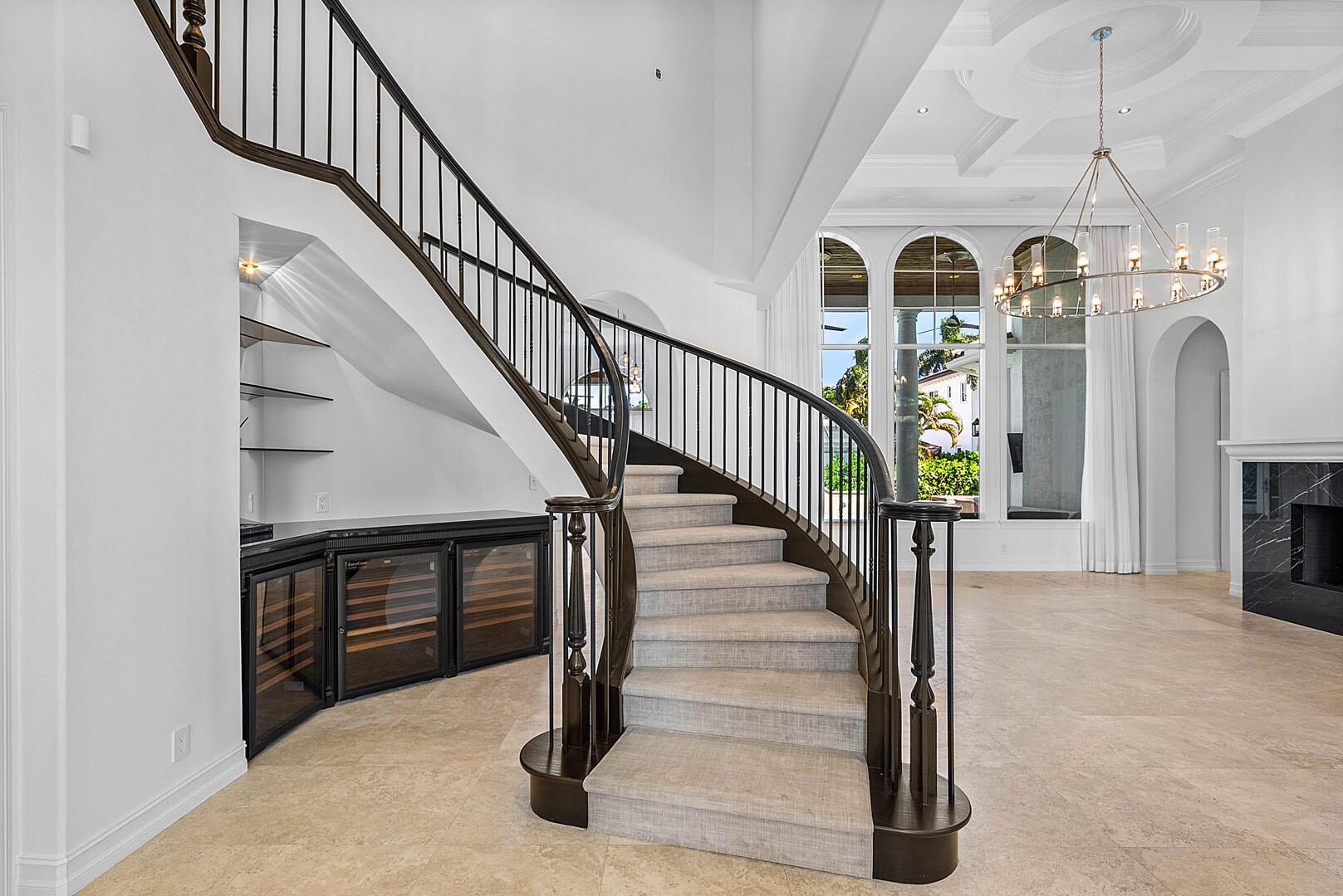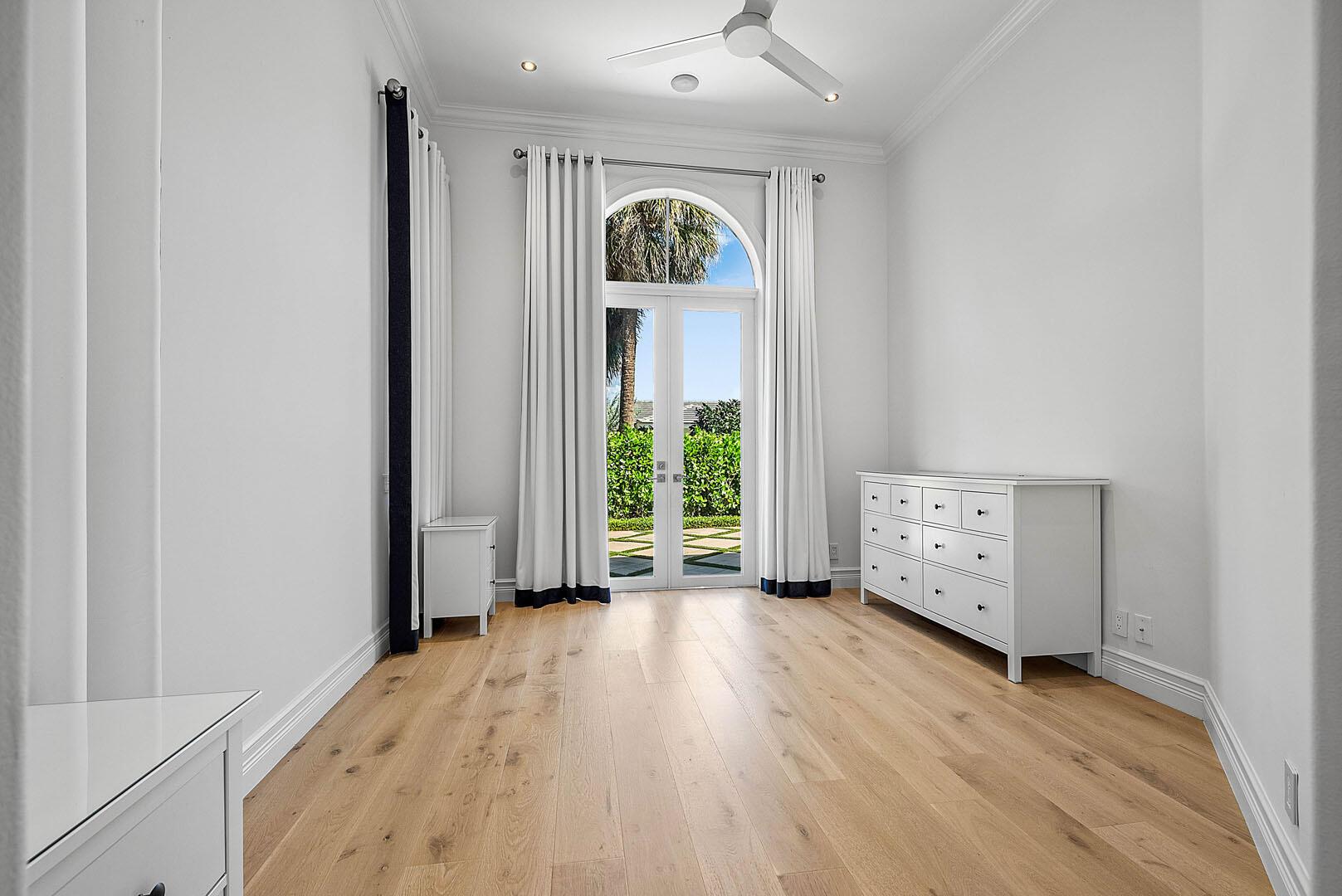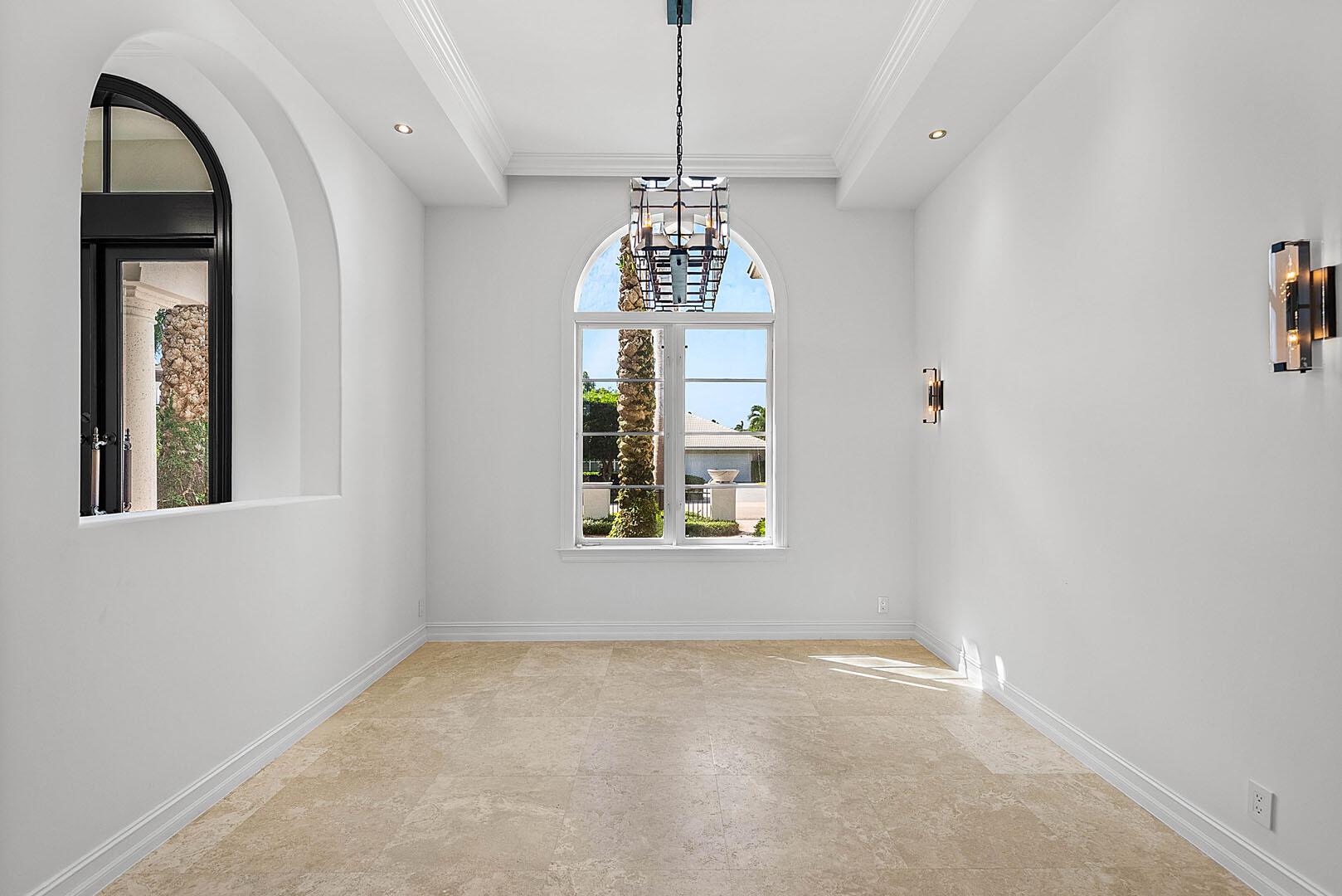 Welcome to 2124 West Maya Palm Drive, a beautifully renovated transitional estate in Boca Raton's Royal Palm Yacht & Country Club. Designed with elegance and comfort, this home offers a light-filled layout and refined finishes. The formal living room features a marble fireplace and serene backyard views. The first-floor primary suite is a luxurious retreat with new hardwood floors, dual custom closets, a spa-like bath with marble vanities, separate water closets, a soaking tub, and motorized shades. The main level also has a private office with built-ins, an elegant powder room, and a guest suite with new flooring and an updated bath. The gourmet kitchen has been reimagined with ample storage, sleek countertops, and dual dishwashers, opening a spacious family room perfect for
