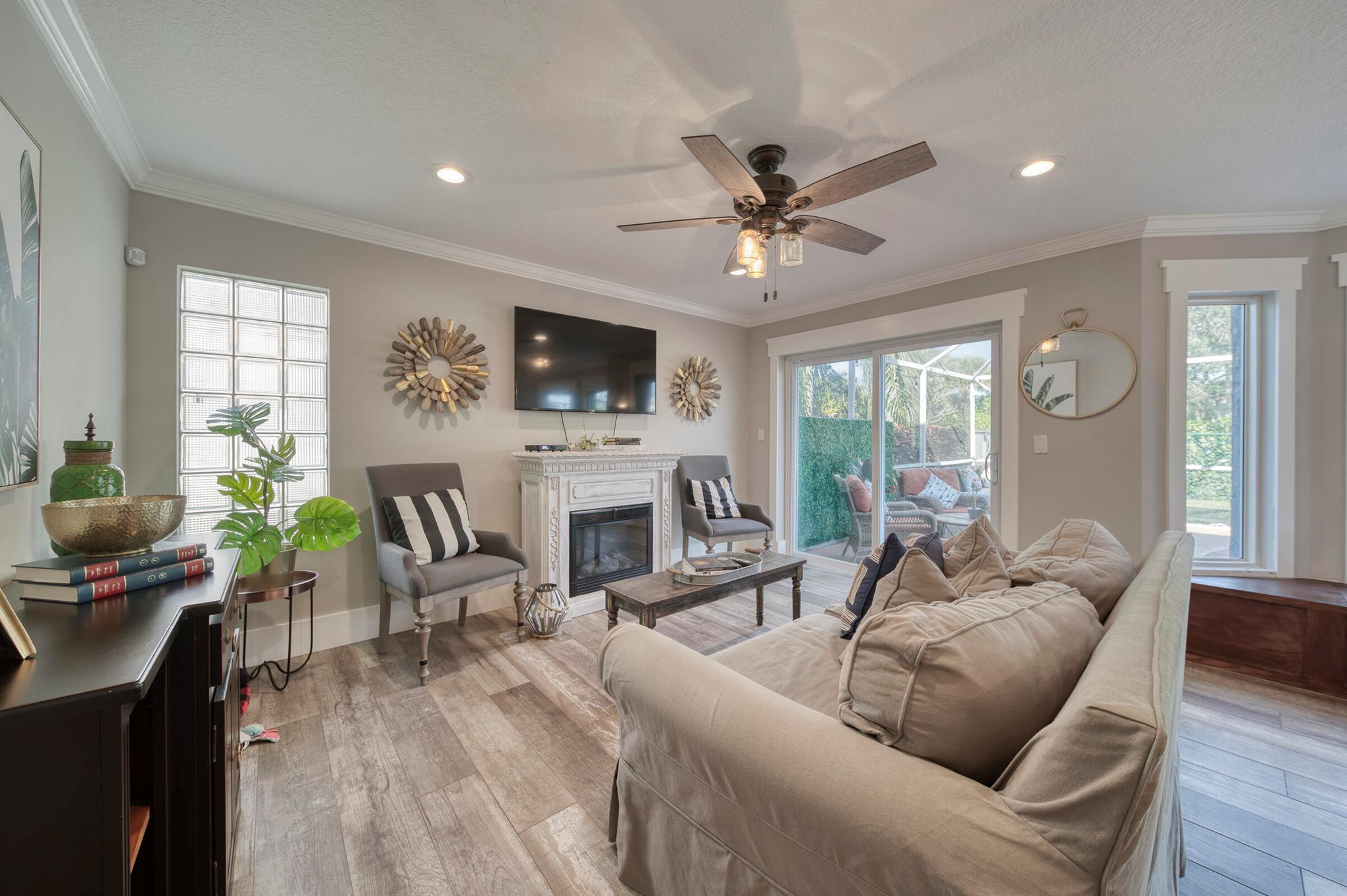 Stately and elegant 5-bedroom, 2.5-bath pool home. Located on a quiet tree-lined street in Sonata at Mission Bay. The finest touches combine to make this home warm, welcoming and functional. Porcelain plank tiles throughout the downstairs. Lavishly renovated kitchen is the centerpiece of the home. You and yours will gather around the oversized quartz island to dine, visit, & form lasting memories. Family room just off the kitchen but separated from the living room on the far side of the home. Provides room to spread out for all. Luxury vinyl plank floors upstairs. No carpet! Renovated guest bath with subway tile shower. Full impact glass throughout, and a barrel tile roof. Spacious bedrooms. 3-car garage. Large driveway. No rear neighbors. Resort-style amenities at Mission Bay!'